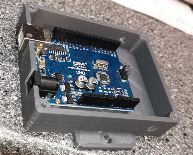Hay mucho espacio dentro de la caja para cables y otros objetos pequeños. Utilice tornillos autorroscantes pequeños para el arduino y la tapa.