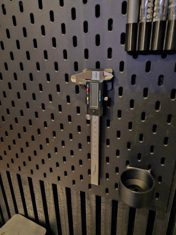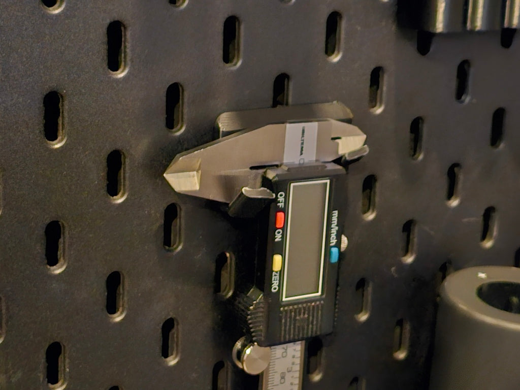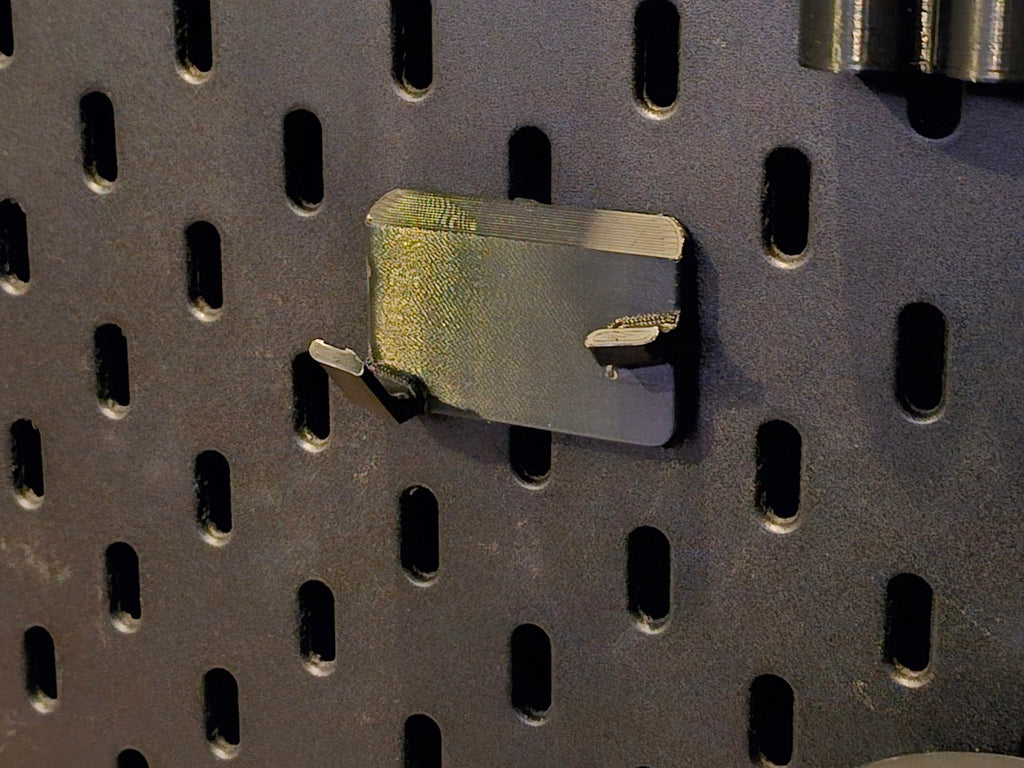 Este es un soporte de calibre para una placa de montaje SKÅDIS de IKEA. Su cuerpo superior es ligeramente más pequeño y tiene bordes redondeados más bonitos en comparación con el modelo original. La construcción del gancho también se ha modificado ligeramente para una mejor usabilidad.