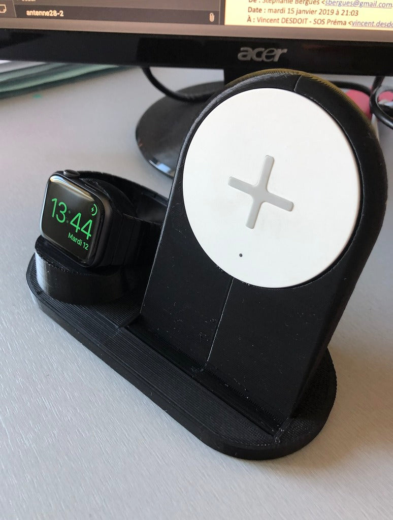Estación de carga redonda para iPhone (8 Plus, X, XR, XS Max) y Apple Watch - Compatible con Ikea Rallen