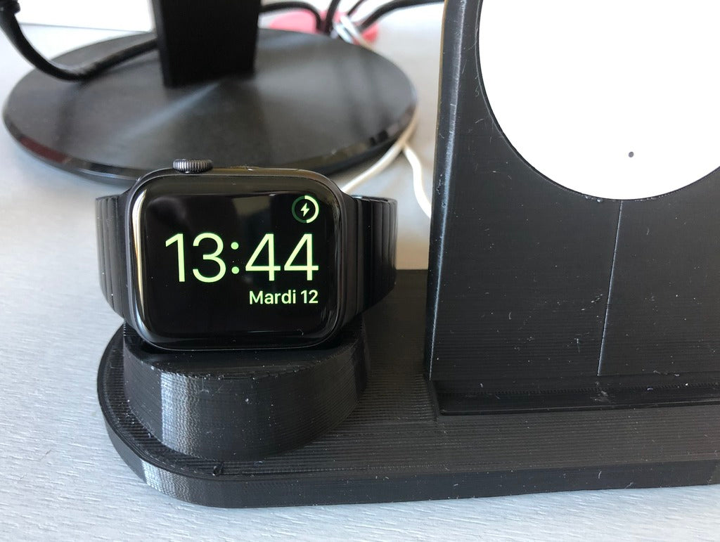 Esta estación de carga redonda está diseñada para brindar una solución de carga organizada y práctica para sus dispositivos Apple. Ofrece un espacio dedicado tanto para su Apple Watch como para una variedad de modelos de iPhone, incluidos el iPhone 8 Plus, iPhone X, iPhone XR y iPhone XS Max.