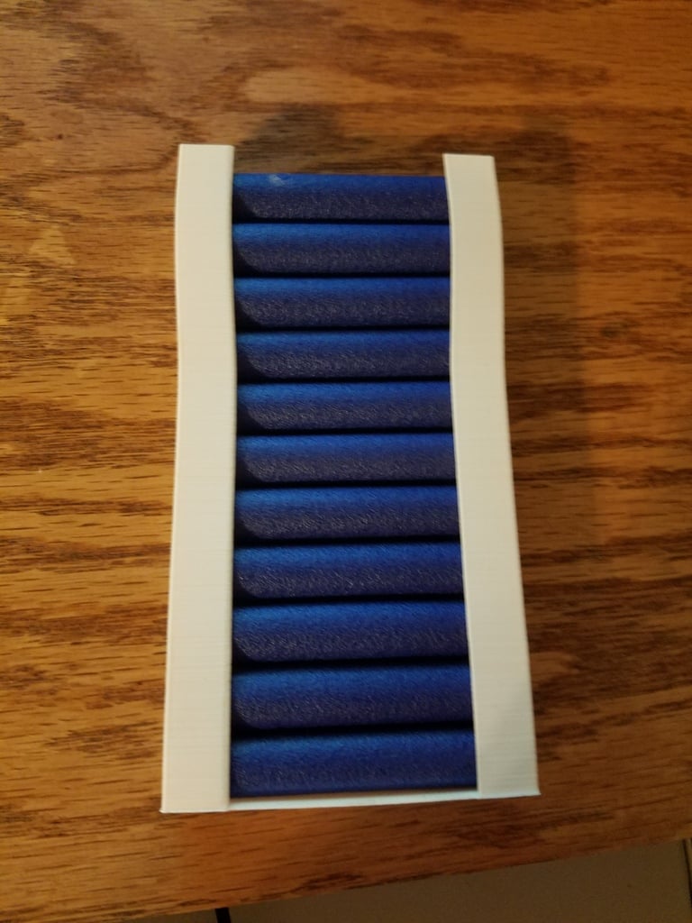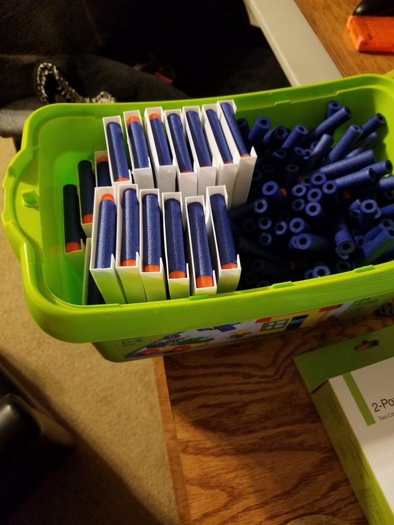 Optimiza la velocidad y la diversión en tus batallas Nerf con el cargador rápido de dardos Nerf para cargadores estándar. Este cargador rápido te permite rellenar los cargadores Nerf estándar con hasta 6, 10 o 12 discos a la vez. El cargador es compatible con sistemas de clip más grandes que utilizan discos de ataque Nerf o similares, y se puede adaptar a diferentes tamaños de clip utilizando el archivo CAD adjunto. Monta el cargador rápido de dardos Nerf para cargadores estándar y haz que tu próxima batalla en el campo de batalla sea intensa y entretenida.