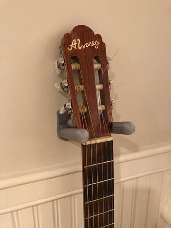 Este colgador está diseñado para una guitarra clásica con un mástil de 57 mm en la cejuela. Las modificaciones son fáciles ya que es una lima estándar.