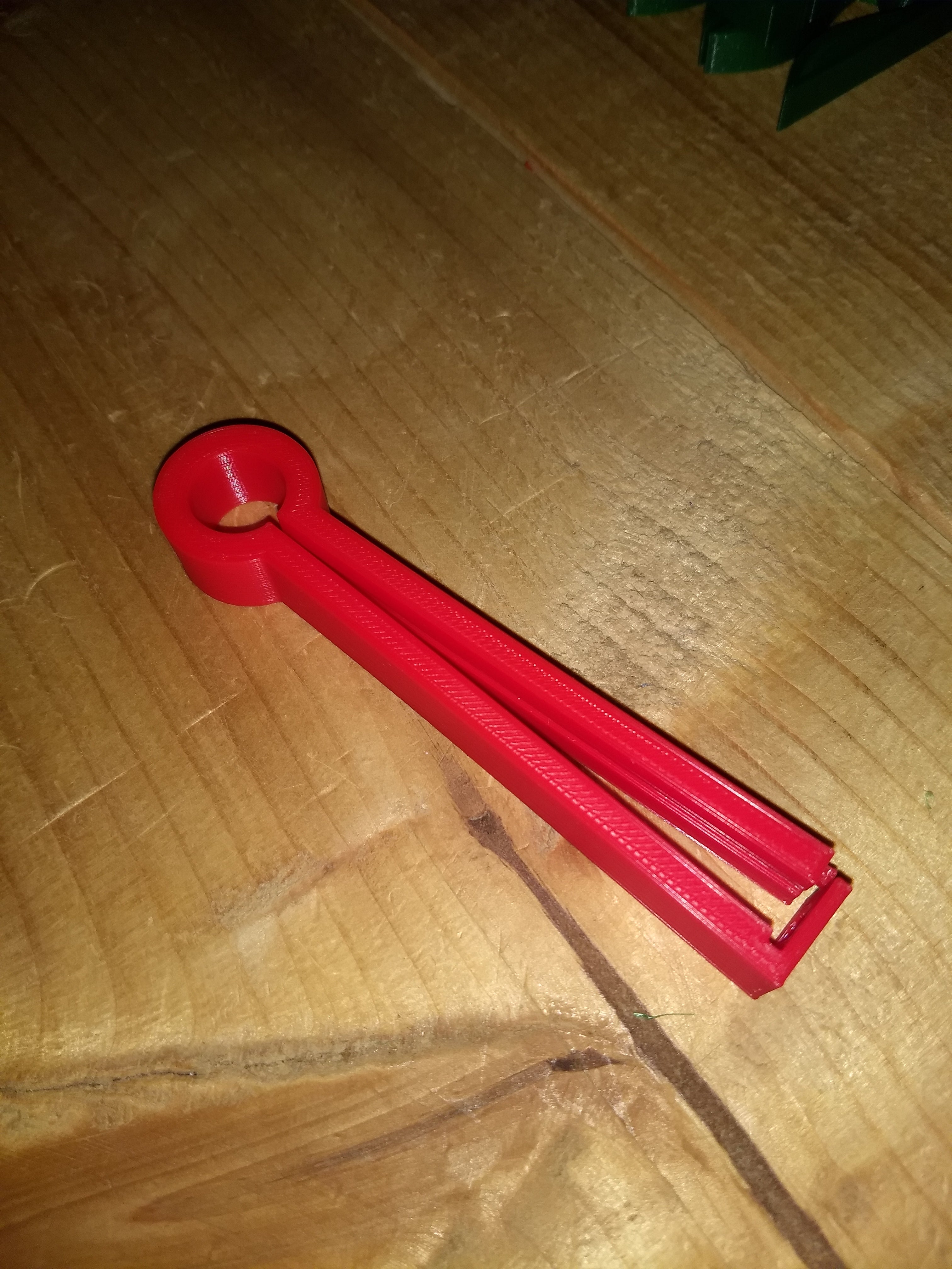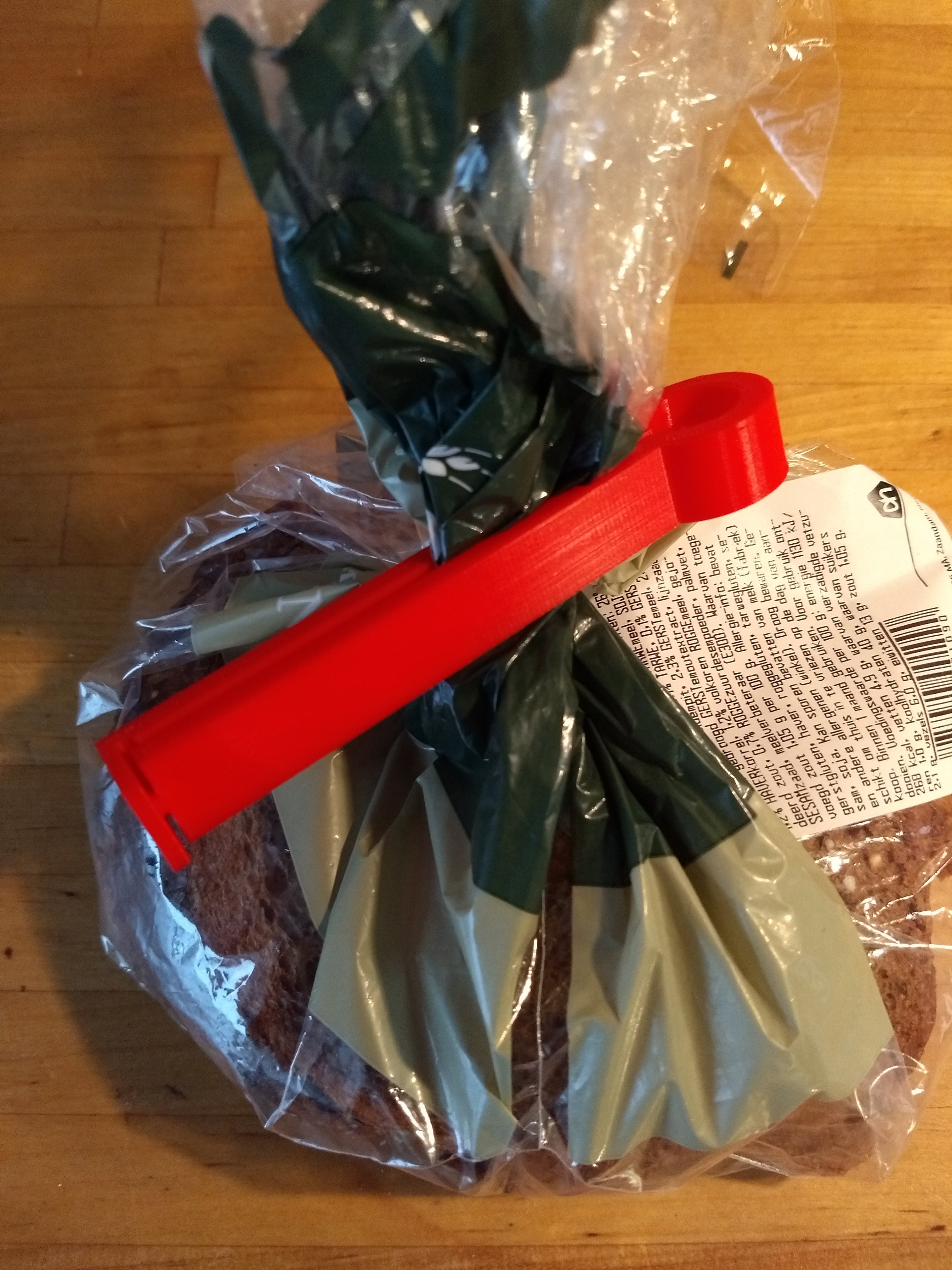 Simple pinza para bolsas diseñada para ser fácilmente imprimible en cualquier impresora. La función de resorte de la pinza se puede ajustar cambiando el grosor del arco en un extremo de la pinza. Esta abrazadera de bolsa está hecha con Polymax PLA, que es resistente pero sigue teniendo las ventajas de impresión del PLA normal, como la impresión a baja temperatura (190-200 grados Celsius) y la buena adhesión a la placa de impresión.