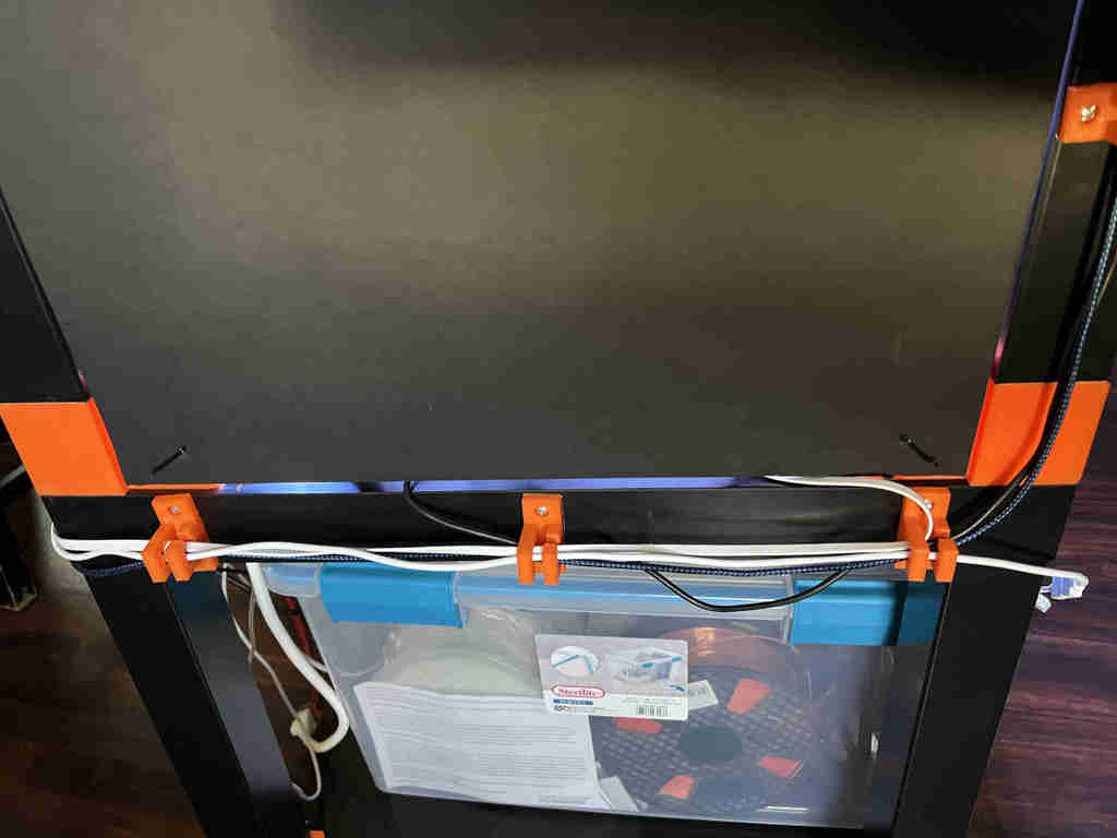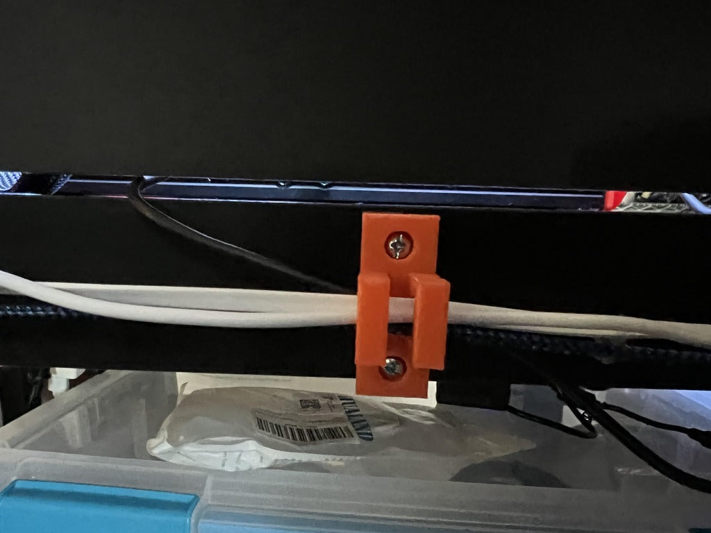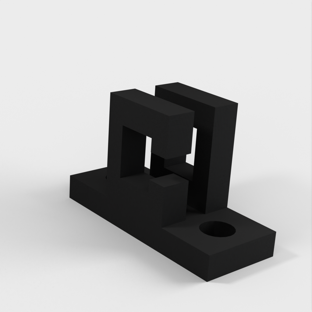 Este es un clip para organización de cables, de tamaño adecuado para encajar en el lateral de una encimera o pata LACK de IKEA. Ayuda a mantener los cables organizados y reduce el desorden en el espacio de trabajo.