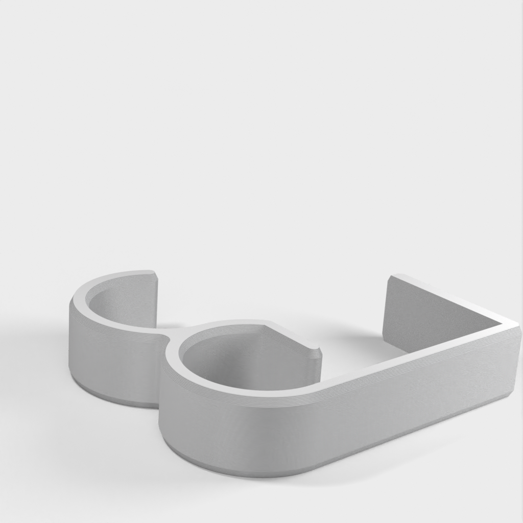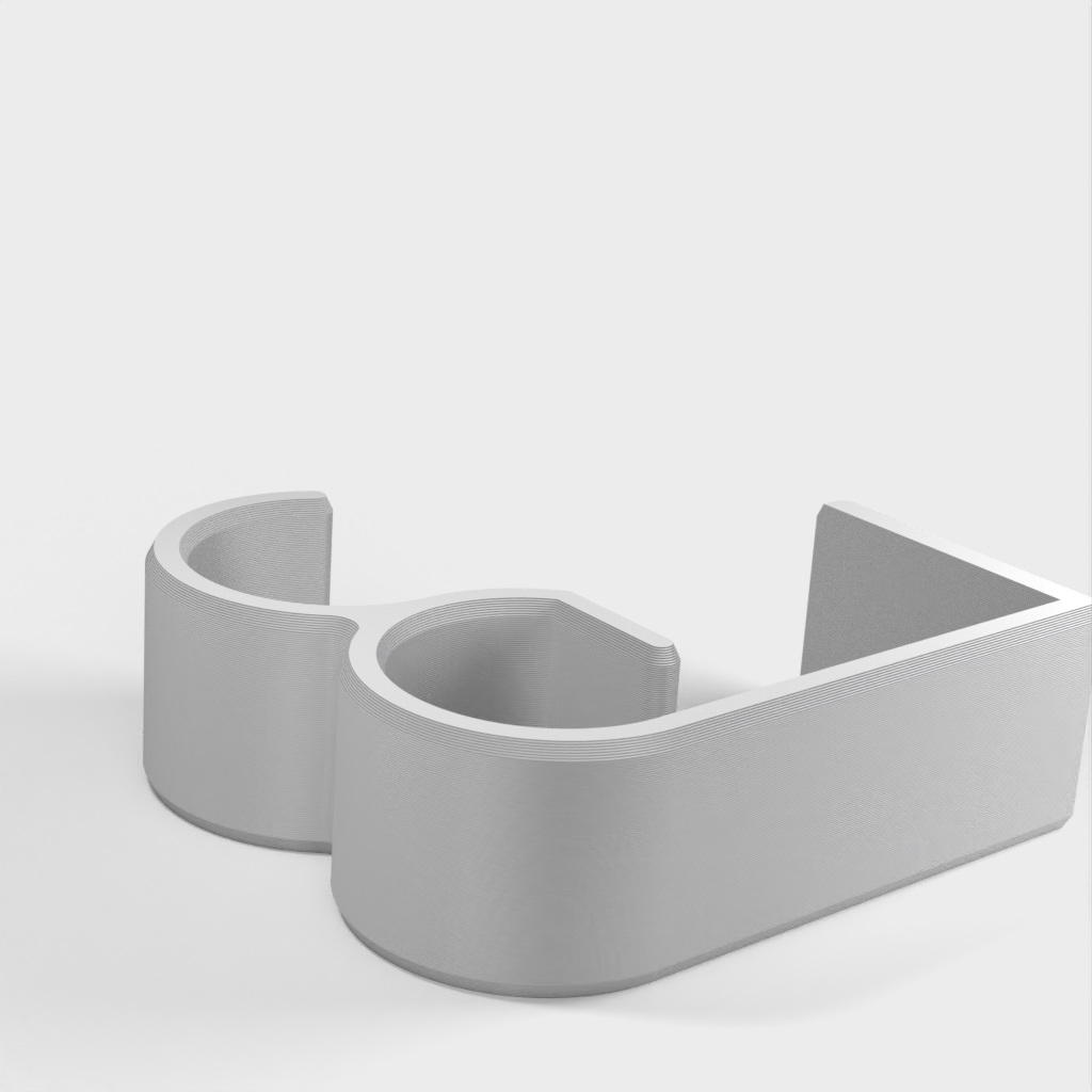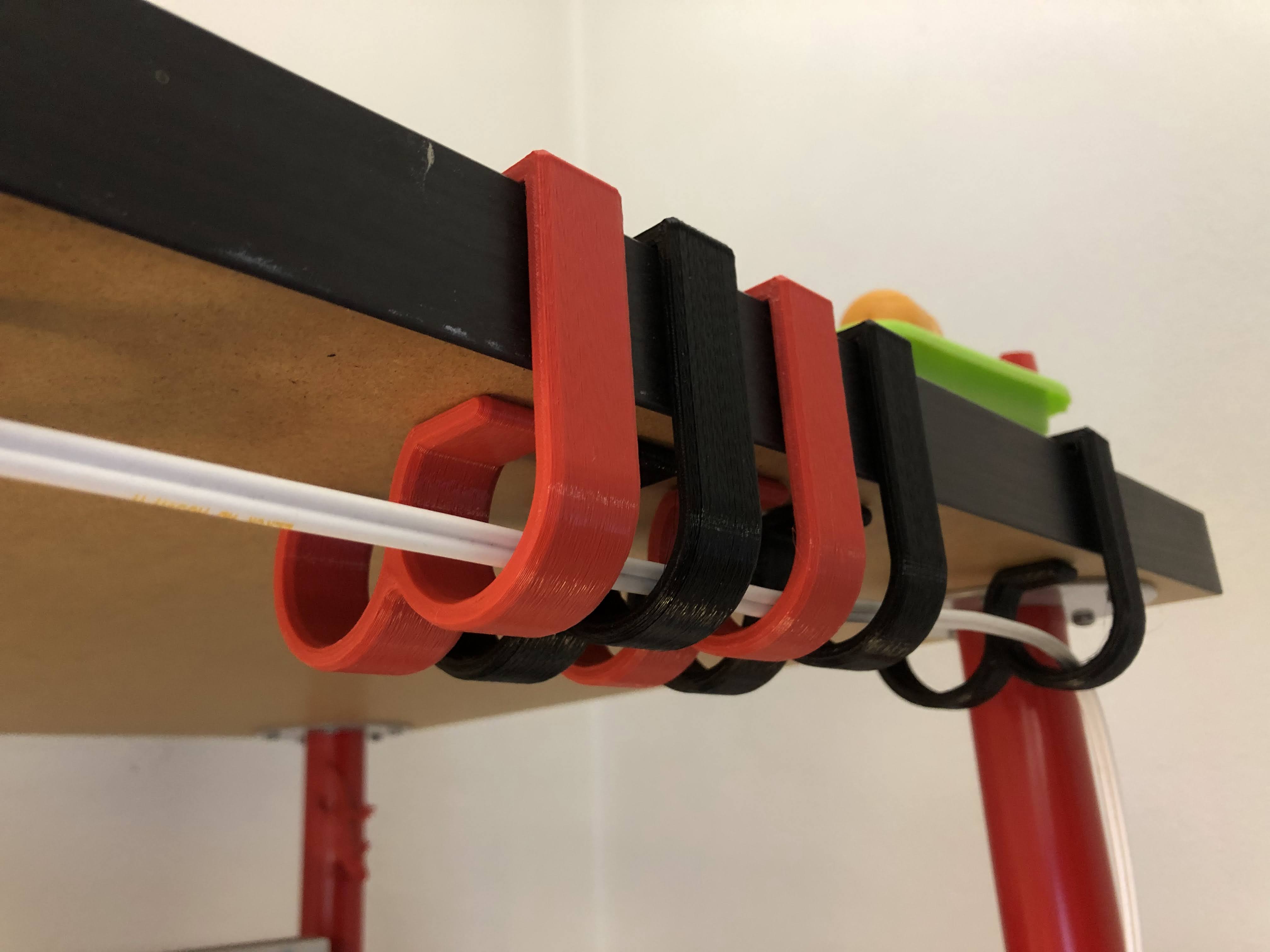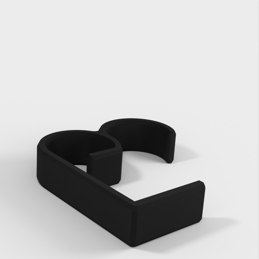 Un conjunto de modelos para ayudarle con su gestión de cables. Estos clips están diseñados para pegarse a escritorios o mesas. Los clips se fabricaron originalmente para las encimeras Linnmon de Ikea, pero son totalmente compatibles con las encimeras Lagkapten y Målvakt, así como con otras encimeras o escritorios que tengan un grosor de 50 mm (~2'). Un modelo tiene un anillo cerrado cuando está montado, mientras que el otro modelo tiene un anillo adicional parcialmente abierto que facilita añadir o quitar cables sobre la marcha. Ambos modelos están disponibles con una anchura de 20 mm y 30 mm, pero se pueden fabricar fácilmente otras anchuras cambiando el tamaño en su programa de corte.