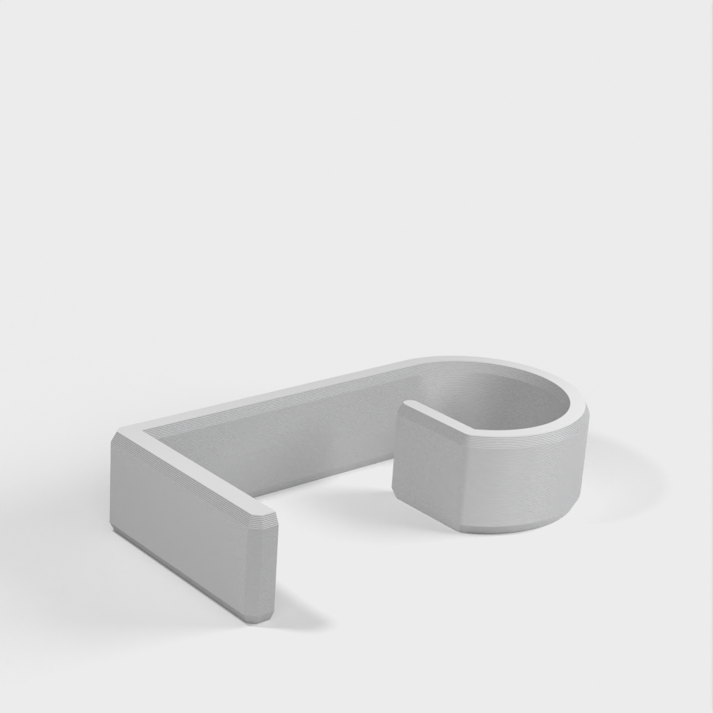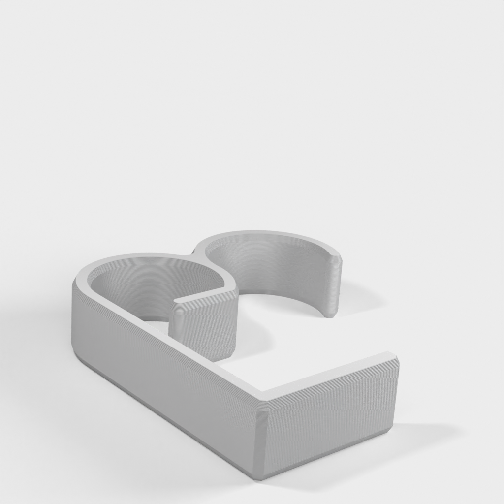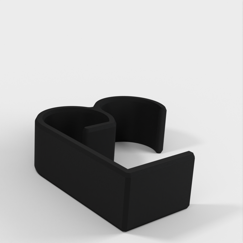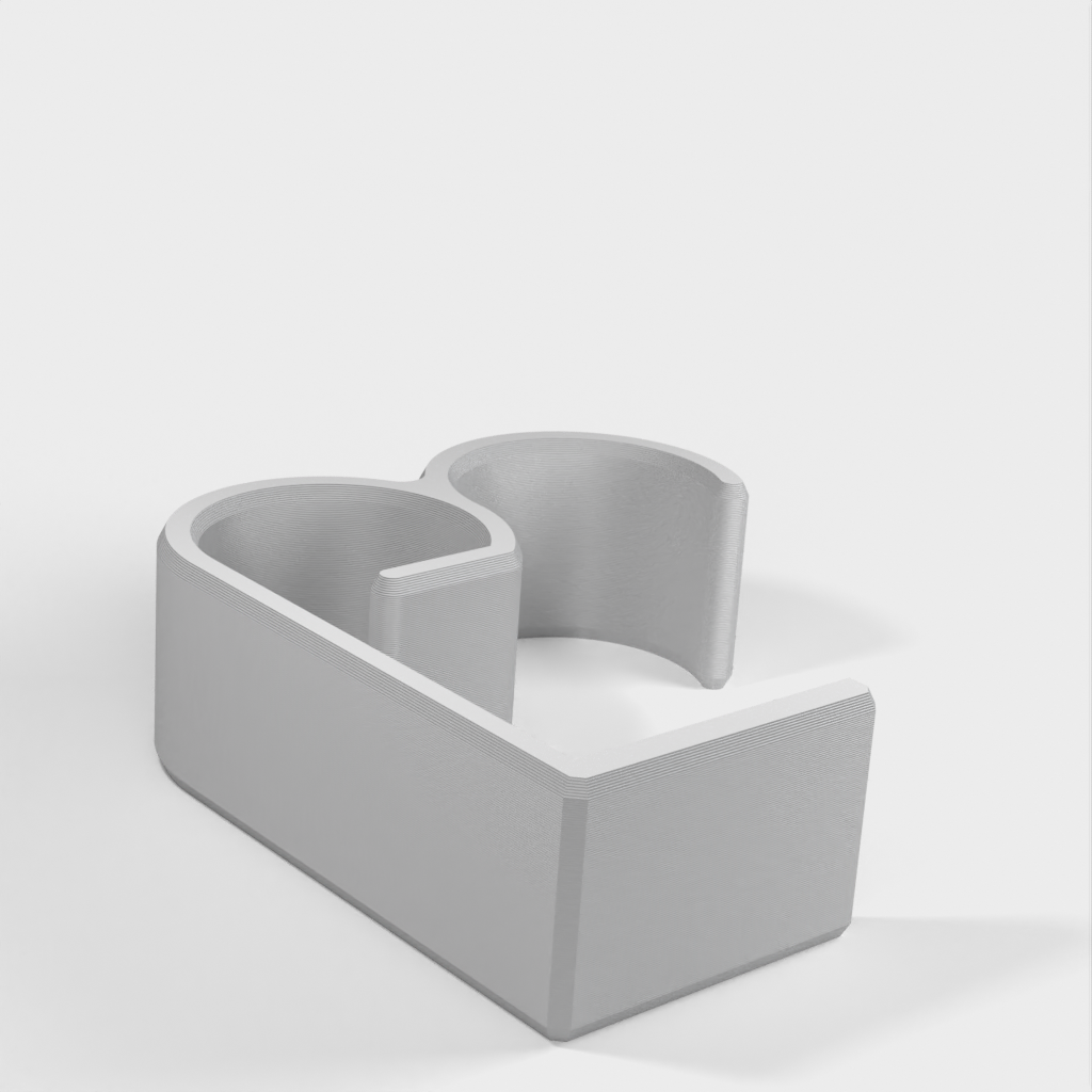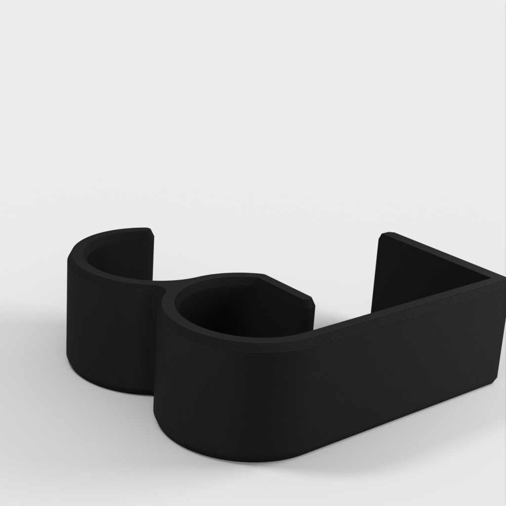 Un conjunto de modelos para ayudarle con su gestión de cables. Estos clips están diseñados para pegarse a escritorios o mesas. Los clips se fabricaron originalmente para las encimeras Linnmon de Ikea, pero son totalmente compatibles con las encimeras Lagkapten y Målvakt, así como con otras encimeras o escritorios que tengan un grosor de 50 mm (~2'). Un modelo tiene un anillo cerrado cuando está montado, mientras que el otro modelo tiene un anillo adicional parcialmente abierto que facilita añadir o quitar cables sobre la marcha. Ambos modelos están disponibles con una anchura de 20 mm y 30 mm, pero se pueden fabricar fácilmente otras anchuras cambiando el tamaño en su programa de corte.