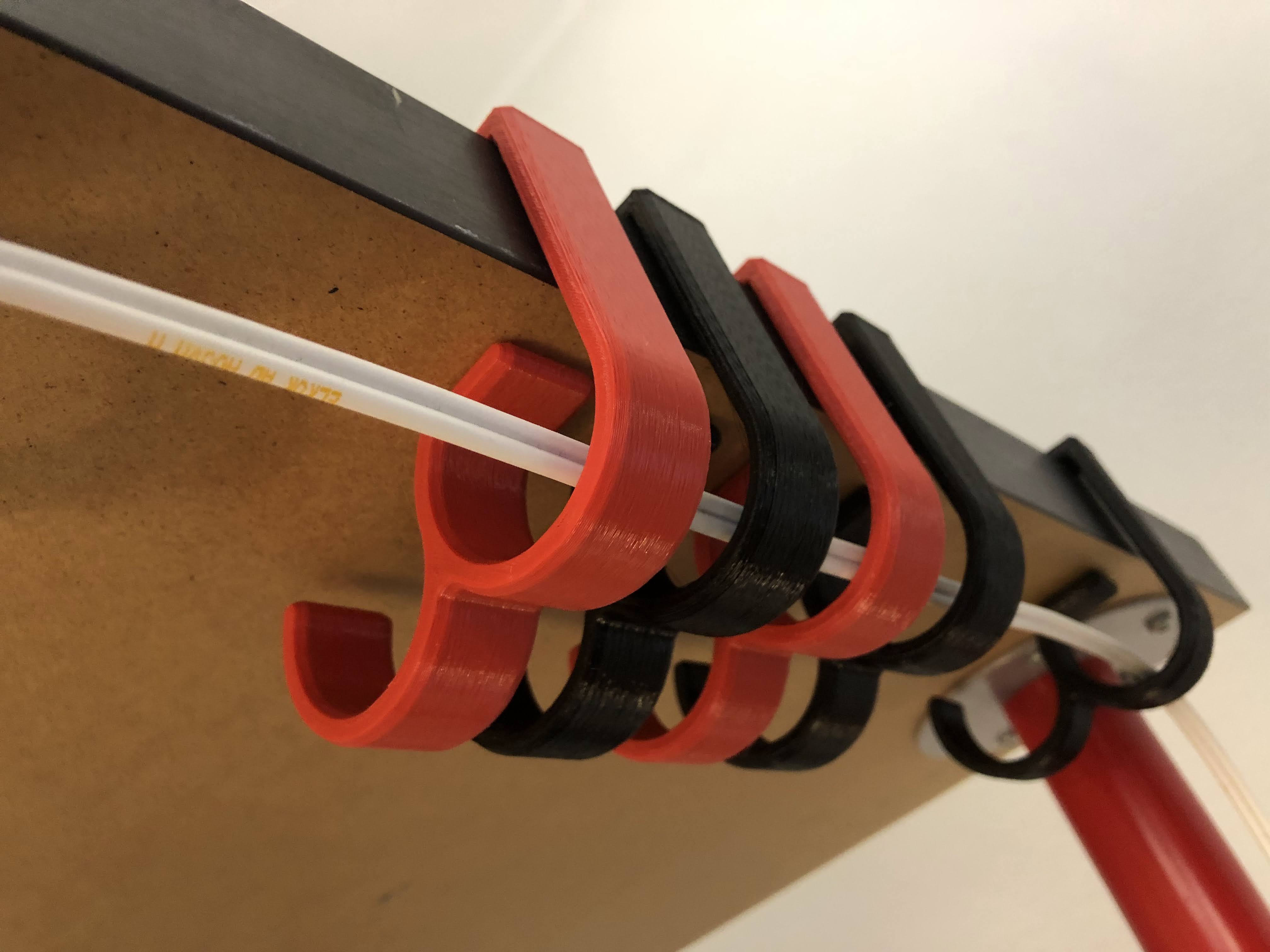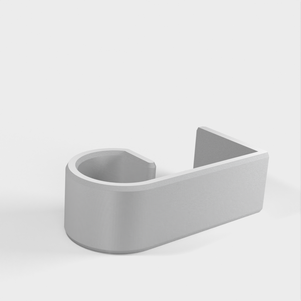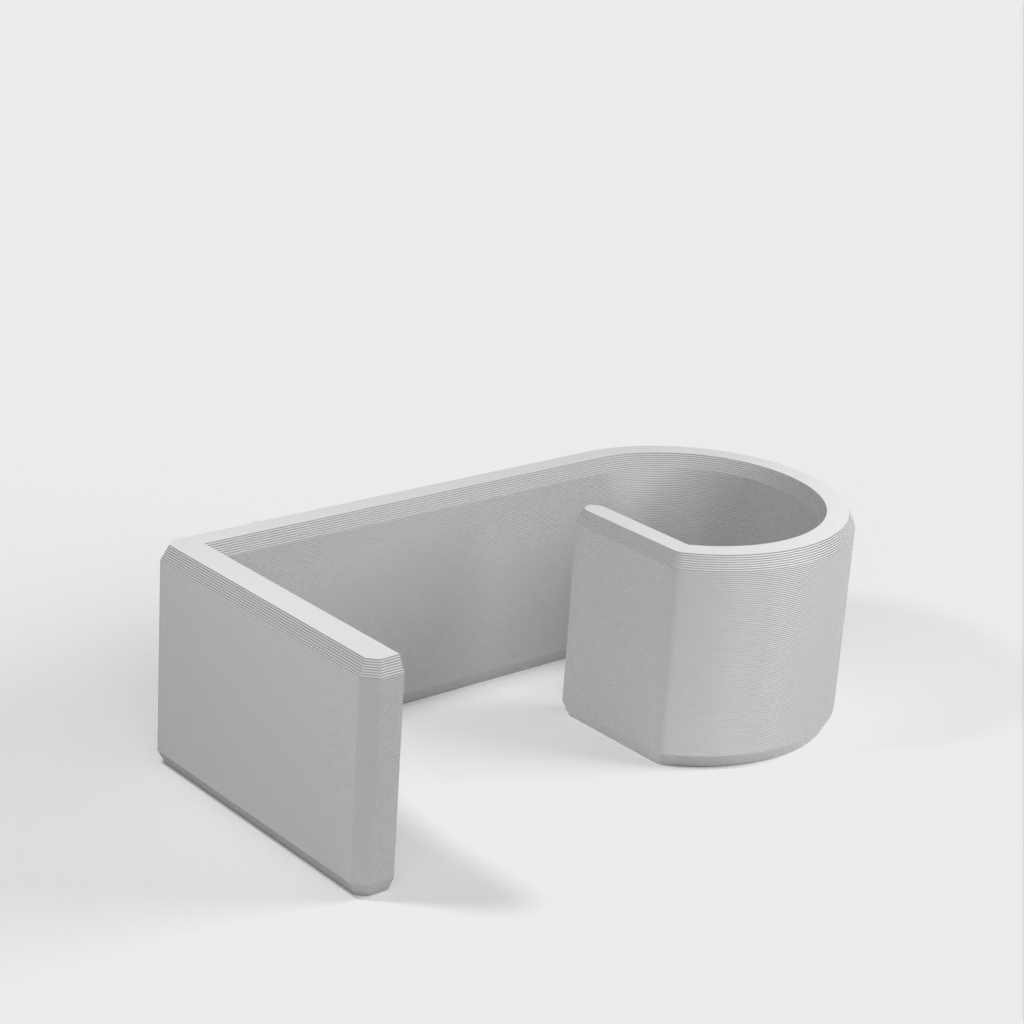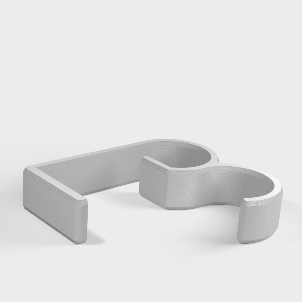 Un conjunto de modelos para ayudarle con su gestión de cables. Estos clips están diseñados para pegarse a escritorios o mesas. Los clips se fabricaron originalmente para las encimeras Linnmon de Ikea, pero son totalmente compatibles con las encimeras Lagkapten y Målvakt, así como con otras encimeras o escritorios que tengan un grosor de 50 mm (~2'). Un modelo tiene un anillo cerrado cuando está montado, mientras que el otro modelo tiene un anillo adicional parcialmente abierto que facilita añadir o quitar cables sobre la marcha. Ambos modelos están disponibles con una anchura de 20 mm y 30 mm, pero se pueden fabricar fácilmente otras anchuras cambiando el tamaño en su programa de corte.