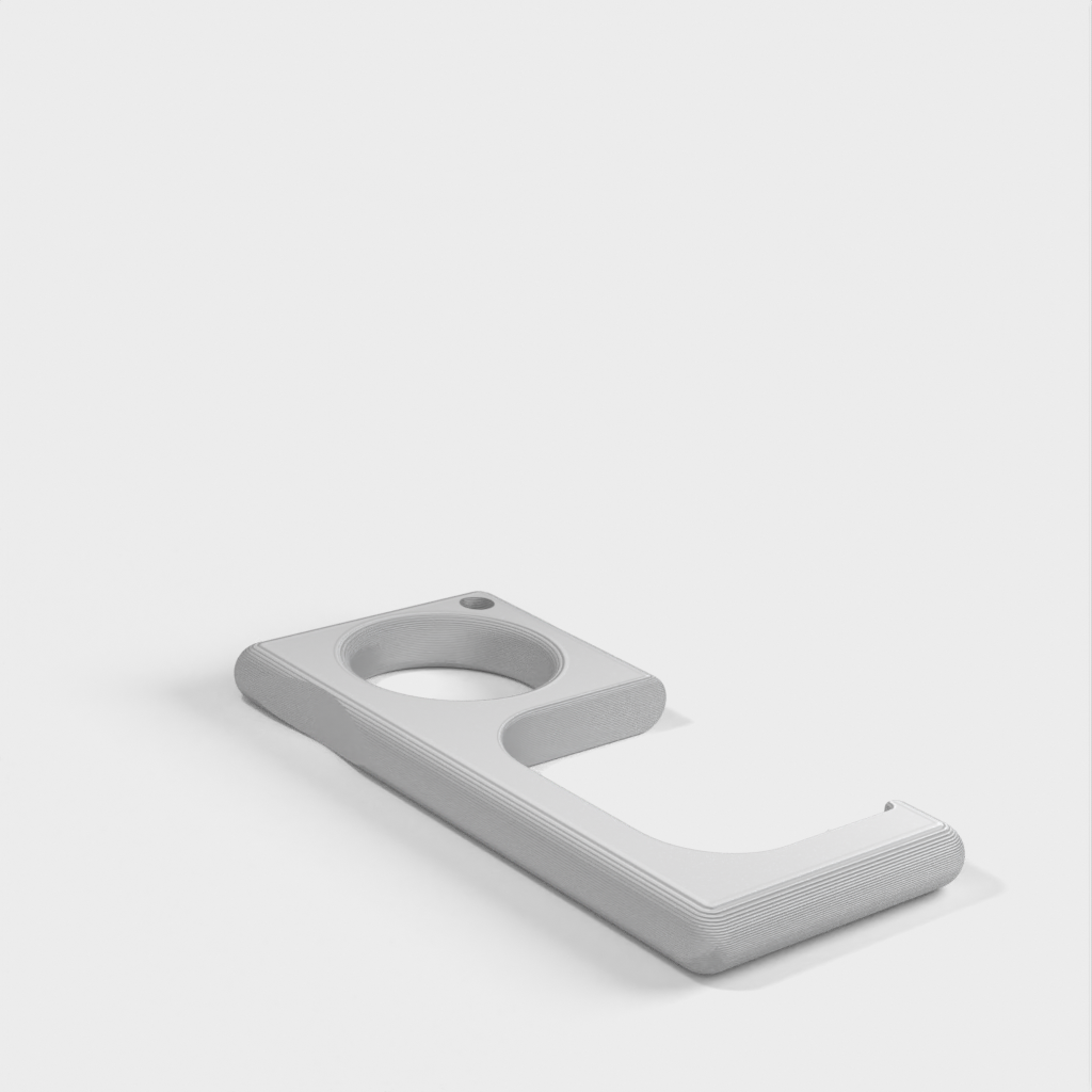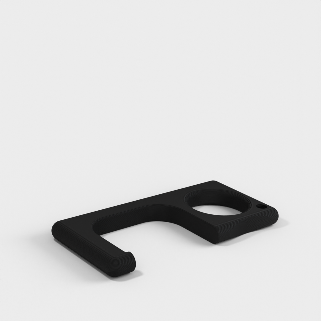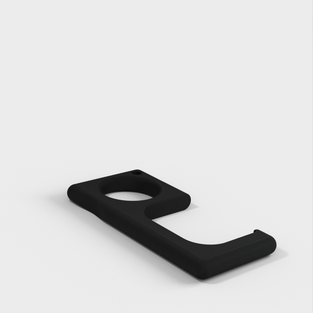 Un sencillo tirador de puerta que se engancha fácilmente a un llavero. Funciona con la mayoría de los tiradores de puerta. Sin embargo, puede romperse con puertas pesadas, típicamente en edificios industriales o ciertos edificios comerciales.
