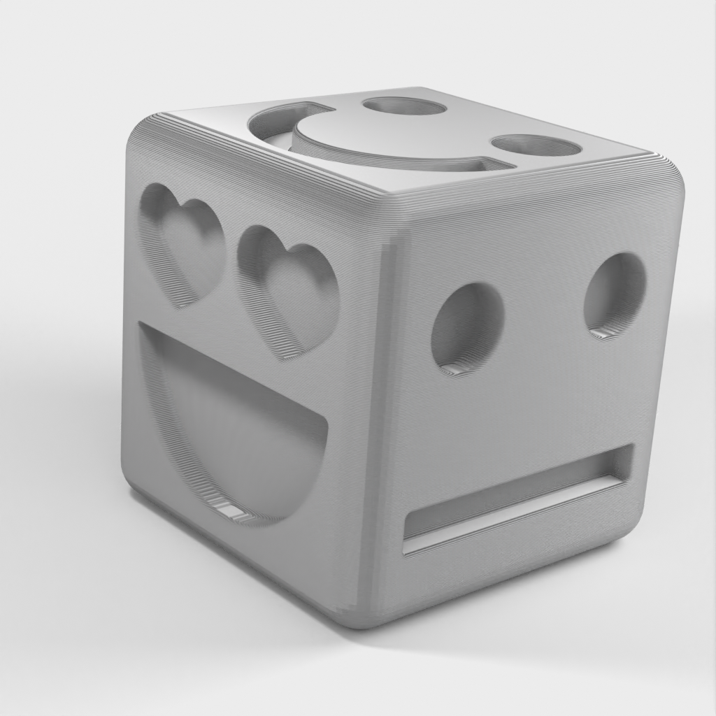 Emotion Dice es un dado con diferentes emociones en cada cara. Se puede utilizar con fines educativos, donde los niños y jóvenes pueden tirar los dados para expresar diferentes emociones, o utilizarlo como una herramienta educativa para aprender sobre las emociones de una manera divertida y atractiva. Se necesita soporte para este modelo.