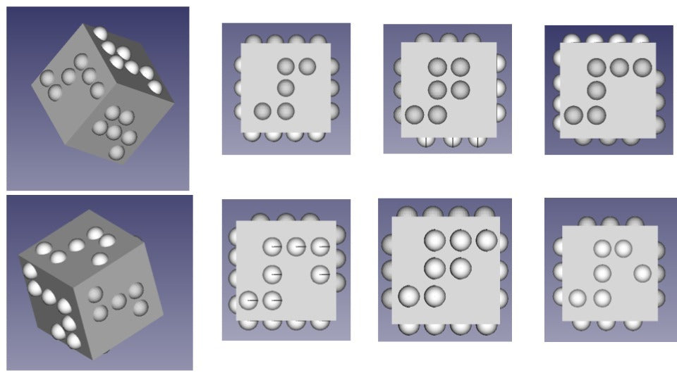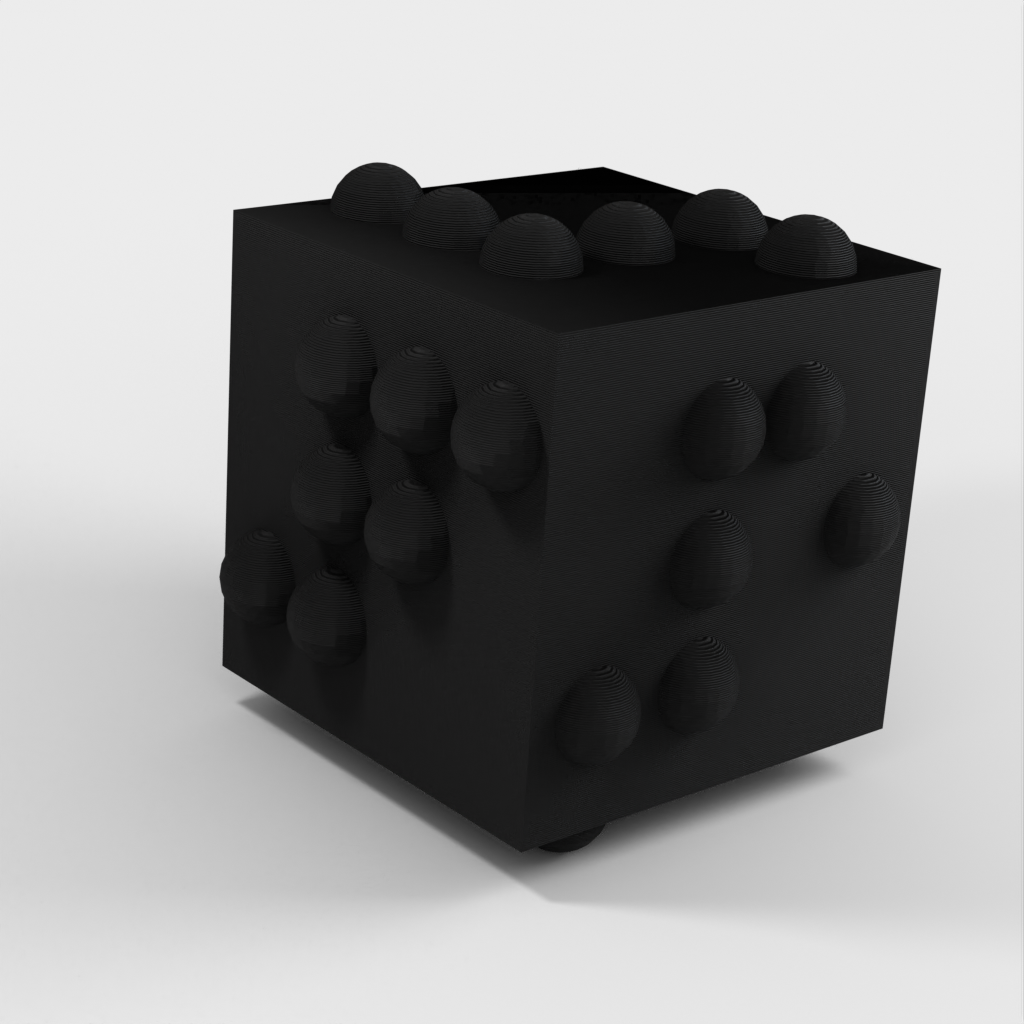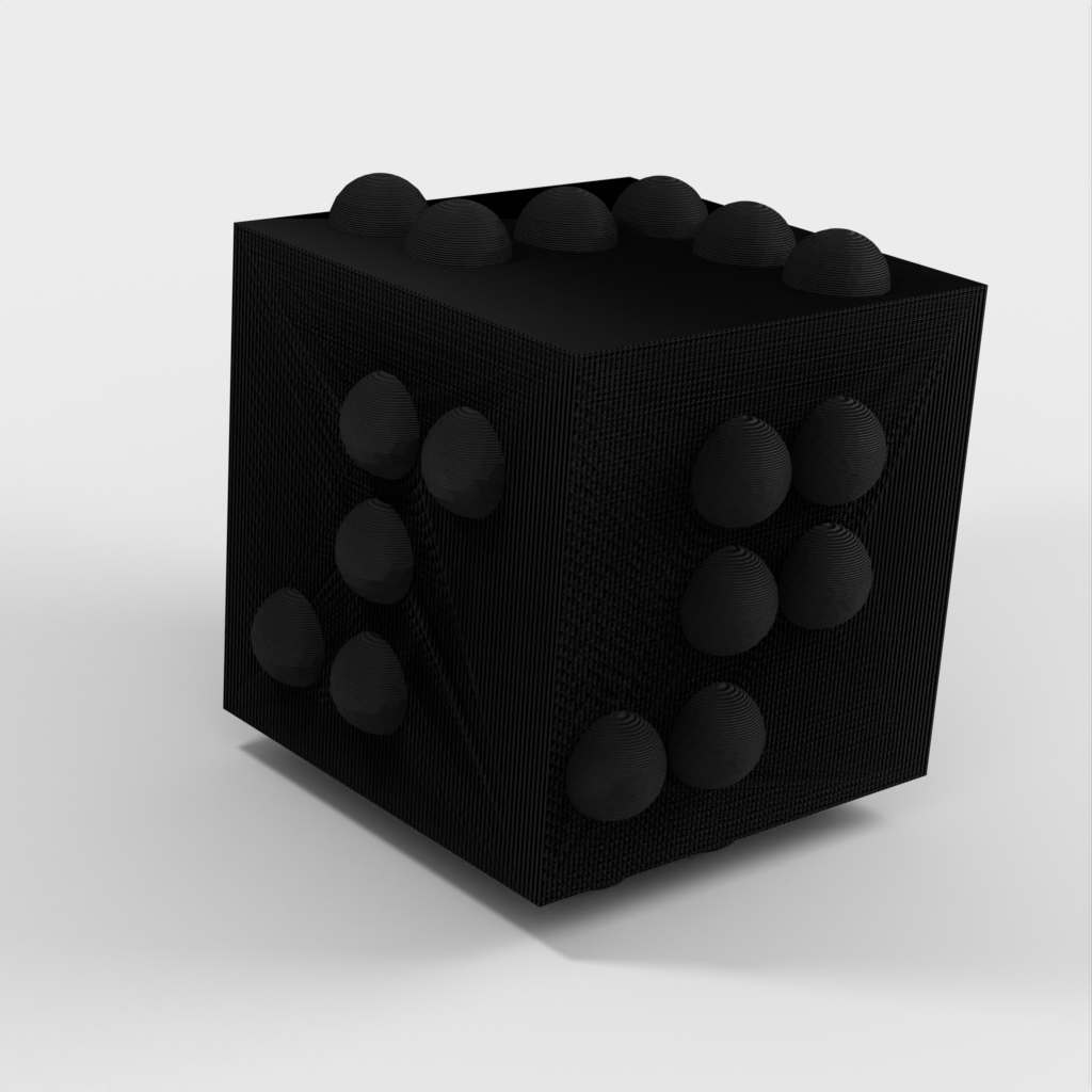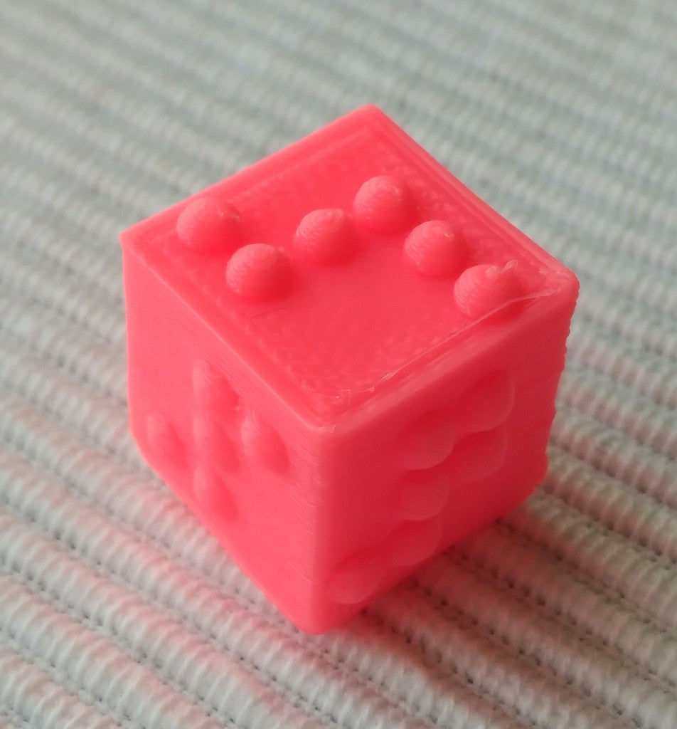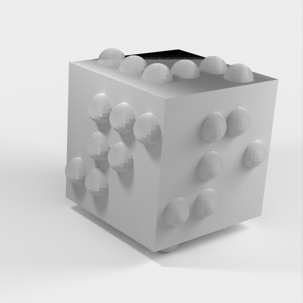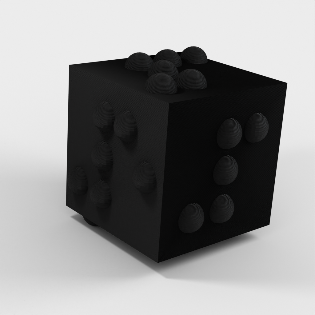 Dado diseñado para jugar para personas con discapacidad visual. Se puede utilizar para que las personas ciegas puedan jugar a los dados tocando la parte superior para saber qué número han jugado.