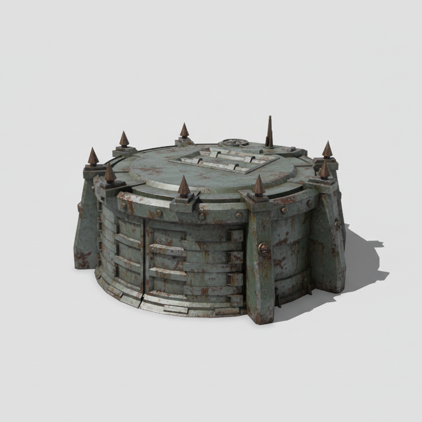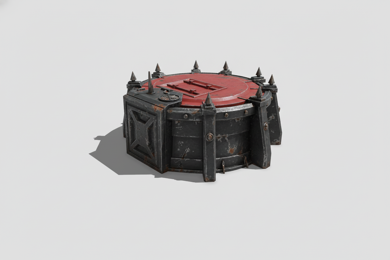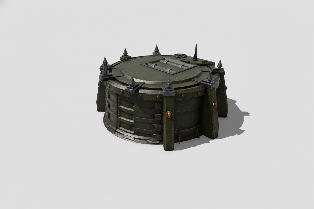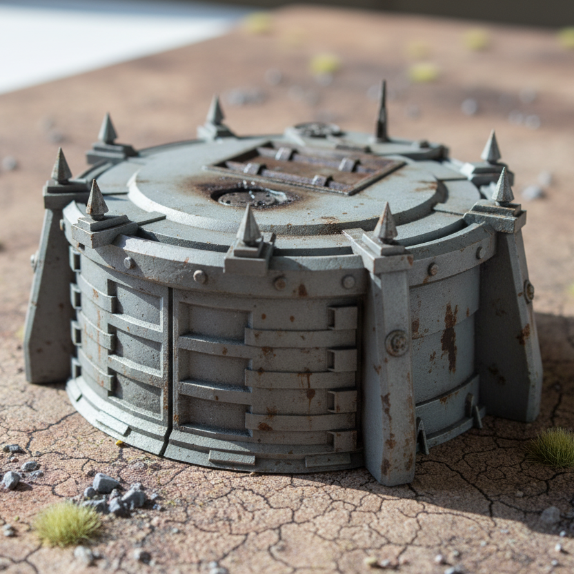 - Depósito para vehículos pesados adecuado para escenarios de wargaming grimdark.