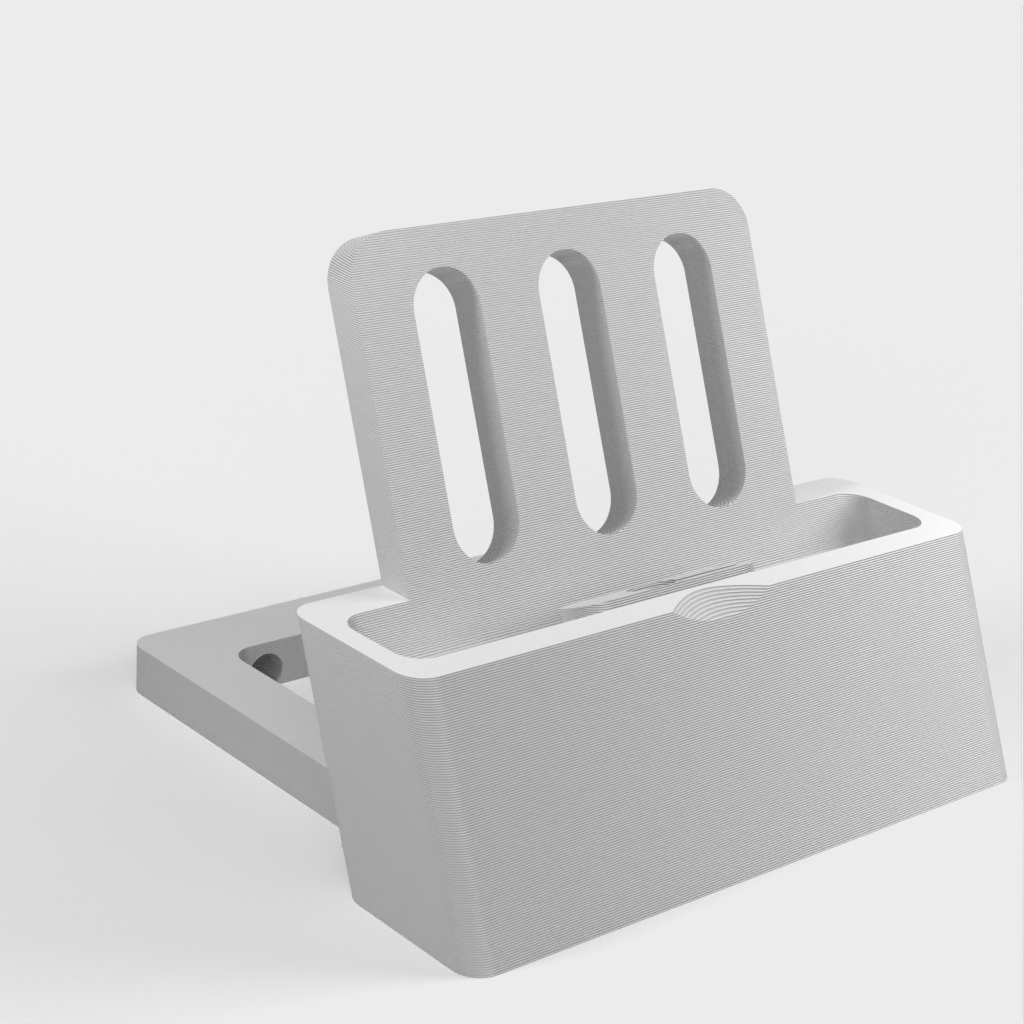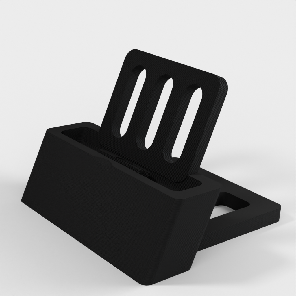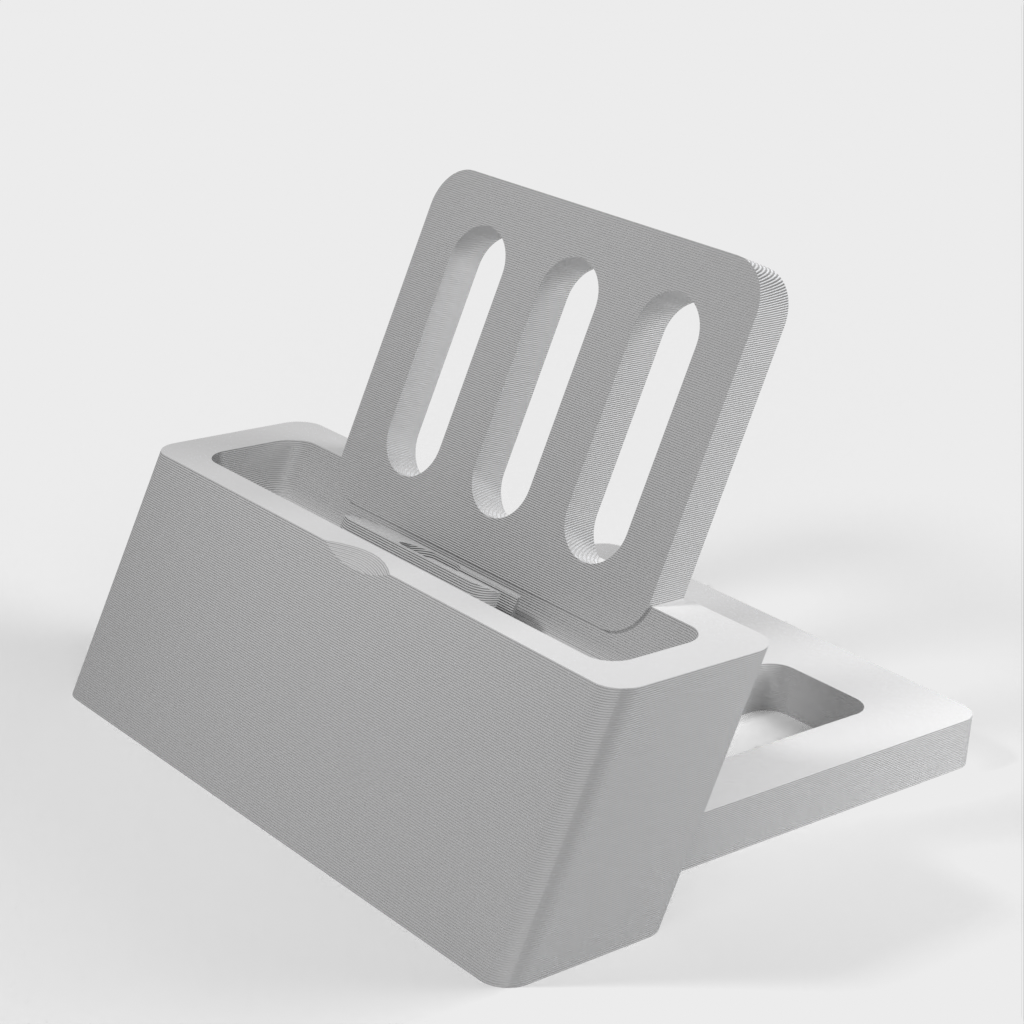 iPhone 5/6 Dock v3 es un soporte para tu iPhone, incluso cuando está en su funda. El soporte también soporta la parte trasera de la funda. Esta versión sigue siendo compatible con iPhone 5 y ahora ha añadido soporte para iPhone 6.