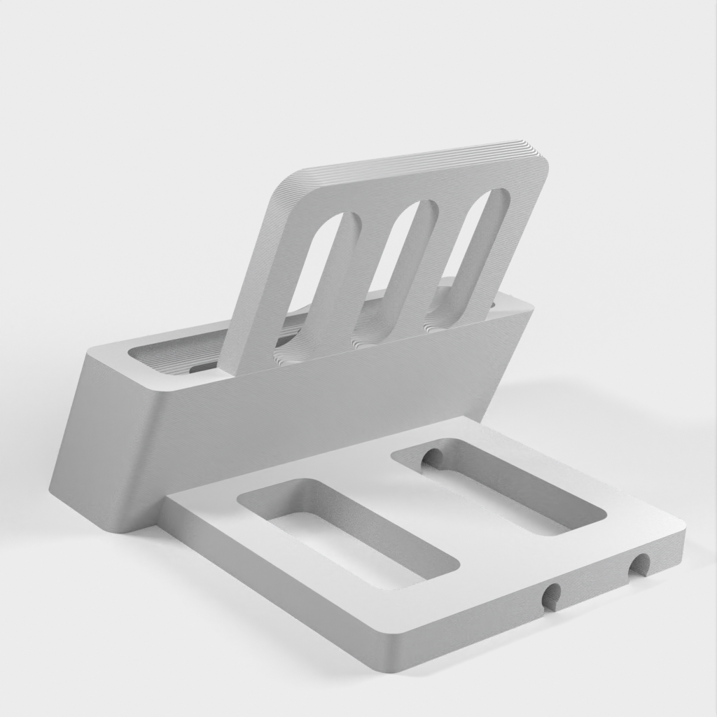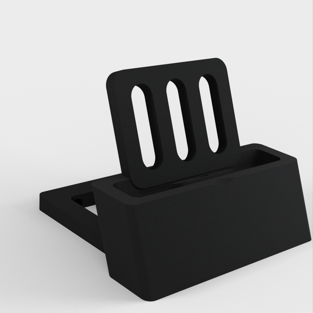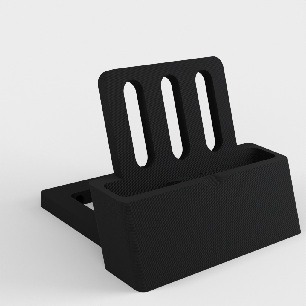 iPhone 5/6 Dock v3 es un soporte para tu iPhone, incluso cuando está en su funda. El soporte también soporta la parte trasera de la funda. Esta versión sigue siendo compatible con iPhone 5 y ahora ha añadido soporte para iPhone 6.