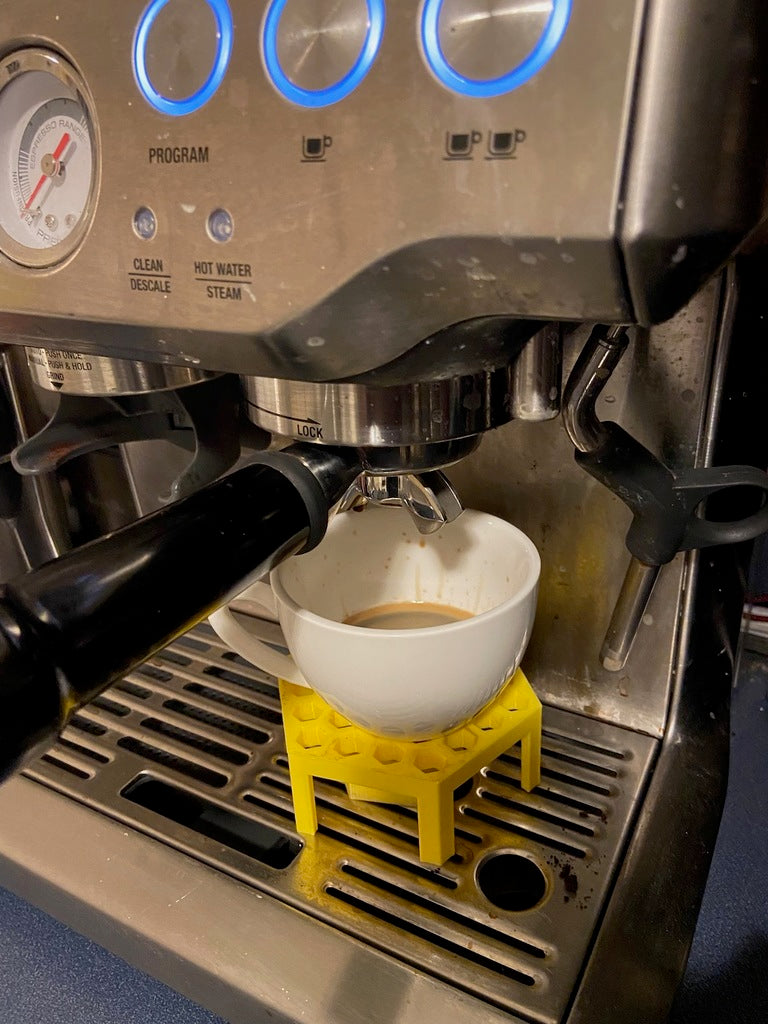 Presentamos el Elevador de Tazas de Espresso: un práctico accesorio diseñado para mejorar su experiencia diaria con el café. Este elevador de tazas está creado para colocar su taza de espresso más cerca de la salida de la máquina de espresso durante la extracción. Esto ayuda a optimizar la formación de la crema y el despliegue completo del sabor y aroma del café.