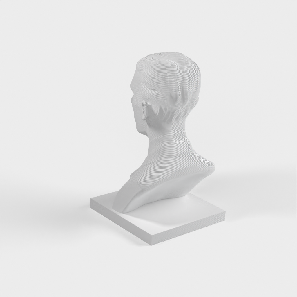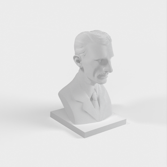 Un busto sencillo de Nikola Tesla con un zócalo básico. Este busto está diseñado para honrar al icónico científico y sus notables contribuciones a la ciencia. Perfecto para exhibir y apreciar en su hogar, oficina o escritorio.