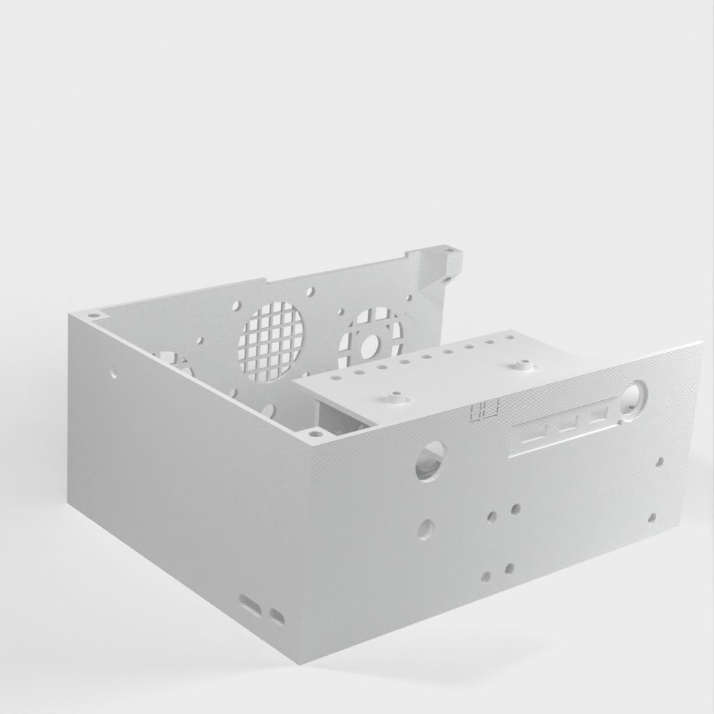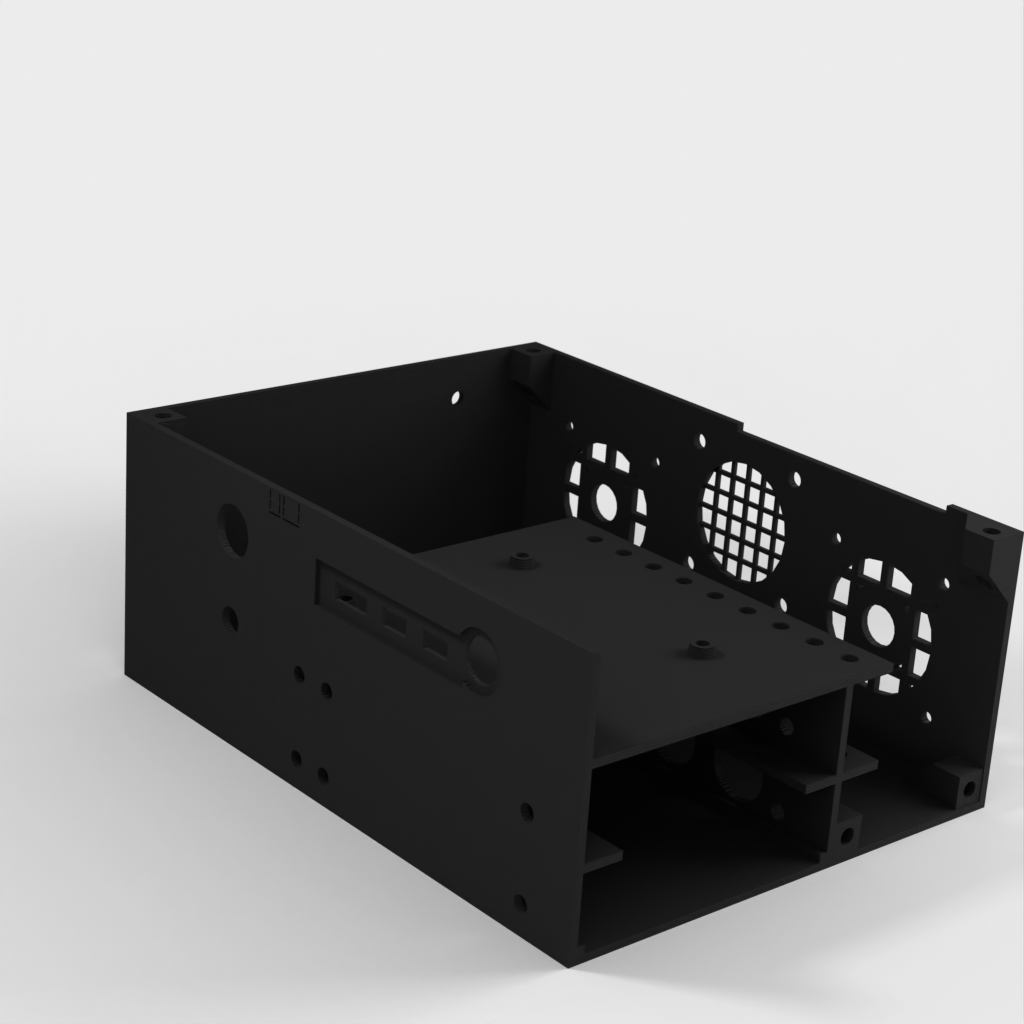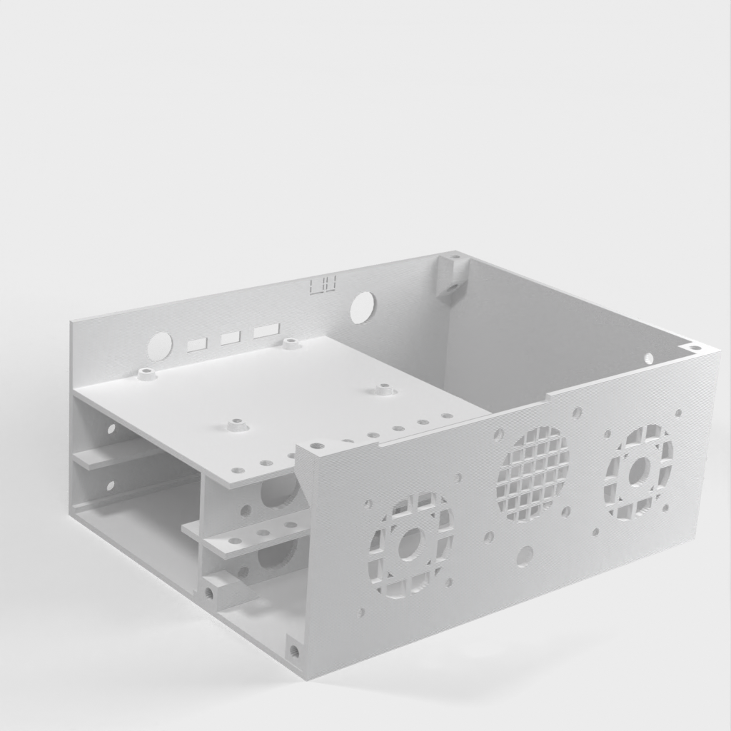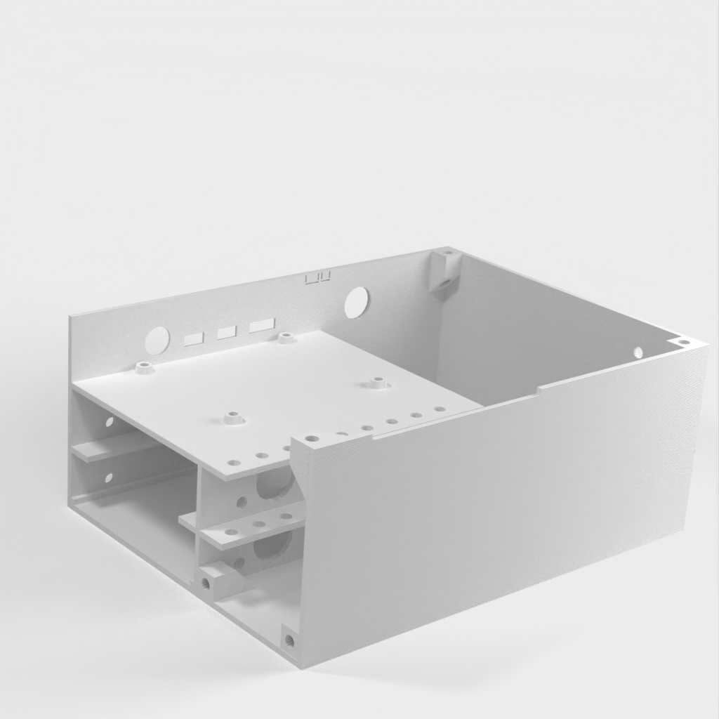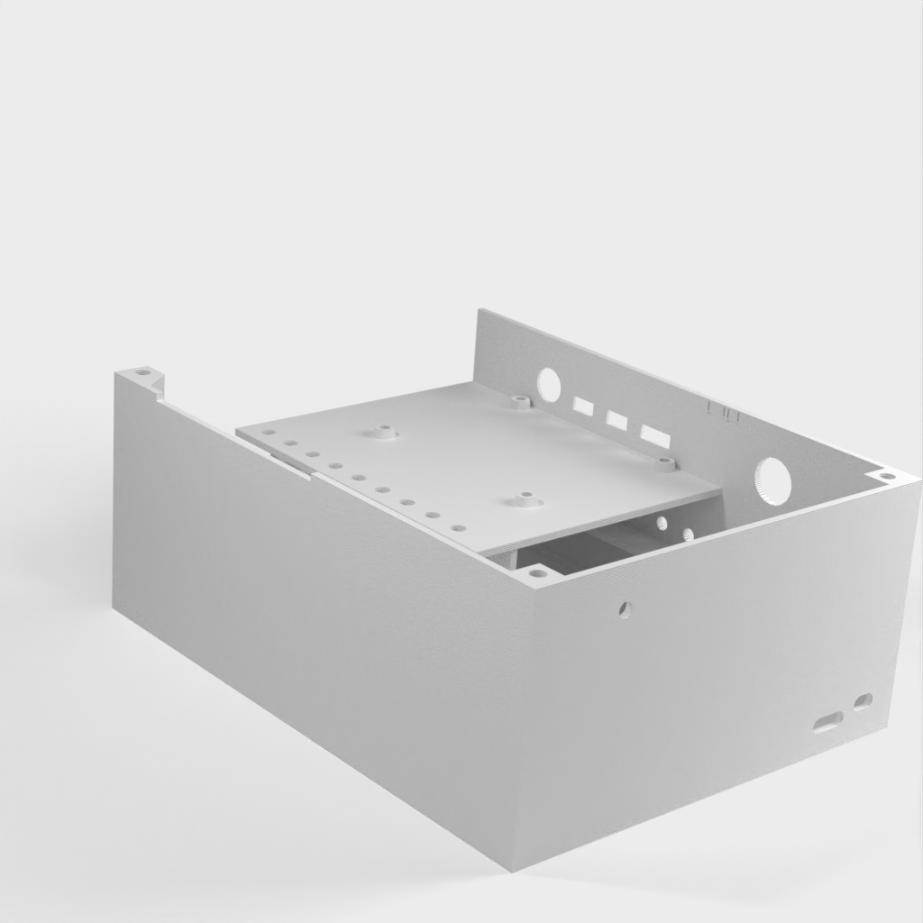 Caja de escritorio para Raspberry Pi 4B con espacio incorporado para una fuente de alimentación de 5V 4A y hasta 2 discos SATA. También hay espacio de almacenamiento para su propio equipo.