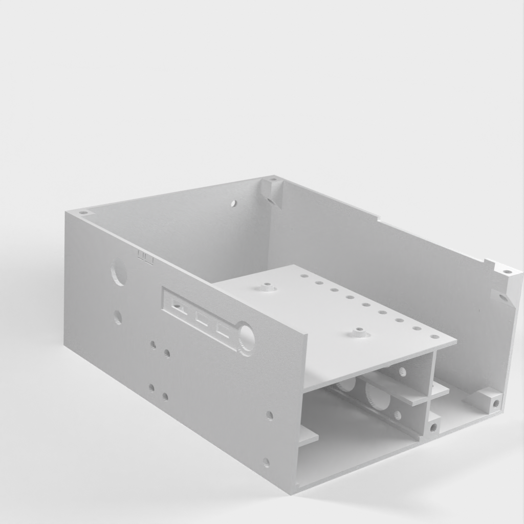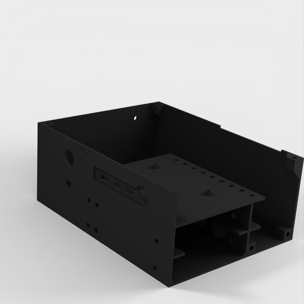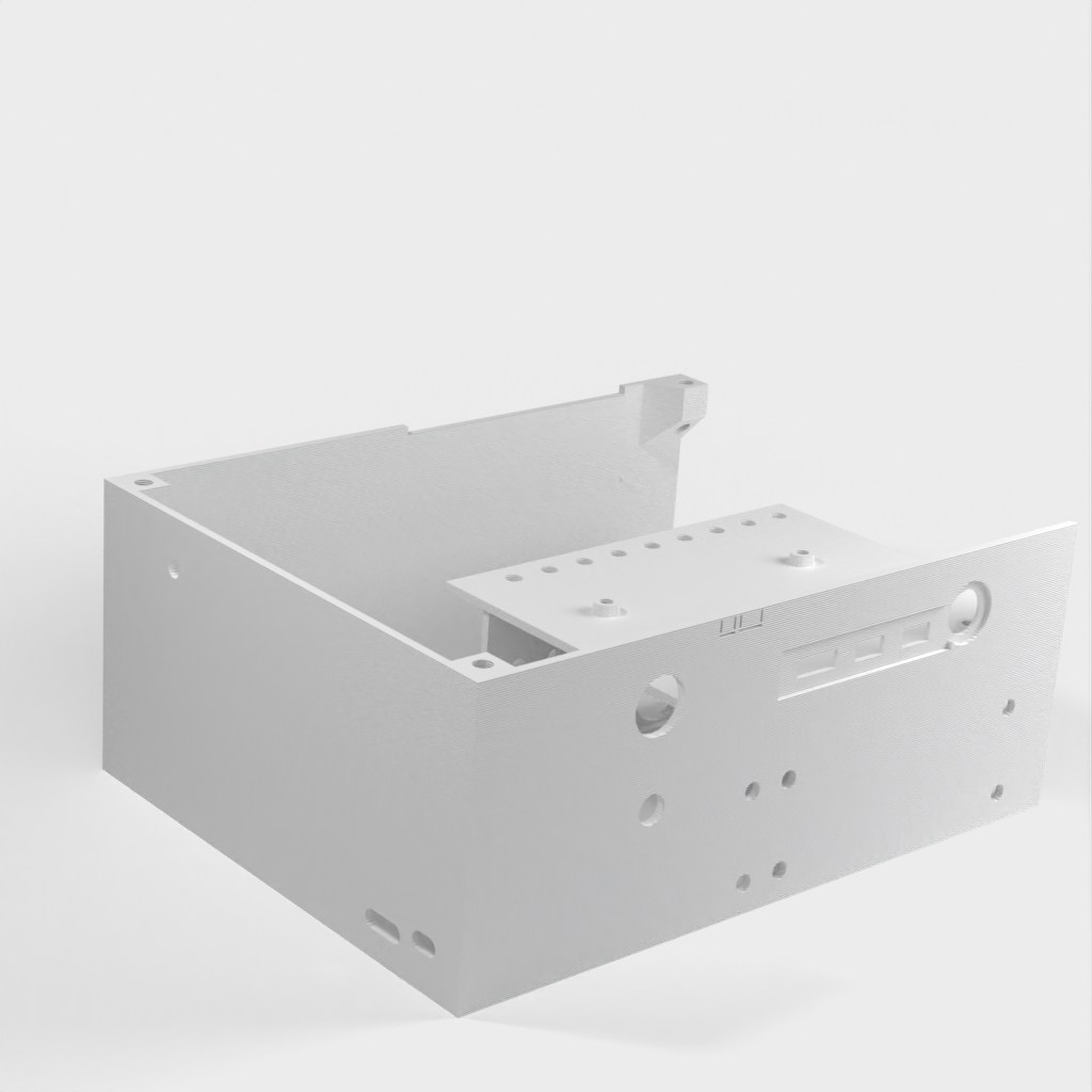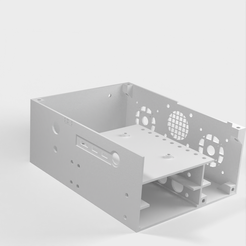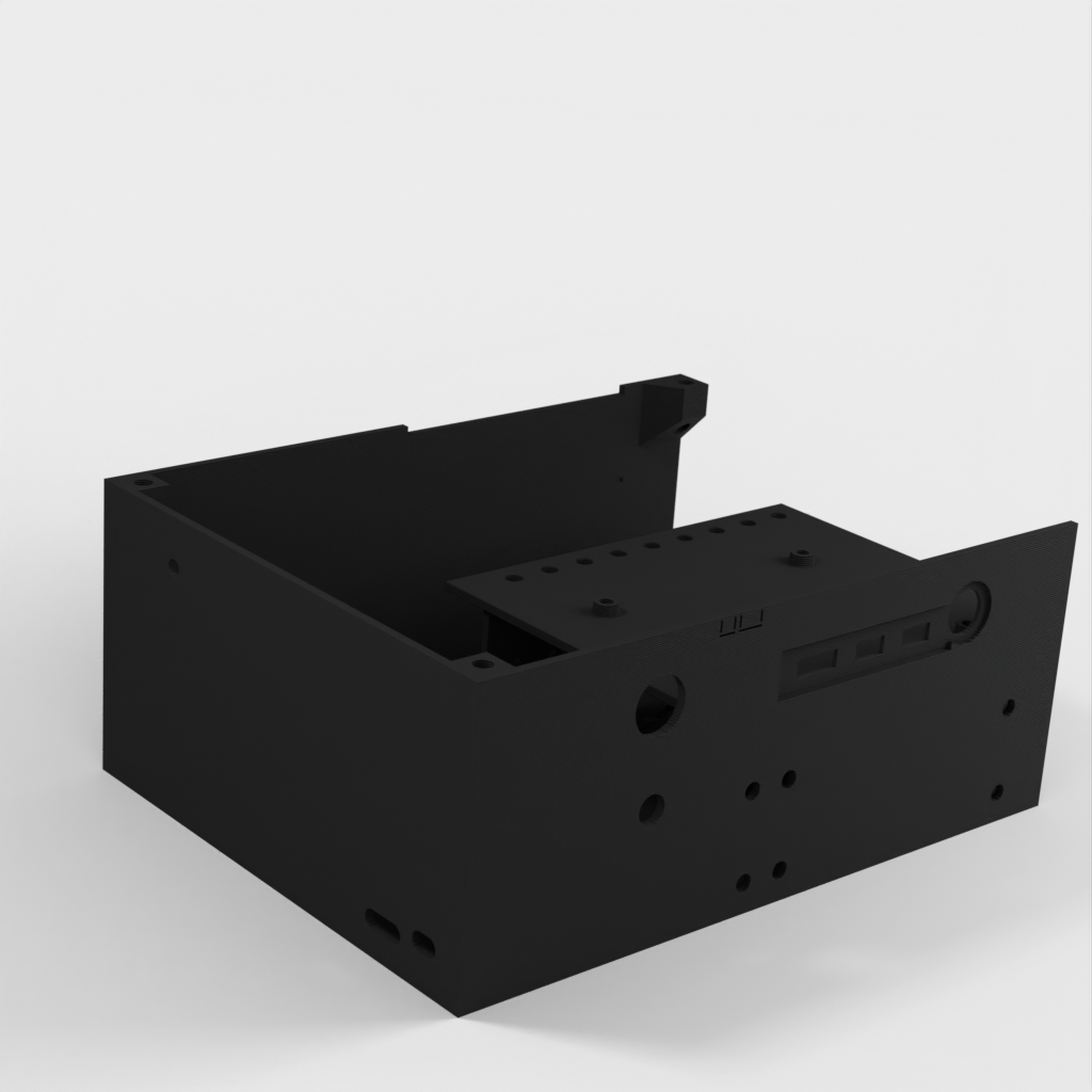 Caja de escritorio para Raspberry Pi 4B con espacio incorporado para una fuente de alimentación de 5V 4A y hasta 2 discos SATA. También hay espacio de almacenamiento para su propio equipo.