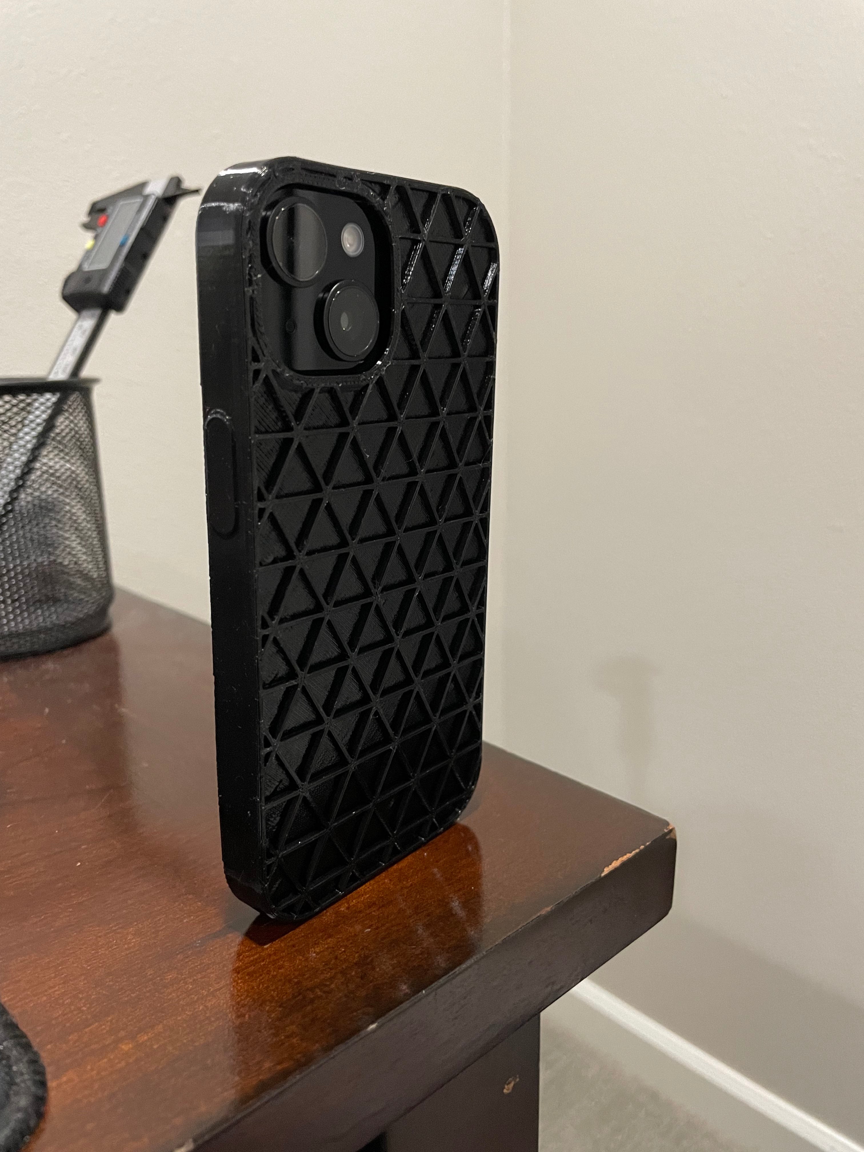 Ofrezca a su iPhone 15 una protección y funcionalidad óptimas con esta elegante funda, diseñada para el uso diario. La funda tiene un patrón triangular único en la parte posterior que no solo agrega un toque estético moderno, sino que también mejora el agarre para que su teléfono descanse de forma segura en su mano.