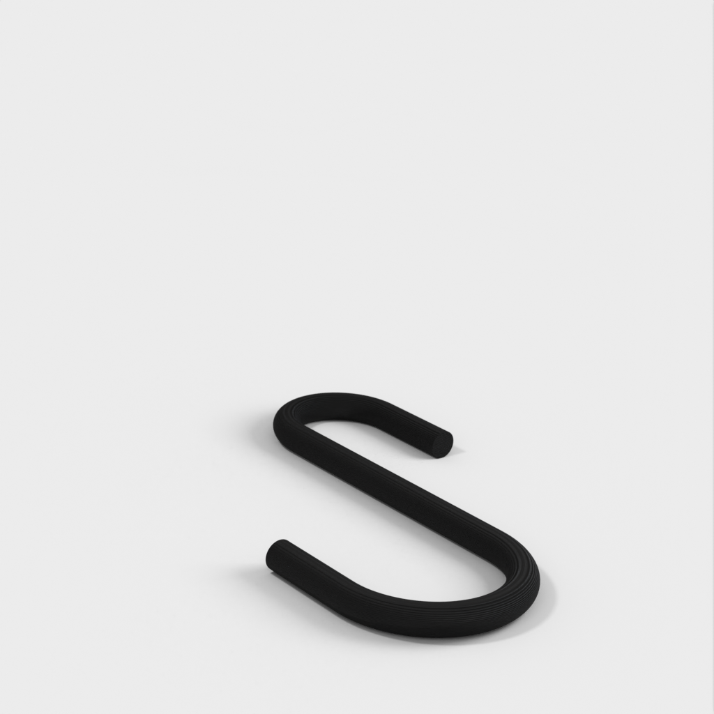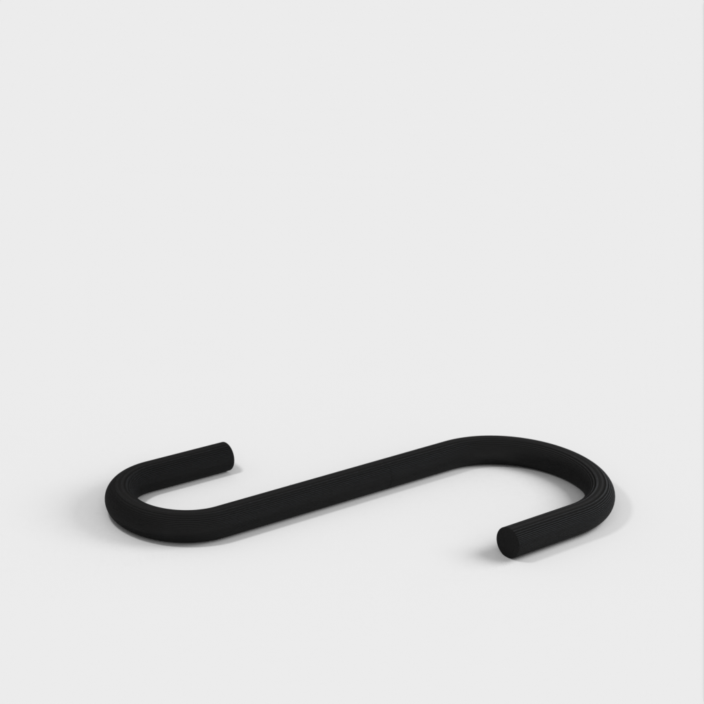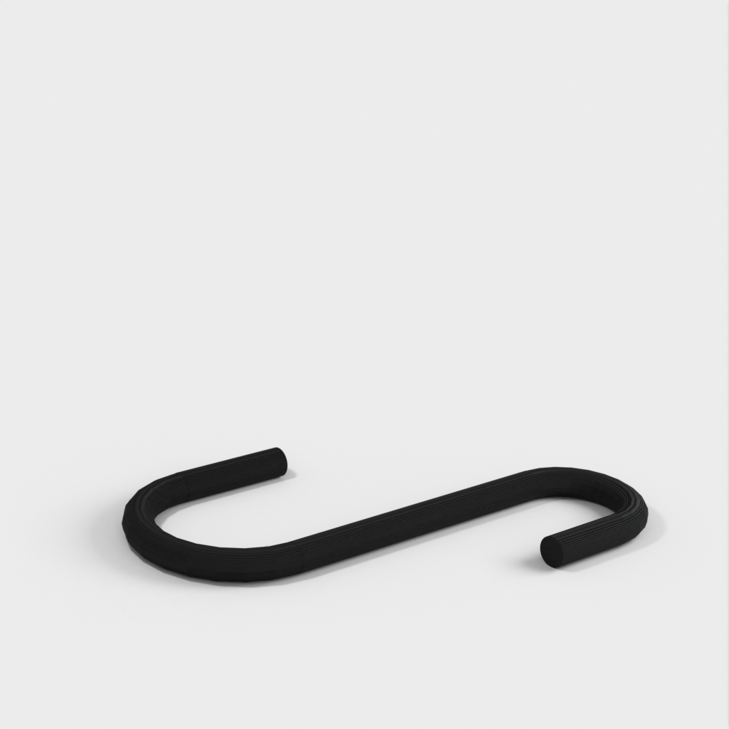 He añadido una versión 'volteada' en la que los dos extremos de los ganchos están en ángulo recto entre sí. Esto permite colgar objetos anchos como sartenes con un perfil que ahorra mucho más espacio que el gancho normal.