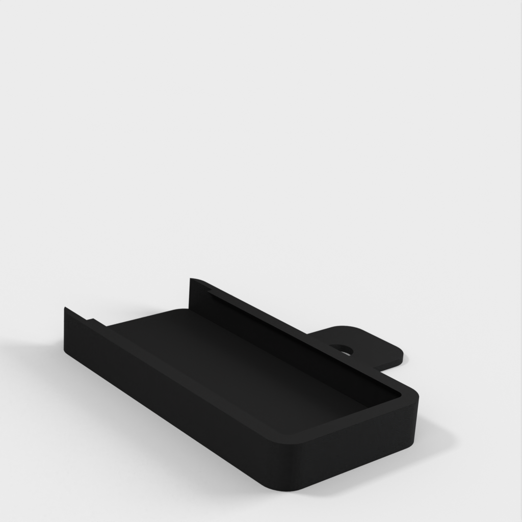 Un sencillo soporte para el mando a distancia del amplificador ButtKicker. La abertura del soporte que sujeta el mando a distancia está en un ángulo de 45 grados, lo que significa que no se necesita ningún soporte adicional para esta impresión.