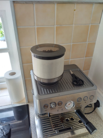 El extensor es robusto y garantiza una expansión estable de su depósito de granos. Con una extensión estándar de 100 mm, se integra perfectamente con su Sage Breville Barista Express. Como una pieza esencial de accesorios para espresso, este extensor optimiza la funcionalidad de su máquina de café y le permite disfrutar de granos recién molidos sin interrupciones constantes. Es ideal para aquellos que valoran tanto la eficiencia como un proceso de elaboración uniforme.