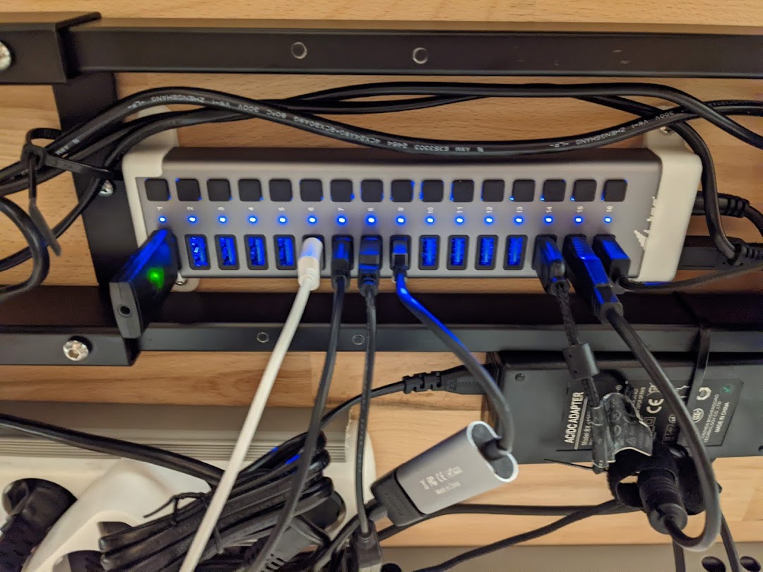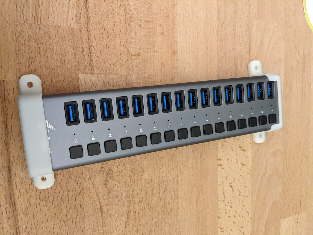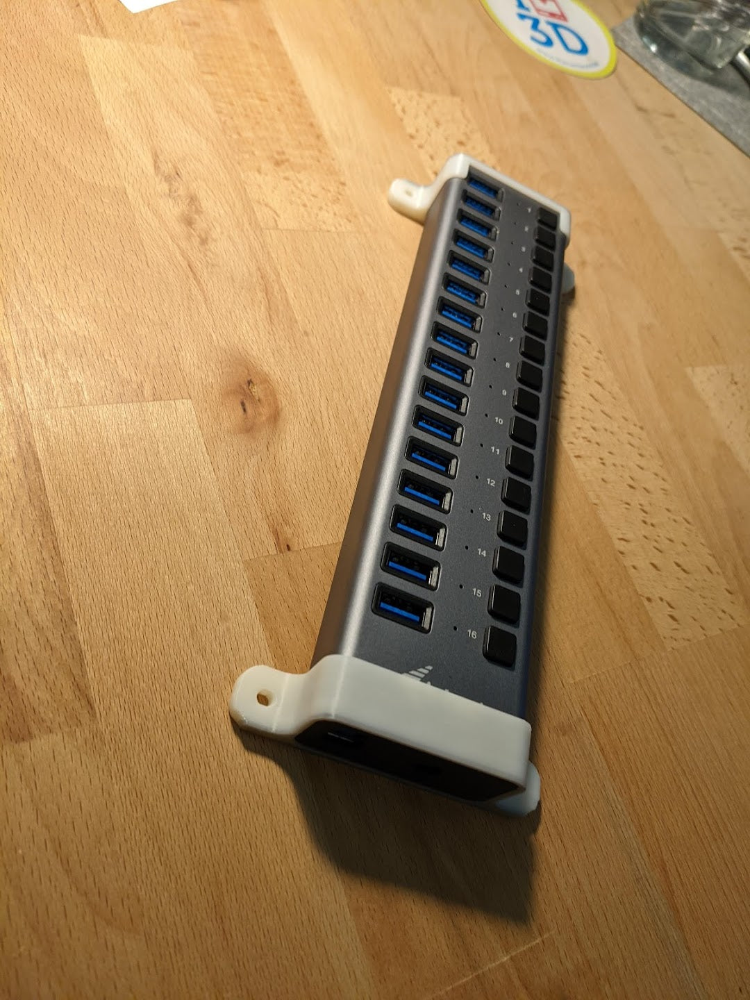 Soporte USB de pared/escritorio para concentrador USB de carga i-Tec. Mi propia unidad está montada debajo de mi escritorio. Posiblemente compatible con otros hubs con dimensiones 53mm x 24mm.