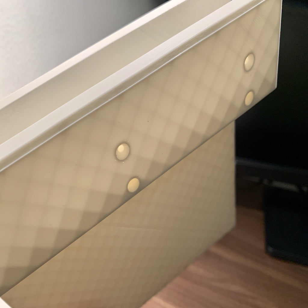 Esto está en dos partes, puedes pegarlo o simplemente usar algunos tornillos. La versión 2 ahora es más robusta, por lo que su mesa de noche dura aún más.