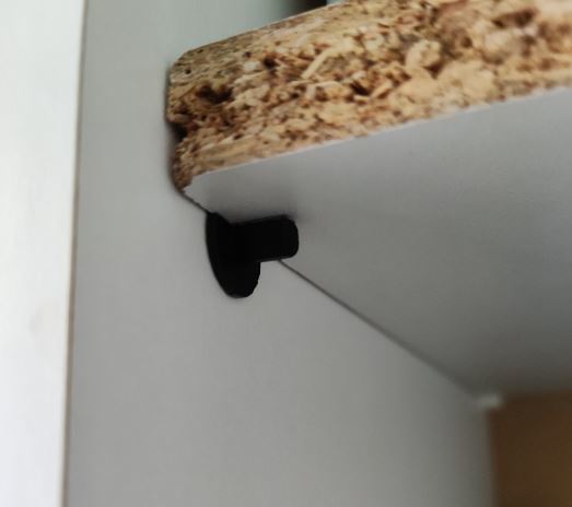 Este es un pasador de soporte para estanterías Ikea. A menudo es demasiado fácil perder uno de ellos, y por lo general no hay reemplazos o piezas de repuesto disponibles. El viaje a Ikea por uno de ellos no es deseable.