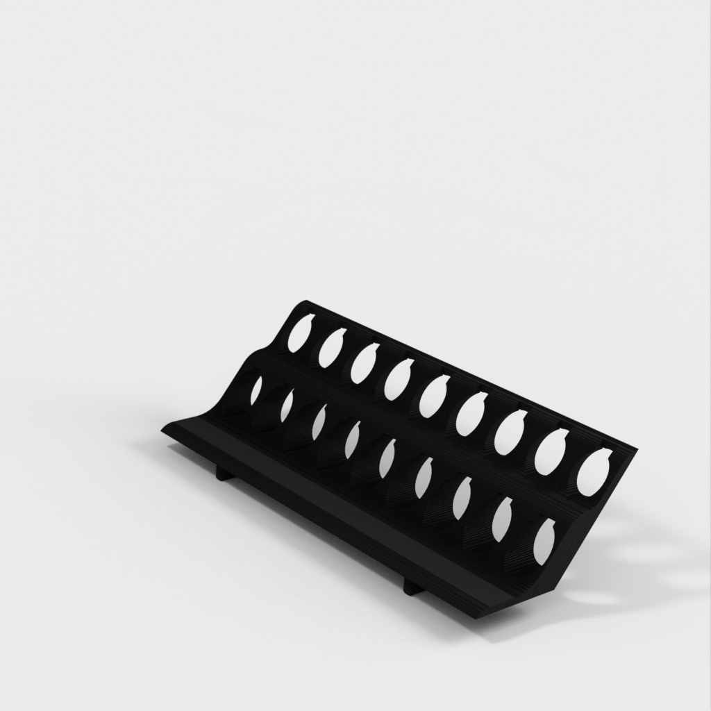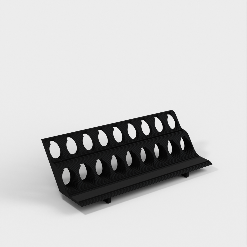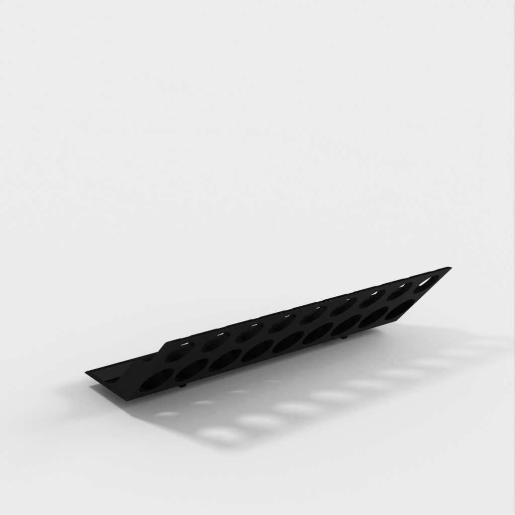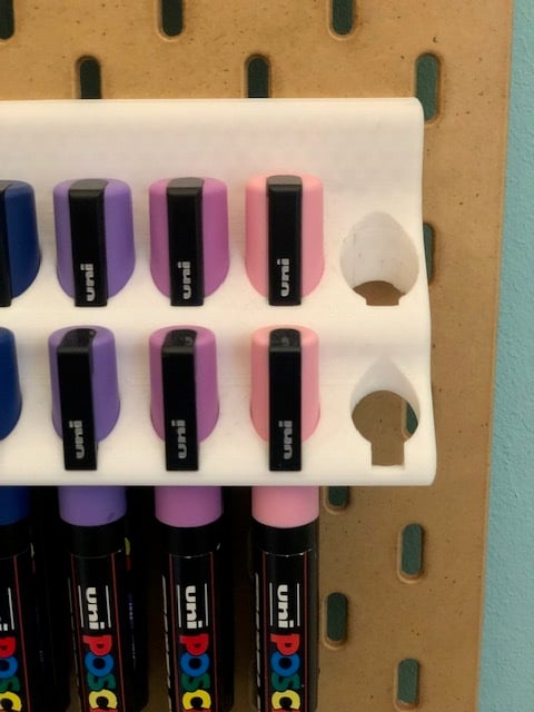 El portalápices Posca es un accesorio para la pizarra blanca SKÅDIS de IKEA. Está diseñado para guardar bolígrafos Posca de los tamaños PC-3M y PC-5M. Una parte del soporte puede contener nueve bolígrafos pequeños y nueve bolígrafos grandes. Esto facilita el almacenamiento y la organización de los rotuladores Posca.