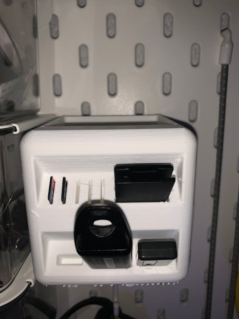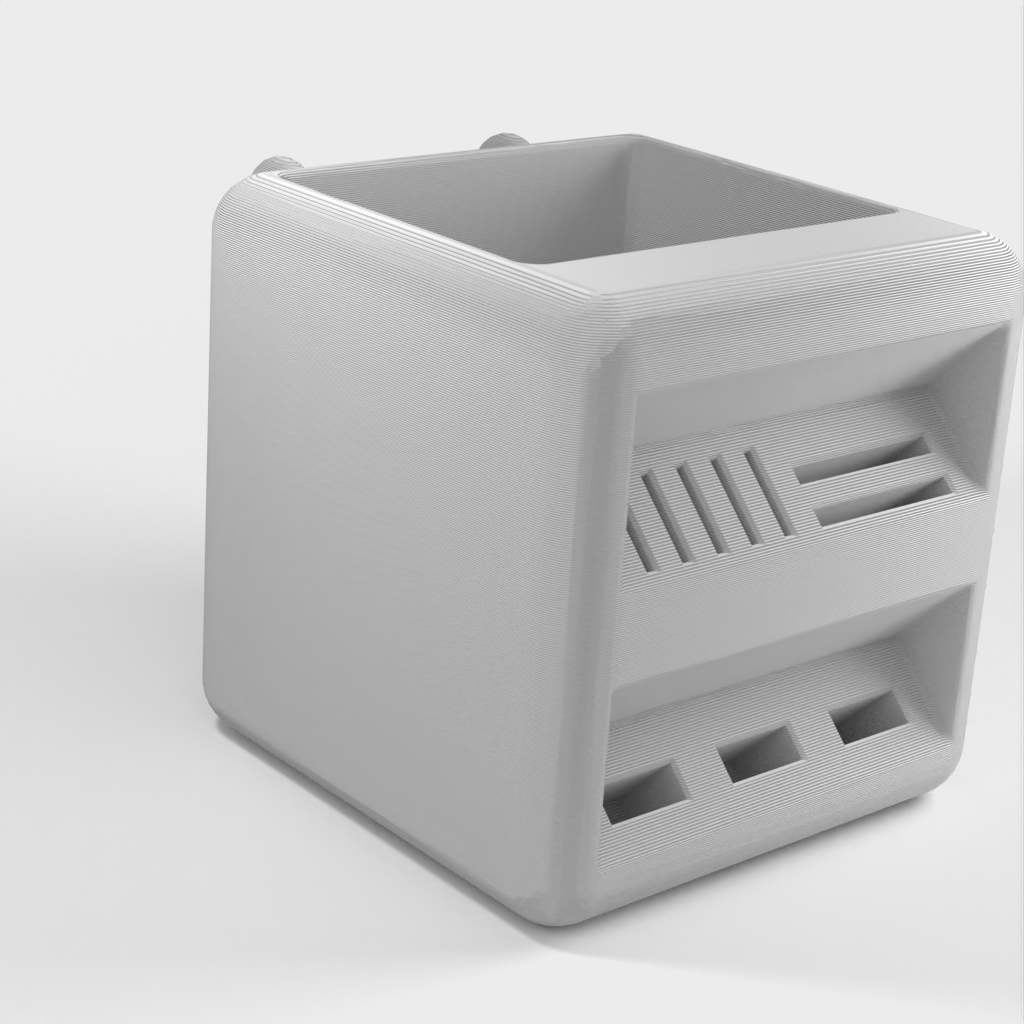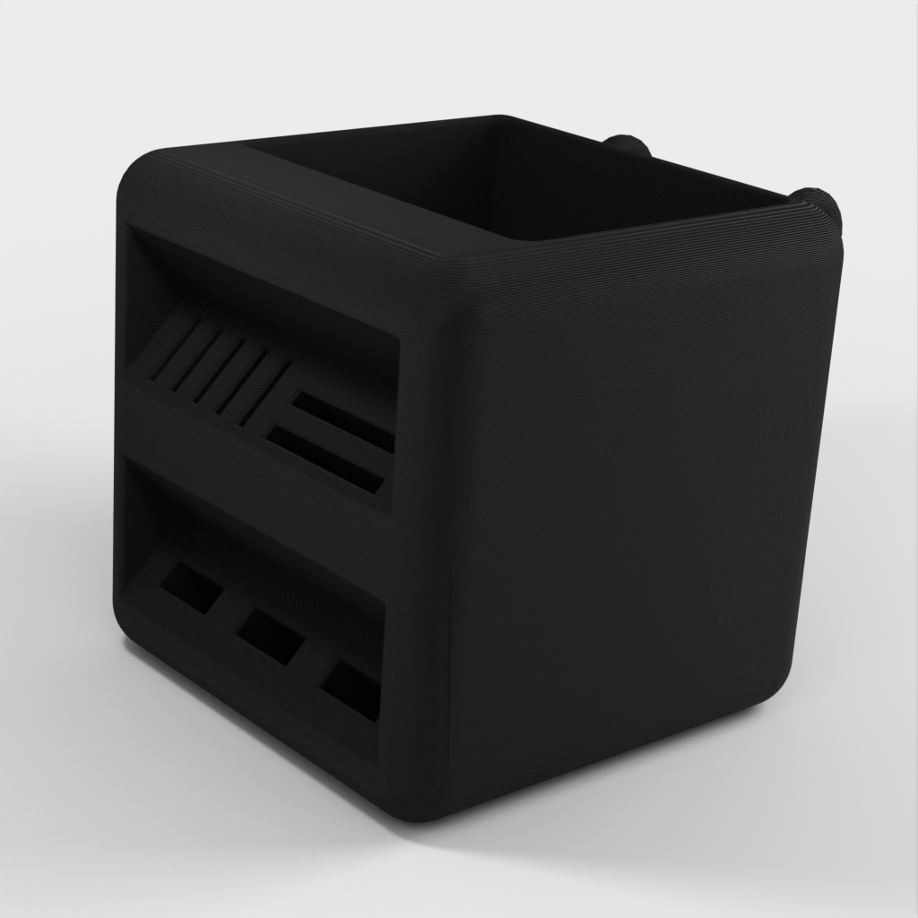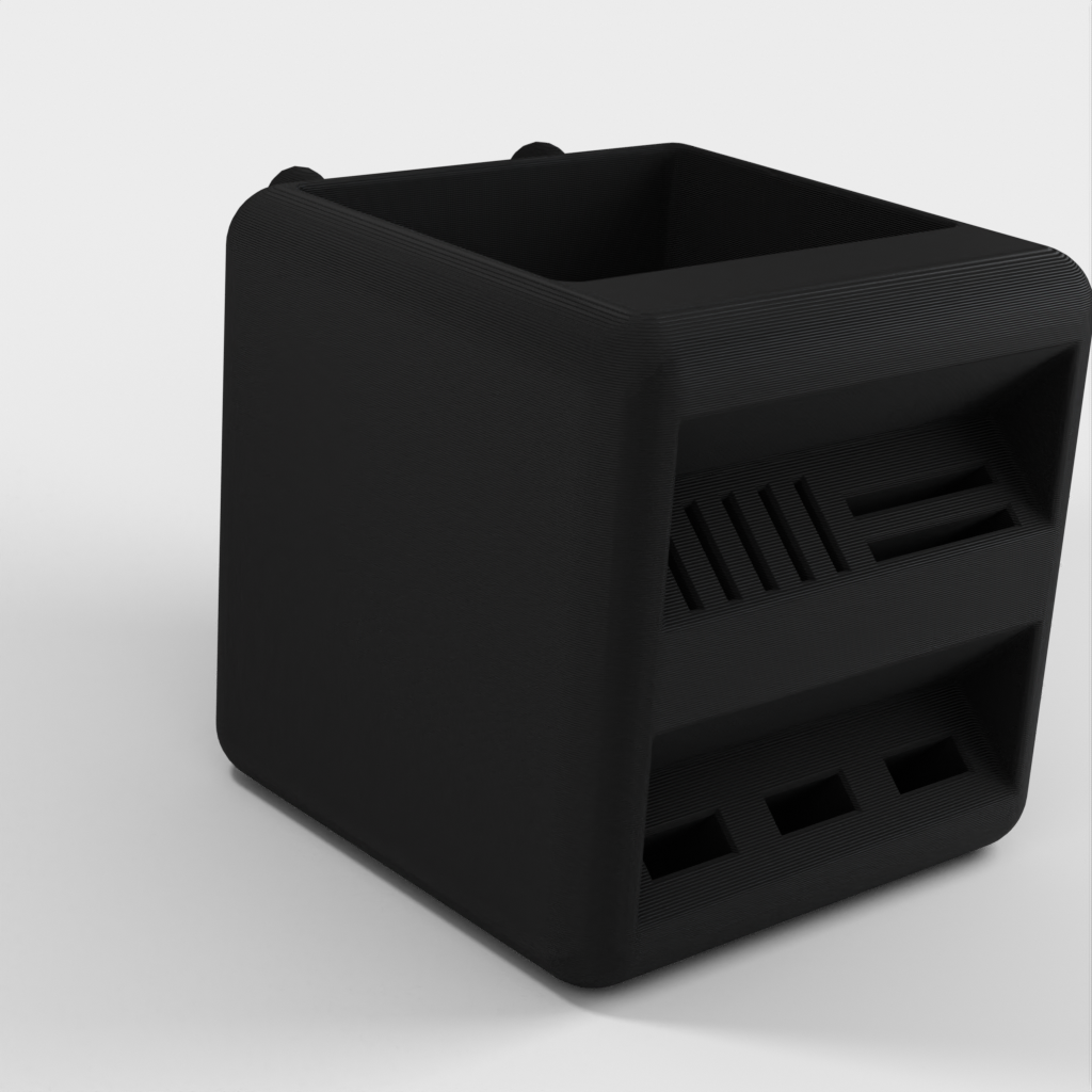 Portabolígrafos diseñado para encajar en los tableros Skadis de Ikea. Este soporte ofrece una solución práctica y espaciosa para organizar tus bolígrafos y tarjetas SD. Al proporcionar una solución de almacenamiento ordenada y organizada, este soporte ayuda a mantener tu escritorio ordenado.