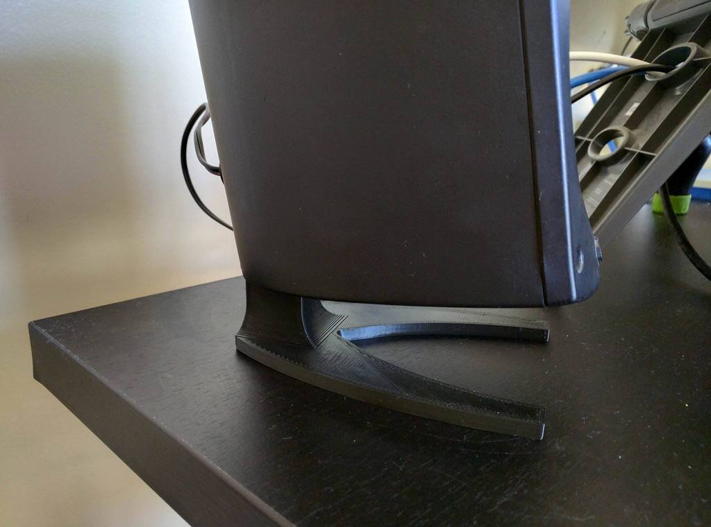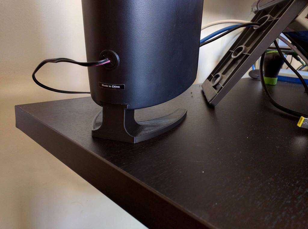 Estos son soportes para altavoces Klipsch Promedia 2.1, que son más cortos y no sobresalen tanto por detrás como las versiones originales de acero. Se sienten muy sólidos.