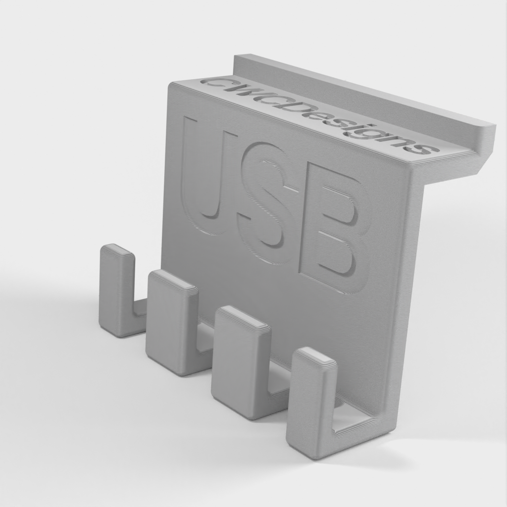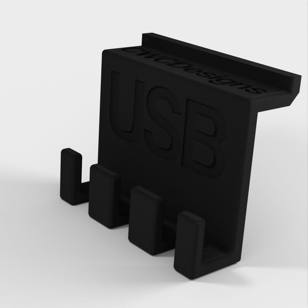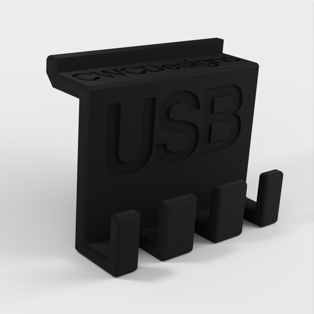 Este es un soporte USB para limpiar y organizar los cables sueltos en su lugar de trabajo. Está diseñado para encajar perfectamente debajo de una mesa Lack de Ikea, con un espacio de 3,5 mm entre el plexiglás de Lack y la mesa. Esta solución compacta crea un espacio de trabajo más ordenado y organizado.