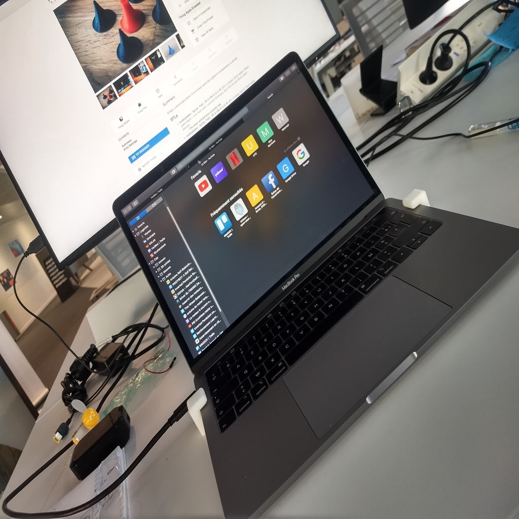Este pie de apoyo de dos piezas está especialmente diseñado para el Apple MacBook Pro 13 (modelo 2019) y está creado para mejorar su uso diario. Su diseño compacto y ligero lo hace ideal para llevarlo consigo. Cuando se utiliza, eleva tu MacBook Pro a un ángulo más ergonómico, lo que puede contribuir a una postura de trabajo más cómoda y, al mismo tiempo, ayuda a mejorar la circulación del aire debajo del dispositivo para reducir el riesgo de sobrecalentamiento. El pie de apoyo está diseñado con una amplia superficie de contacto que garantiza una buena estabilidad en cualquier superficie. Este práctico accesorio también garantiza que todos tus puertos USB-C permanezcan totalmente accesibles, lo cual es esencial si utilizas una base para MacBook Pro u otros dispositivos externos.