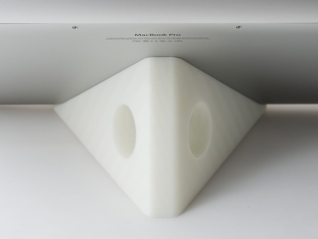 Soporte para MacBook Pro Retina de 13" de 2013. Eleva la pantalla y la mantiene vertical, ideal para usar con un teclado/ratón externo. Perfecto para optimizar su estación de trabajo y garantizar una posición más cómoda cuando se trabaja durante períodos más largos.