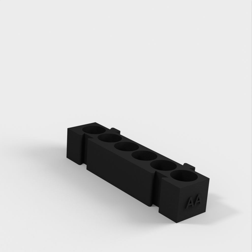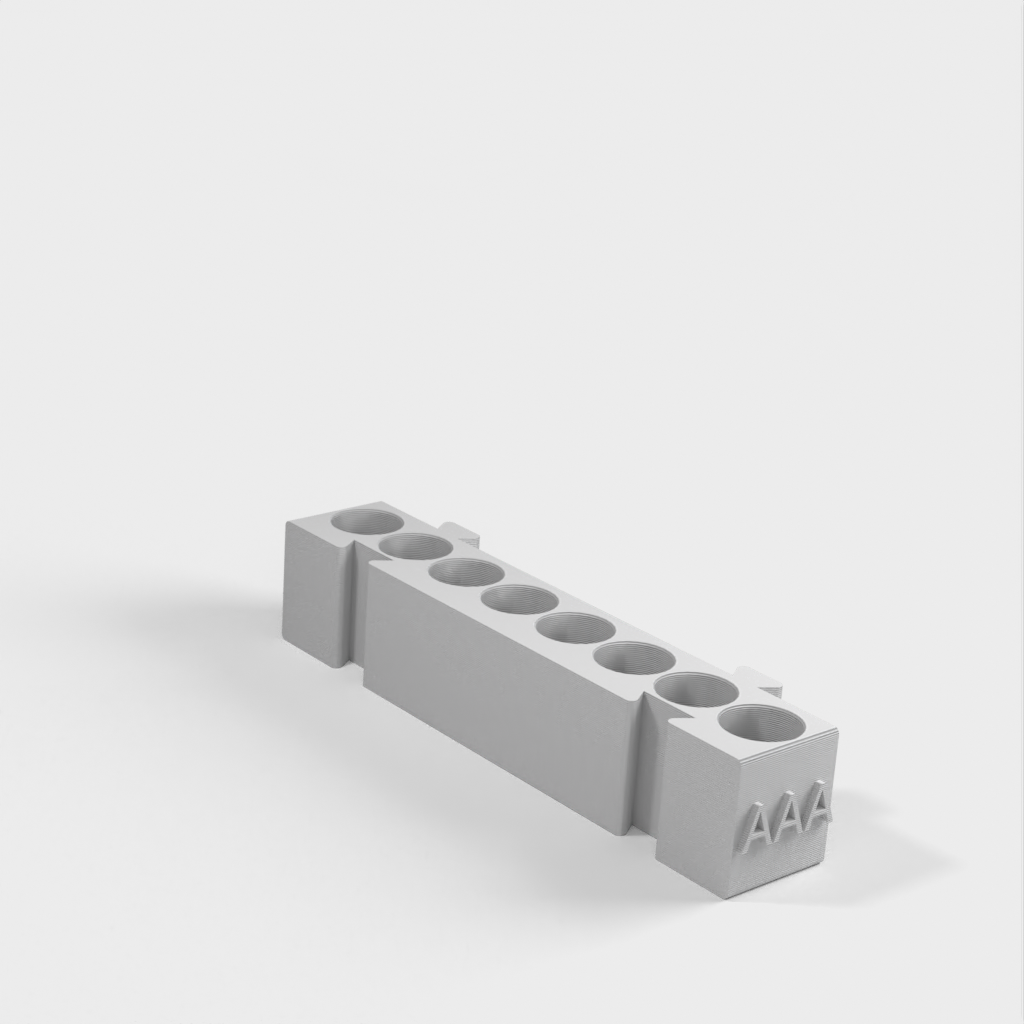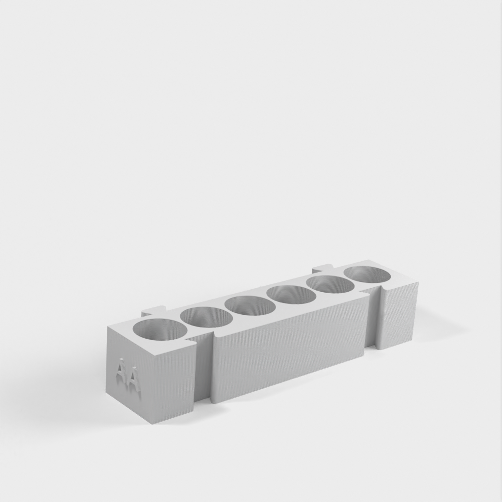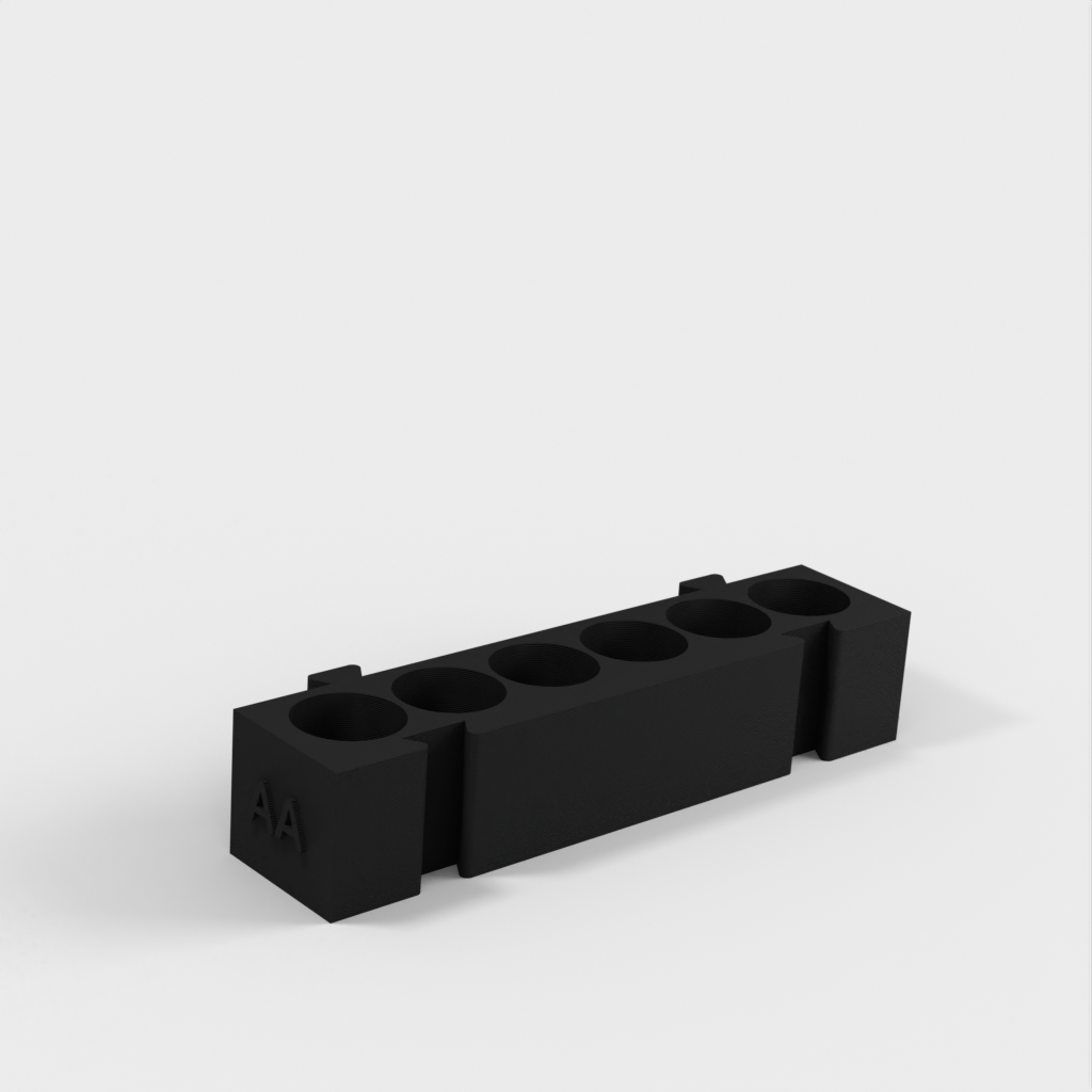 Este es un portapilas modular que ofrece diferentes soportes para cada tipo de pila. Todos los soportes tienen la misma longitud y pueden engancharse entre sí en cualquier combinación que desee. Es una solución ideal para organizar su escritorio y tener las pilas siempre a mano. Si añade a la colección un portapilas AA y un monedero, aumentará aún más su funcionalidad.