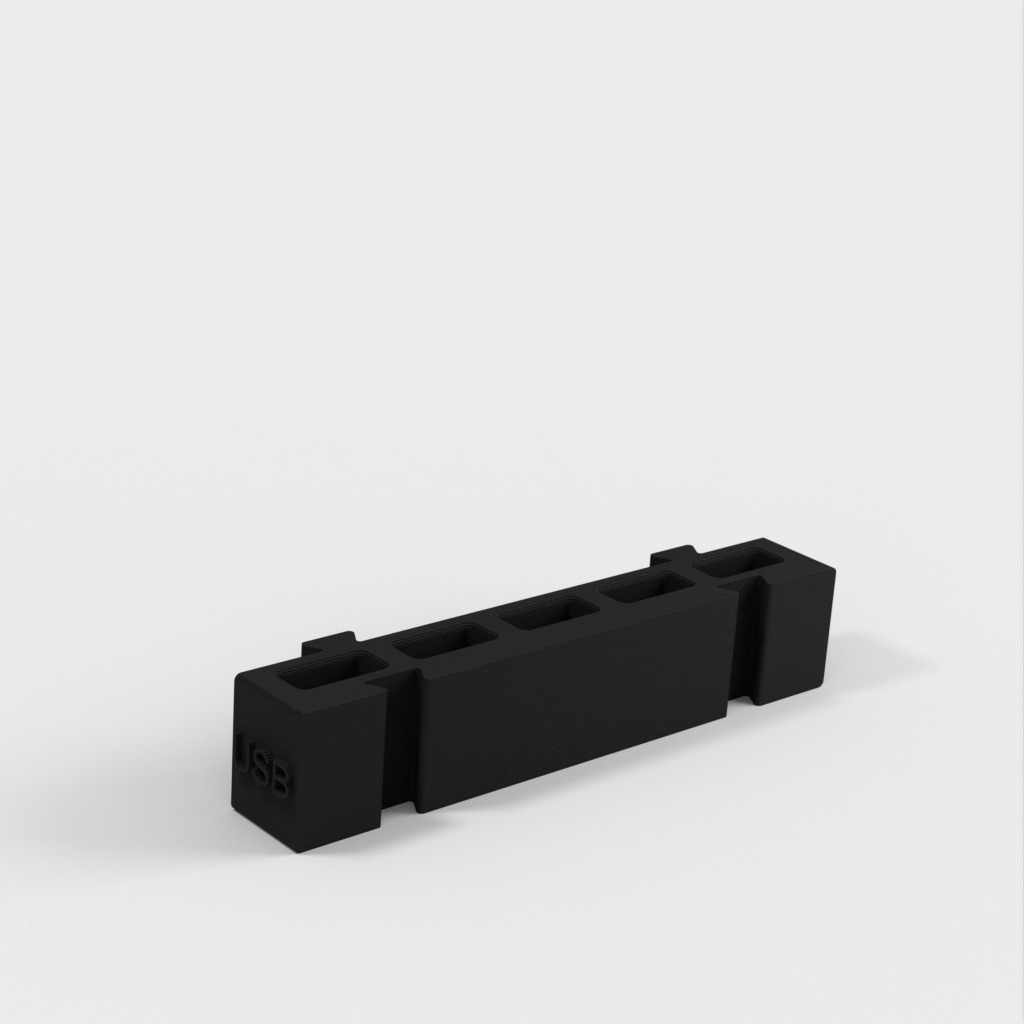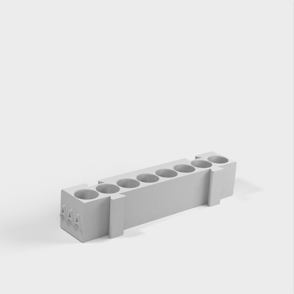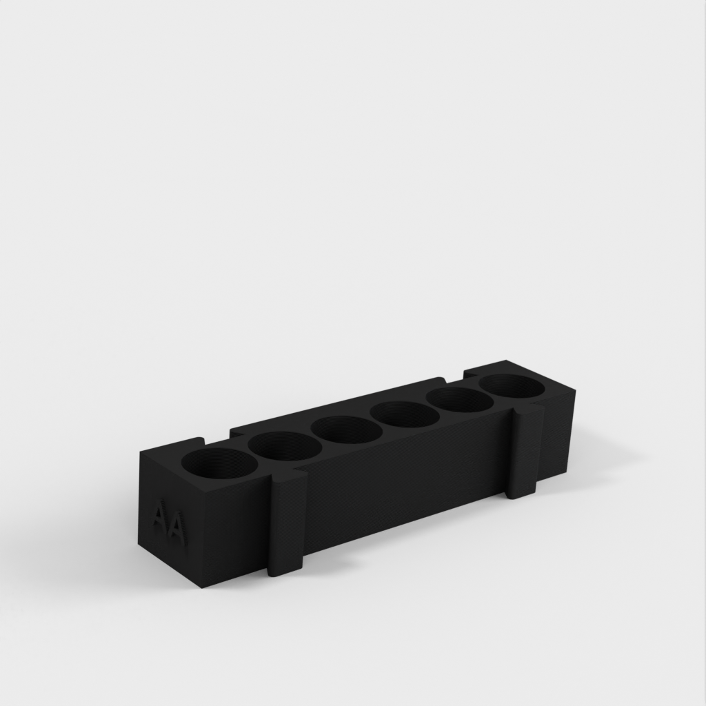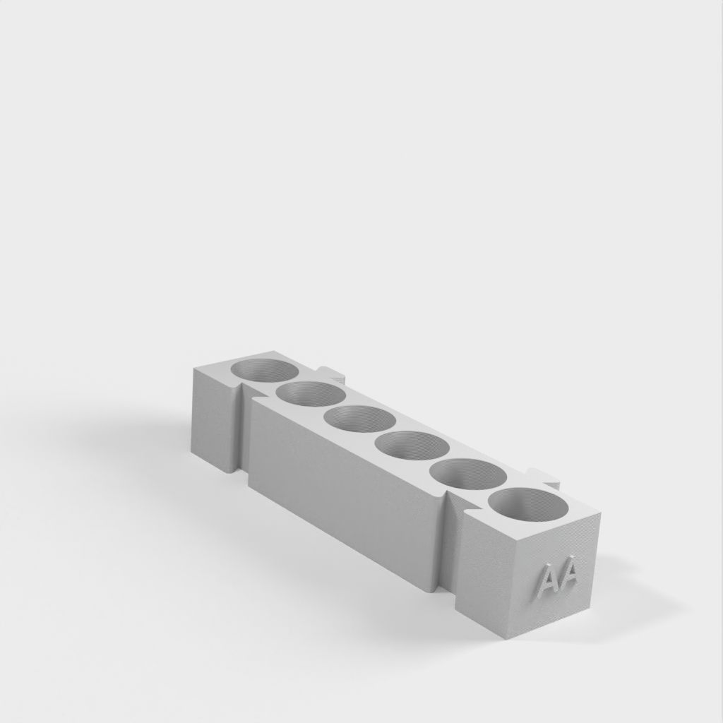 Este es un portapilas modular que ofrece diferentes soportes para cada tipo de pila. Todos los soportes tienen la misma longitud y pueden engancharse entre sí en cualquier combinación que desee. Es una solución ideal para organizar su escritorio y tener las pilas siempre a mano. Si añade a la colección un portapilas AA y un monedero, aumentará aún más su funcionalidad.