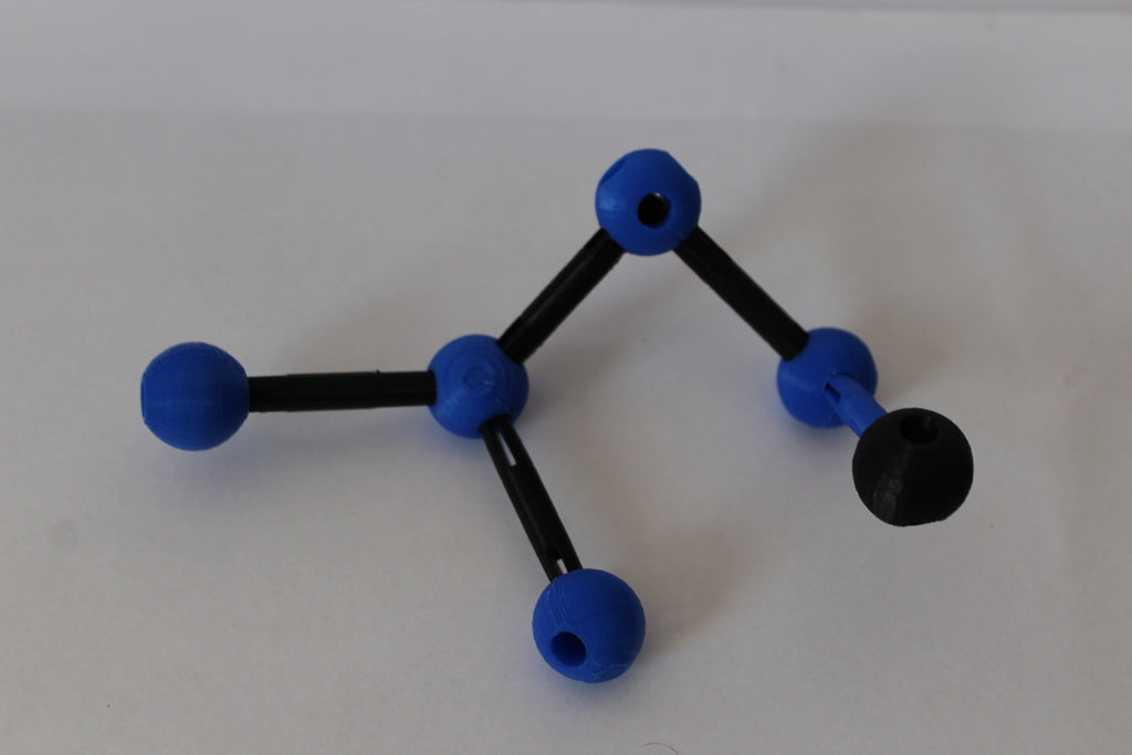 Con este kit molecular, tanto alumnos como profesores pueden ensamblar diferentes pares moleculares para facilitar el aprendizaje en el aula. Además, también es posible explicar la geometría molecular, ya que el conjunto muestra los ángulos entre los enlaces.