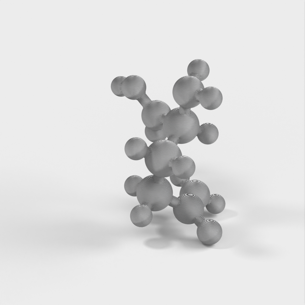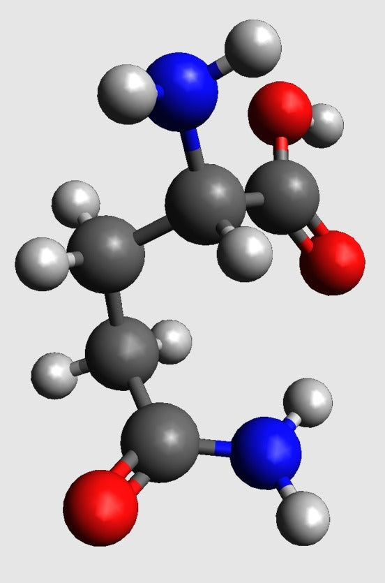 Un modelo molecular de Glutamina a escala atómica. El modelo es STL impermeable, múltiple y apto para 3D. La glutamina forma parte de muchas proteínas y puede compararse con la glucosa y los carbohidratos para ilustrar por qué se necesitan diferentes tipos de alimentos para obtener todos los elementos que el cuerpo necesita. Este modelo es especialmente útil para enseñar química.
