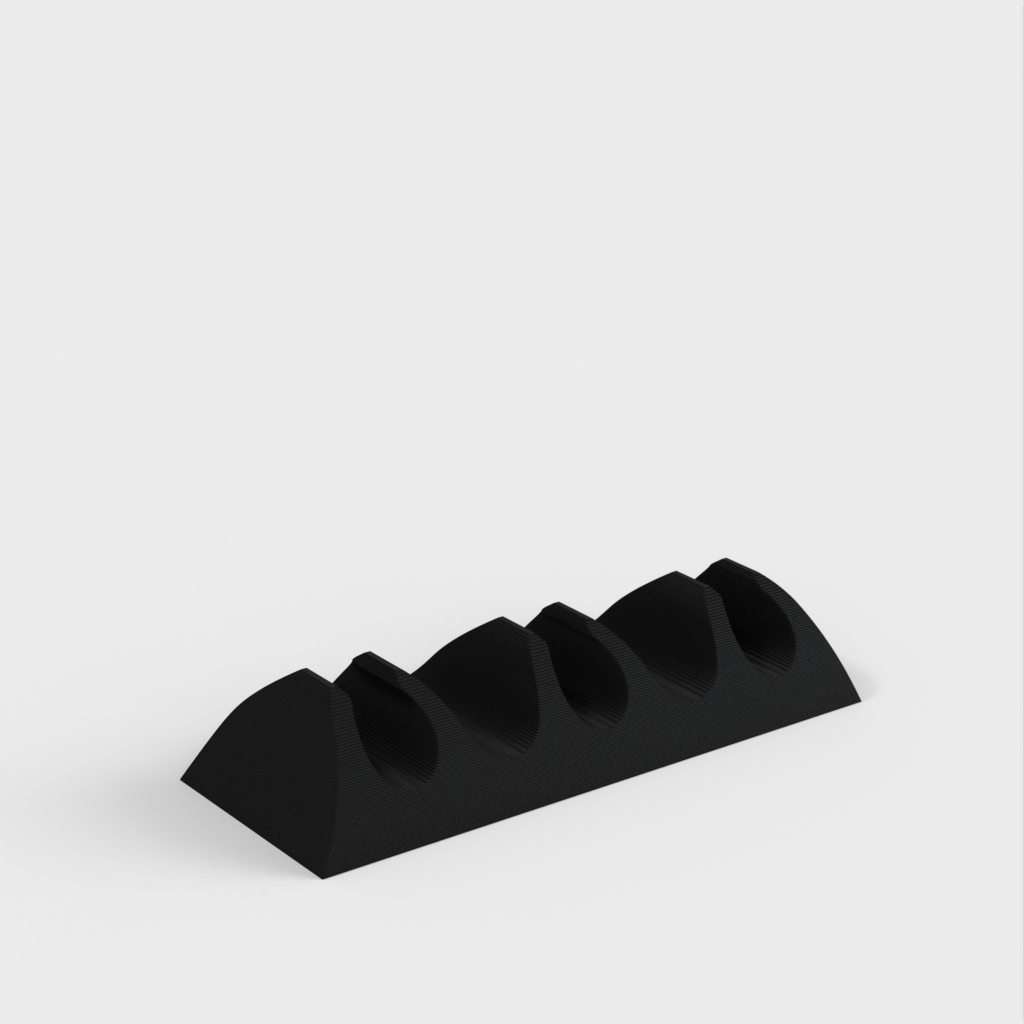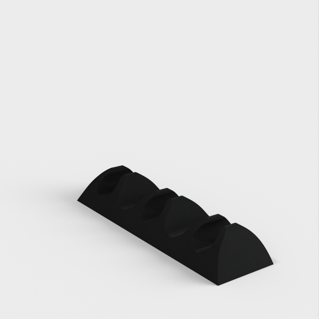Este organizador de cables está diseñado específicamente para los cables USB estándar que vienen con la mayoría de los teléfonos (0,37 mm de ancho); por ejemplo, el cable USB-C del iPhone. Se puede fijar a cualquier superficie con una pequeña tira de comandos para facilitar su extracción. Vea las imágenes como referencia.