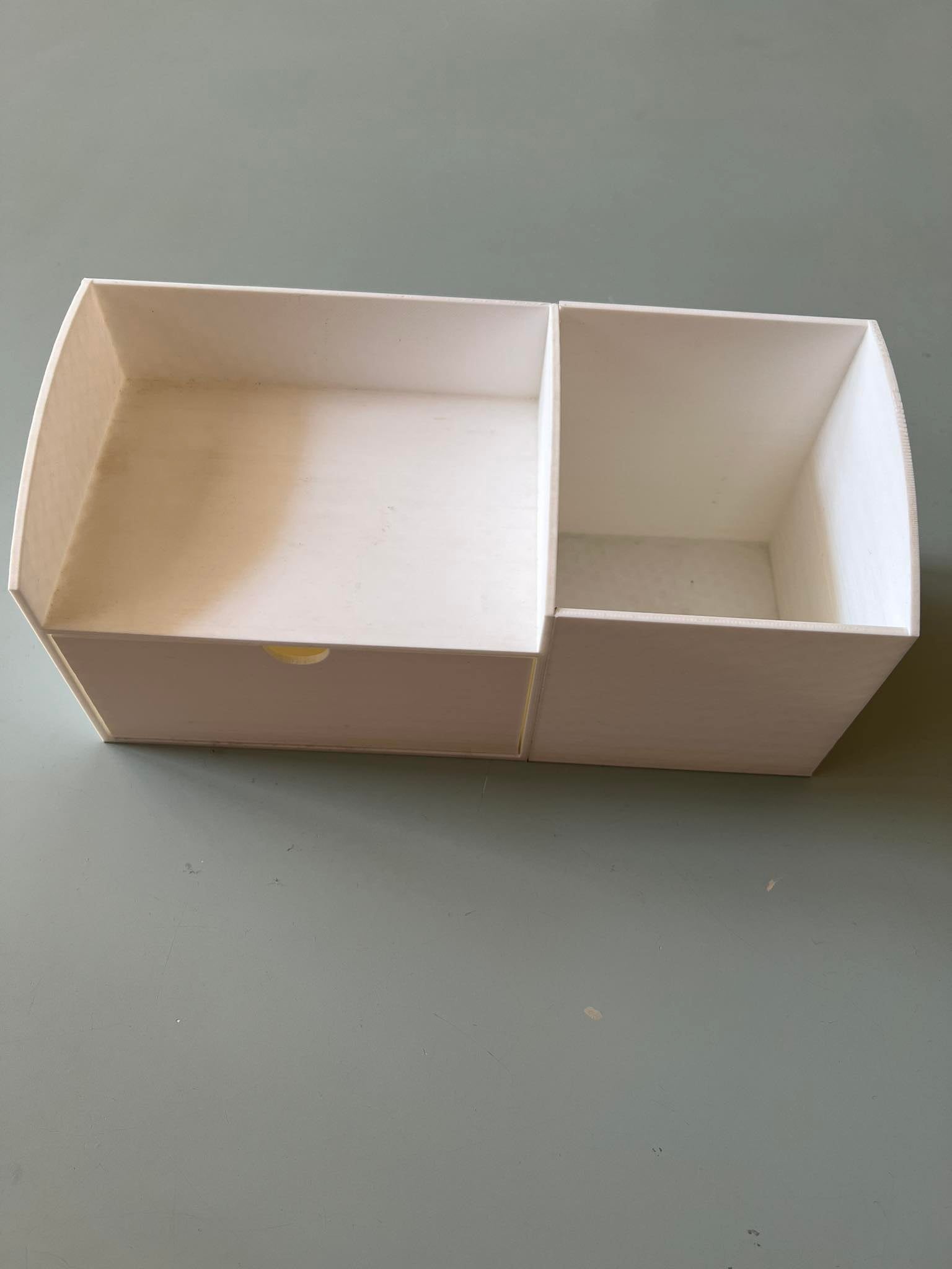 Este es un organizador de baño que se imprime con PLA. Impreso con 0,2 mm de altura de capa, boquilla de 0,4 mm, 20% de relleno y no se necesitan soportes. Cada parte se imprime por separado y luego se pegan. Impreso en Ender 3v2.
