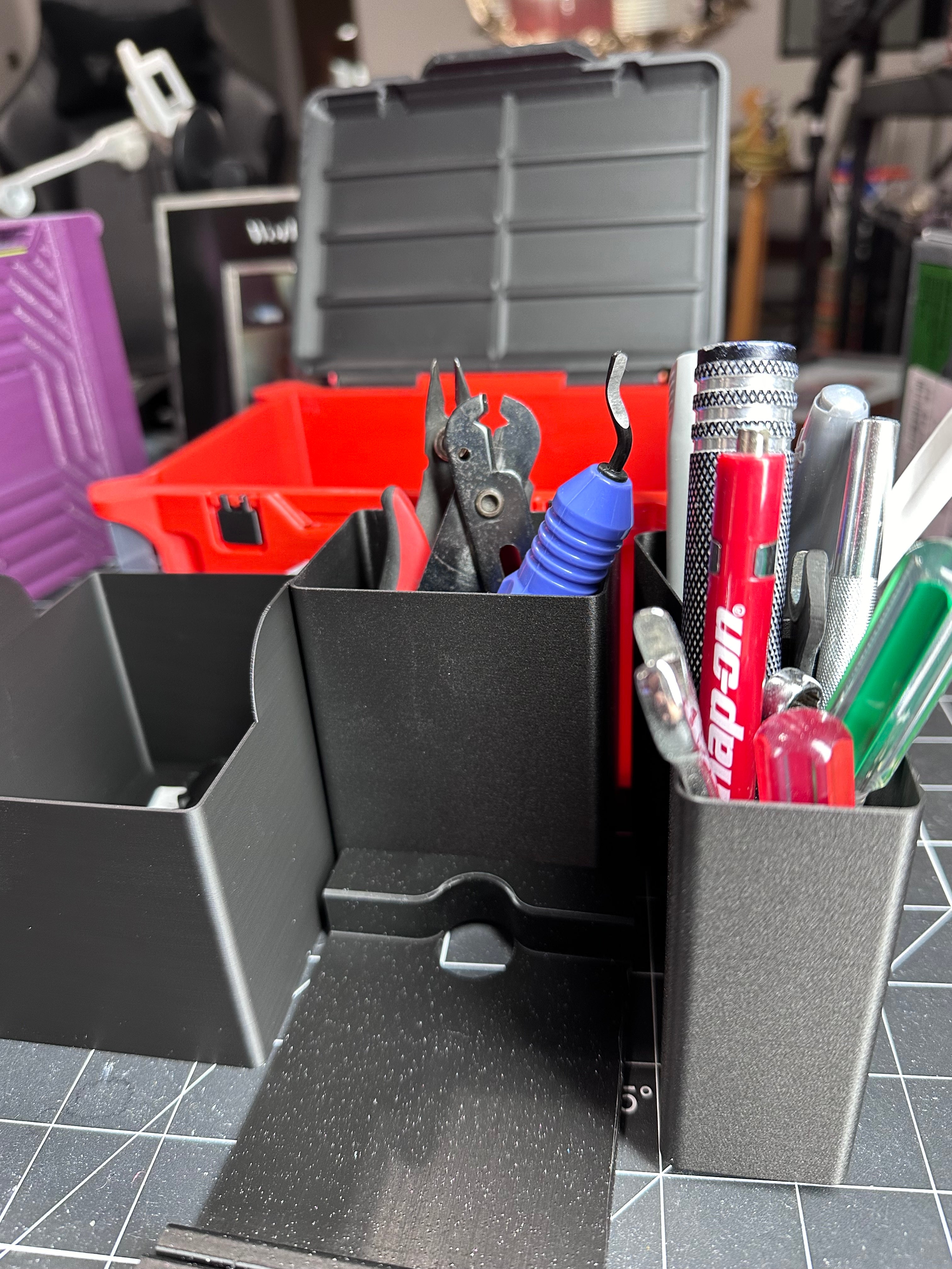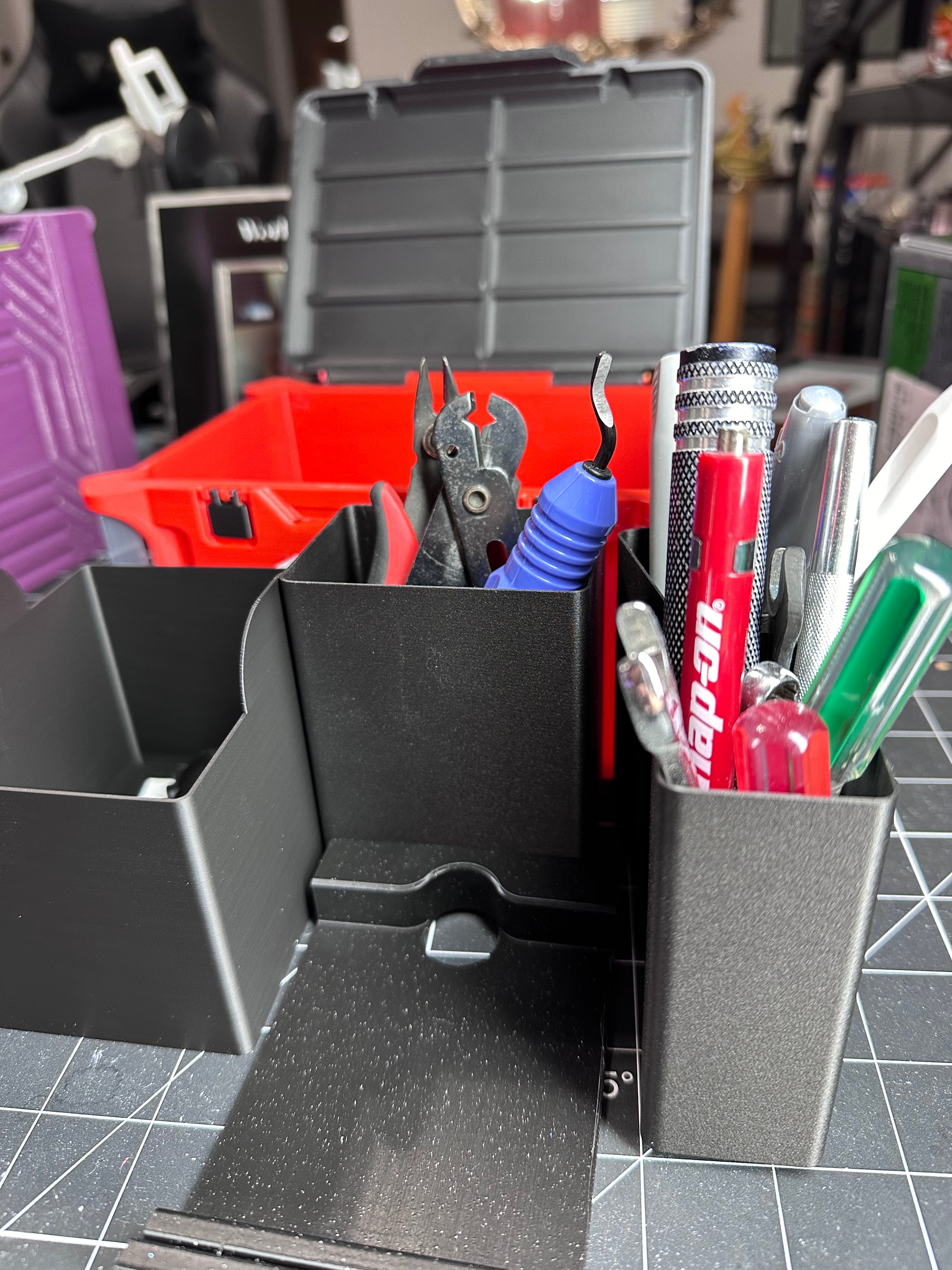Mantenga su espacio de trabajo ordenado y organizado con este elegante organizador de escritorio inspirado en Milwaukee Packout. Este organizador funcional está diseñado para almacenar de manera eficiente una variedad de artículos de oficina y herramientas más pequeñas, lo que lo convierte en una opción ideal tanto para la oficina como para la sala de pasatiempos. Con varias inserciones incluidas, puede clasificar fácilmente bolígrafos, clips, agujas y otros objetos pequeños. Una bandeja especial con resorte tiene el tamaño perfecto para un bloque Post-it estándar y, cuando se levanta, revela un área espaciosa debajo para artículos más grandes como llaves o incluso un destornillador eléctrico compacto. Esto lo convierte en una alternativa sólida para aquellos que buscan una solución de organización robusta y versátil. Elija entre un solo color o personalícelo con varios colores para que coincida con su estilo. Este organizador de escritorio es una adición práctica que ayuda a maximizar el espacio y realizar un seguimiento de sus elementos esenciales.