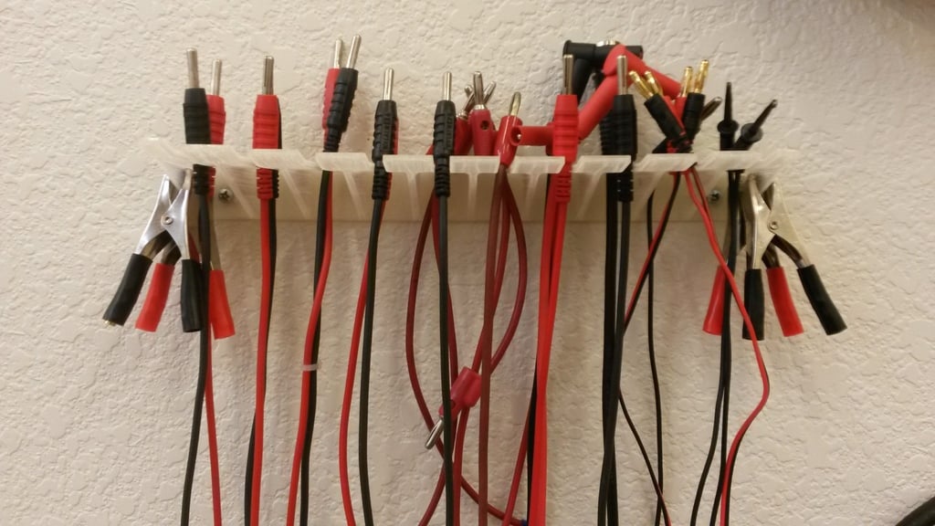 Un soporte para cables con conector banana que se puede imprimir y montar en la pared. Nunca más tendrás que buscar tus cables.