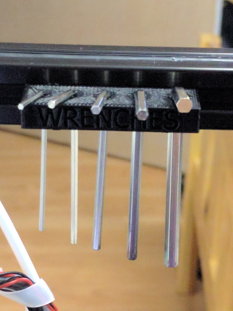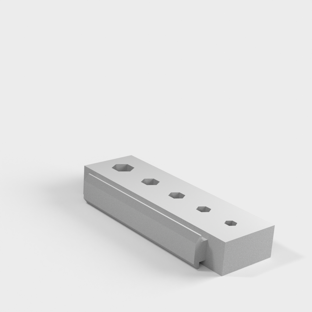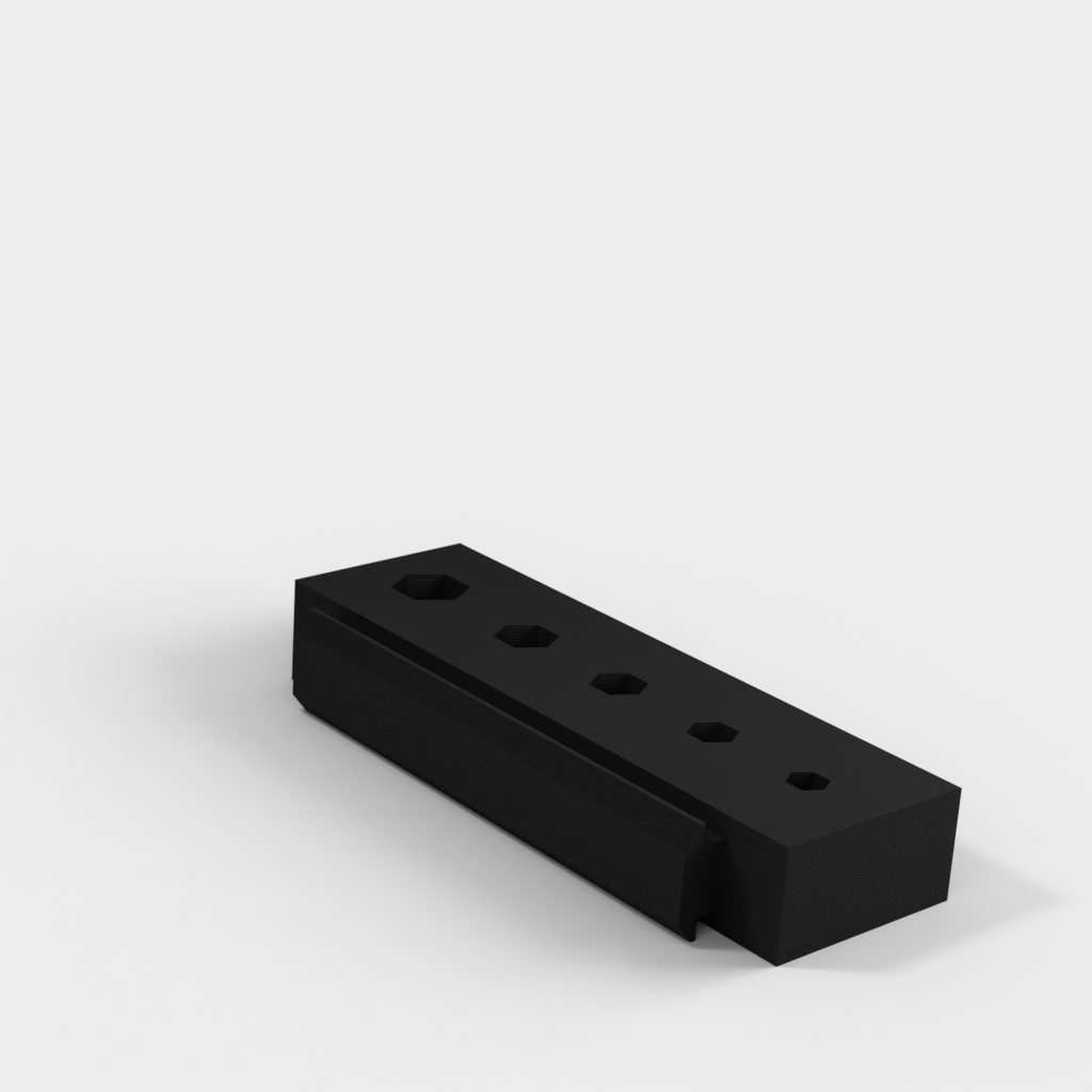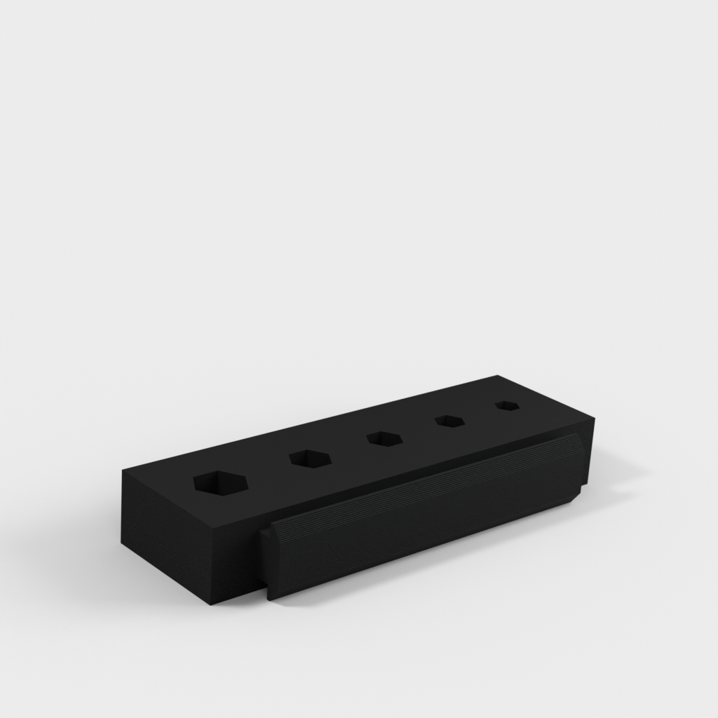 El soporte para llave hexagonal está diseñado para contener un juego de 5 llaves Allen estándar o llaves hexagonales que suelen venir con la mayoría de las impresoras 3D. Esta herramienta es una idea práctica, ya que se puede colgar directamente en la impresora 3D para facilitar el acceso.