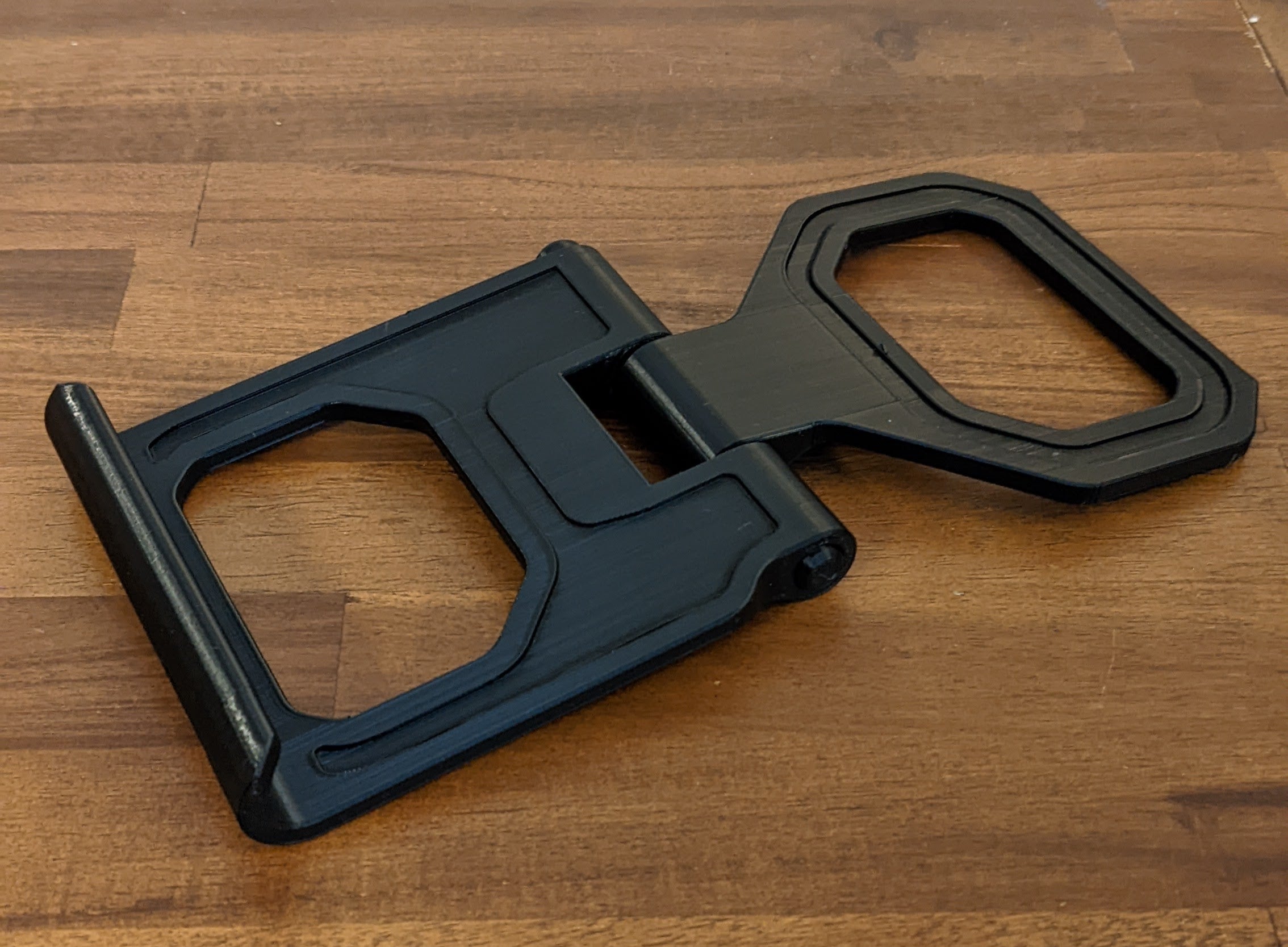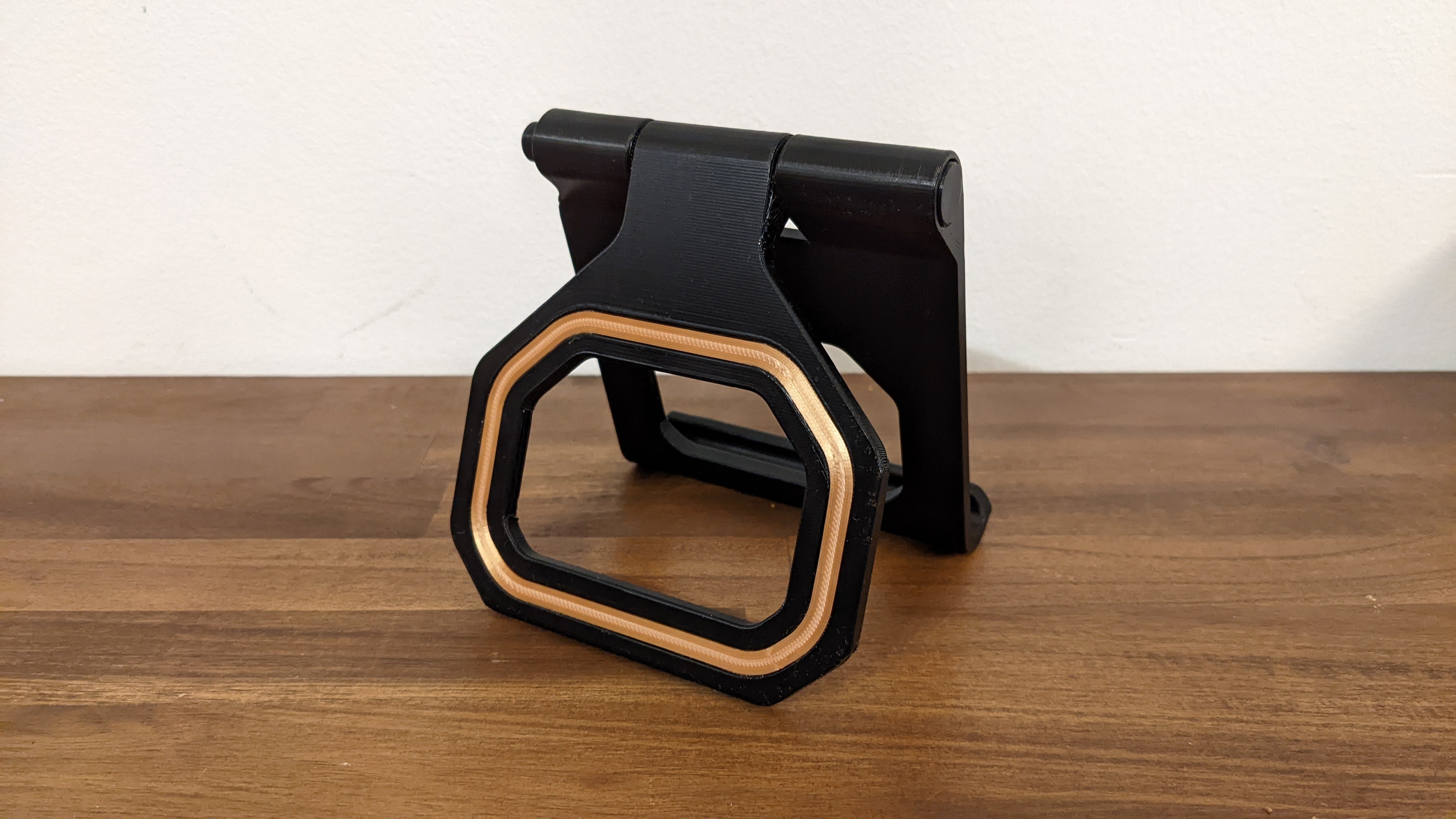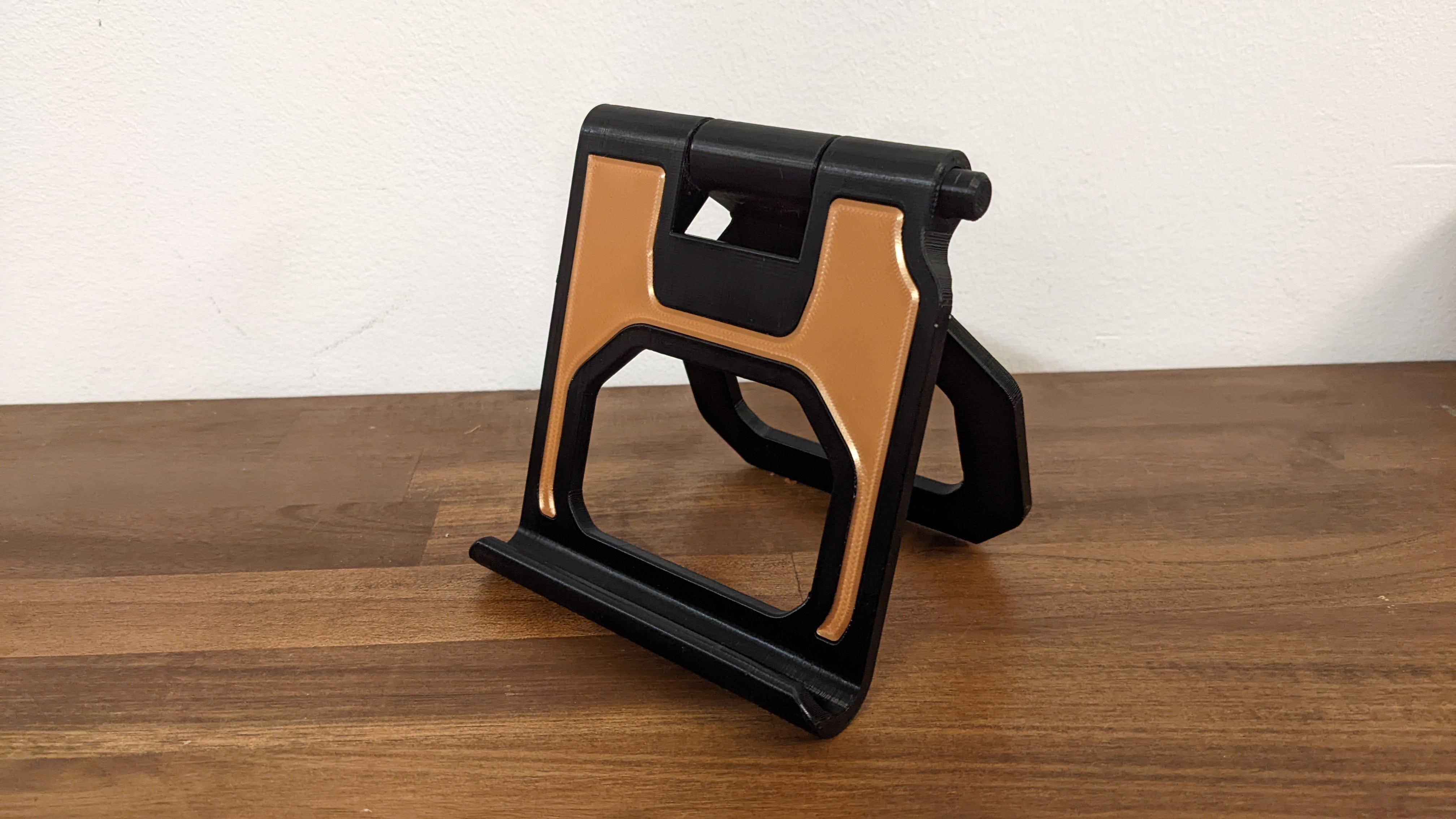 Soporte ajustable para tablet/teléfono con ajuste mediante pulsador. Este soporte imprimible es perfecto para sostener tu iPad, iPhone o cualquier otra tableta o teléfono móvil. El soporte incorpora una función de inclinación con botón pulsador que facilita el ajuste del ángulo de su dispositivo, creando una cómoda experiencia visual. Tanto si está viendo vídeos, leyendo o navegando con su dispositivo, este producto se lo pone fácil y cómodo.