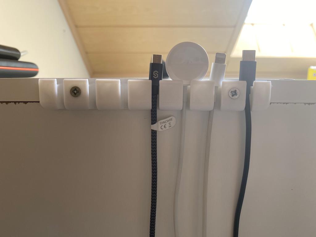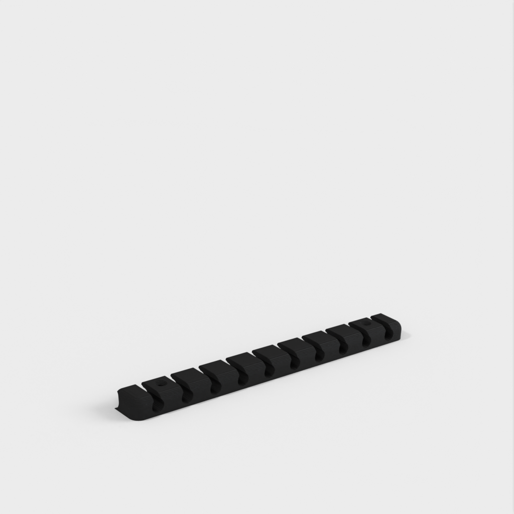 Nuestro soporte para cables está diseñado para organizar y mantener los cables USB en su sitio. Este soporte compacto y práctico te ayudará a mantenerte organizado y a eliminar el desorden de tu escritorio o espacio de trabajo. Es especialmente eficaz para cables USB y USB-C.