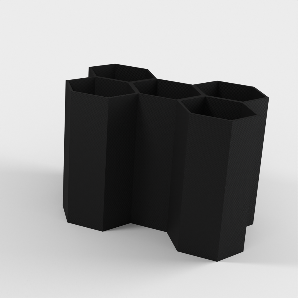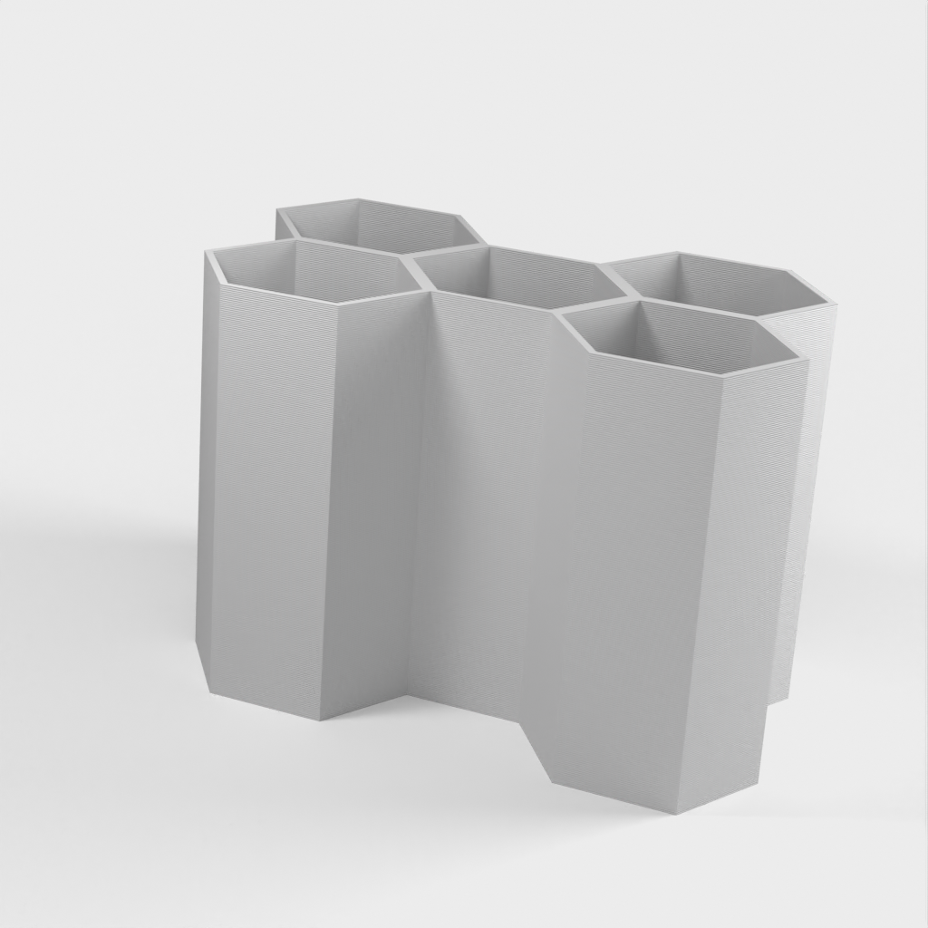 Portautensilios de 5 ranuras para guardar fácil y cómodamente los utensilios de cocina. Con este soporte podrá organizar eficazmente sus utensilios y dar un aspecto limpio y ordenado a su cocina. El portautensilios puede colocarse fácilmente sobre la mesa o montarse en la pared. Mantenga sus utensilios fáciles de encontrar y a mano con este soporte para utensilios de 5 ranuras.