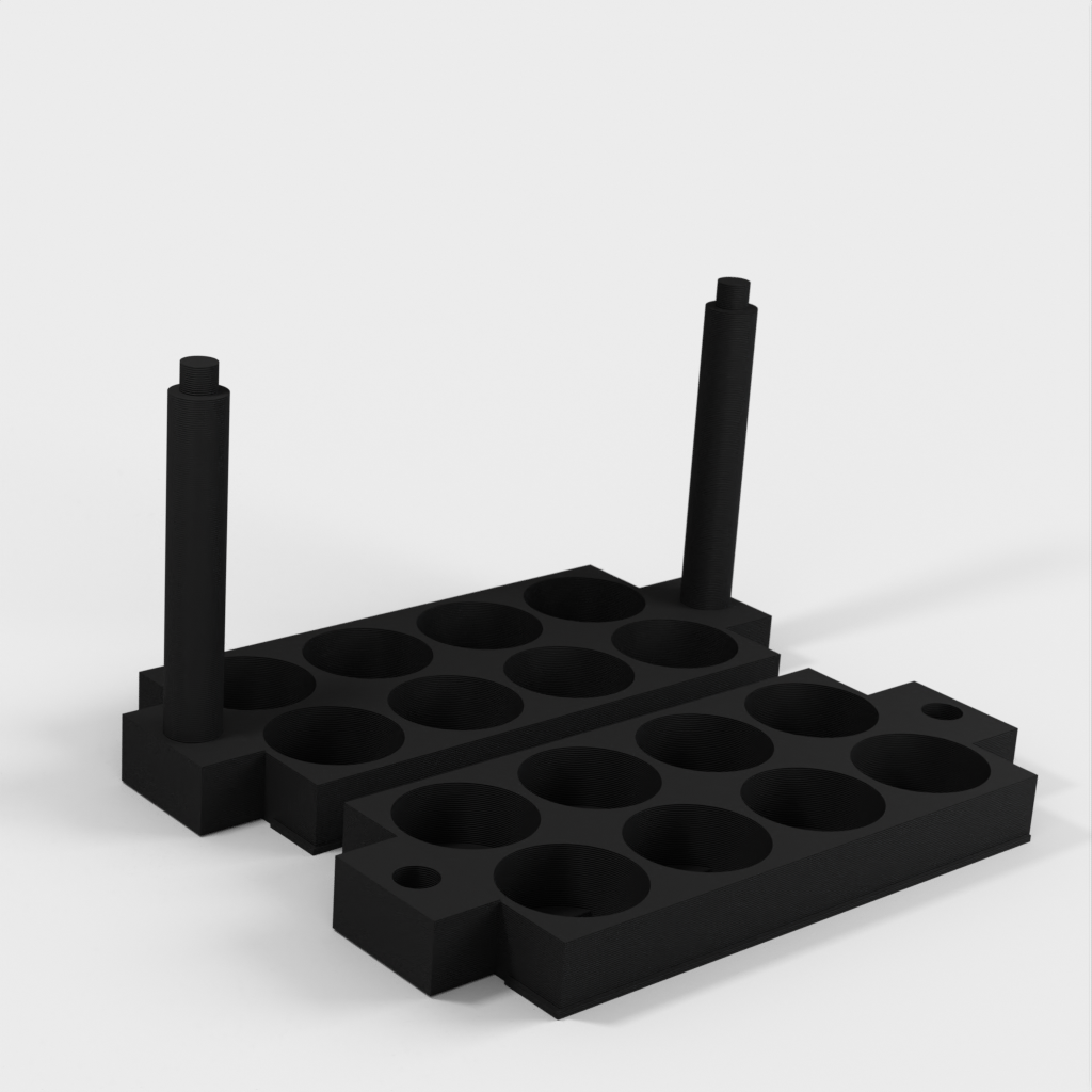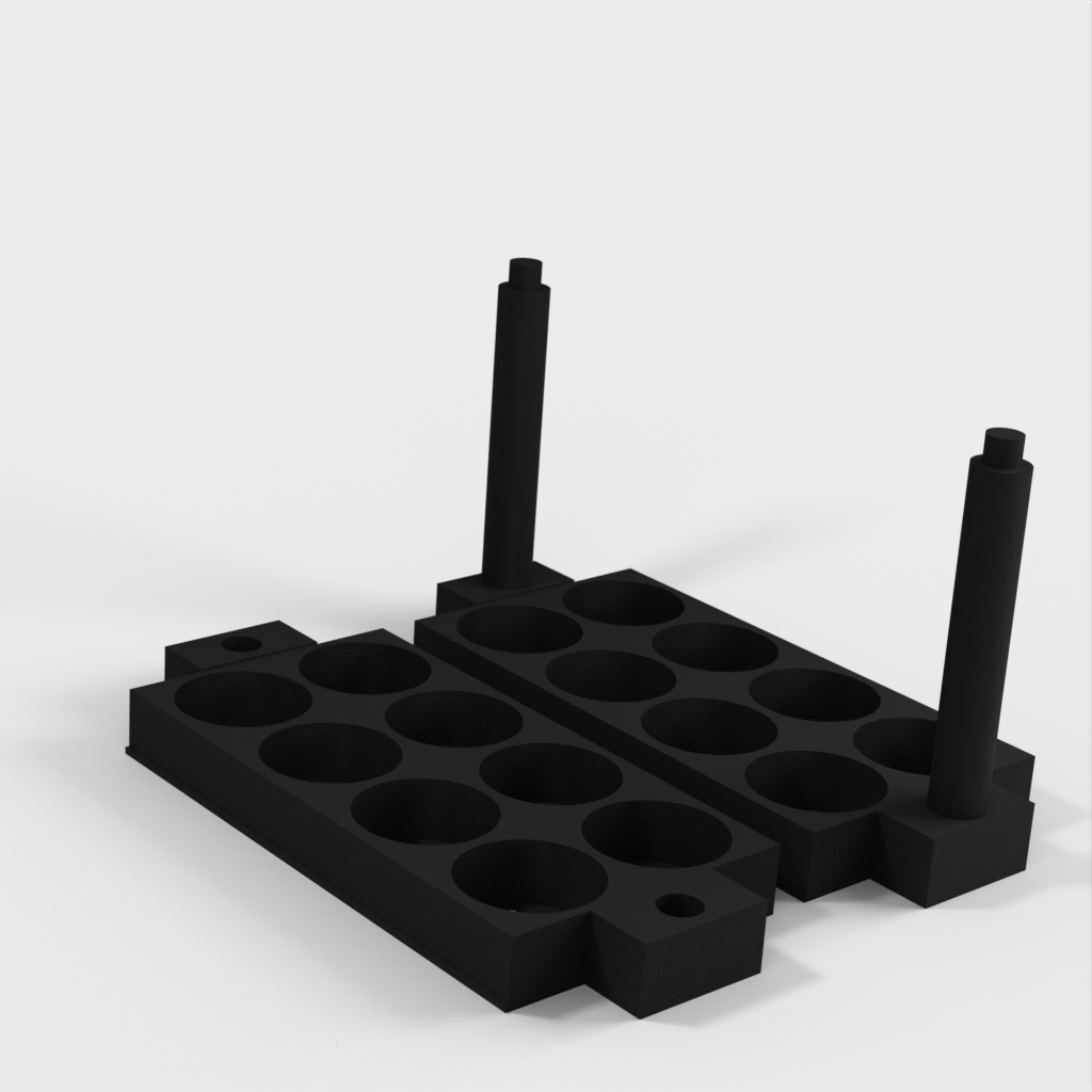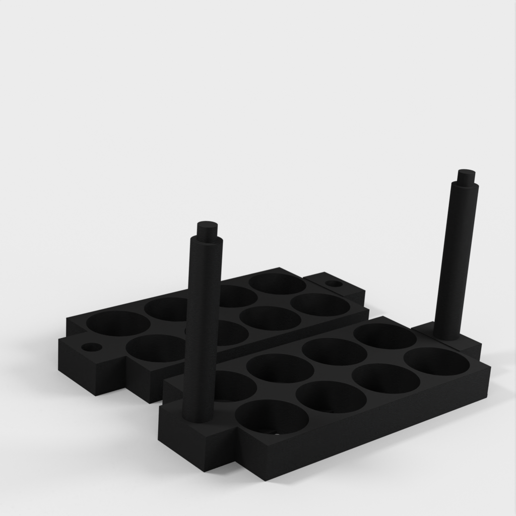 El soporte para baterías 18650 está diseñado para mantener sus baterías 18650 organizadas y fácilmente accesibles. Este soporte de batería ayuda a mantener su taller, cobertizo o vehículo de trabajo ordenado y organizado. El soporte se puede montar fácilmente en la pared con tornillos.