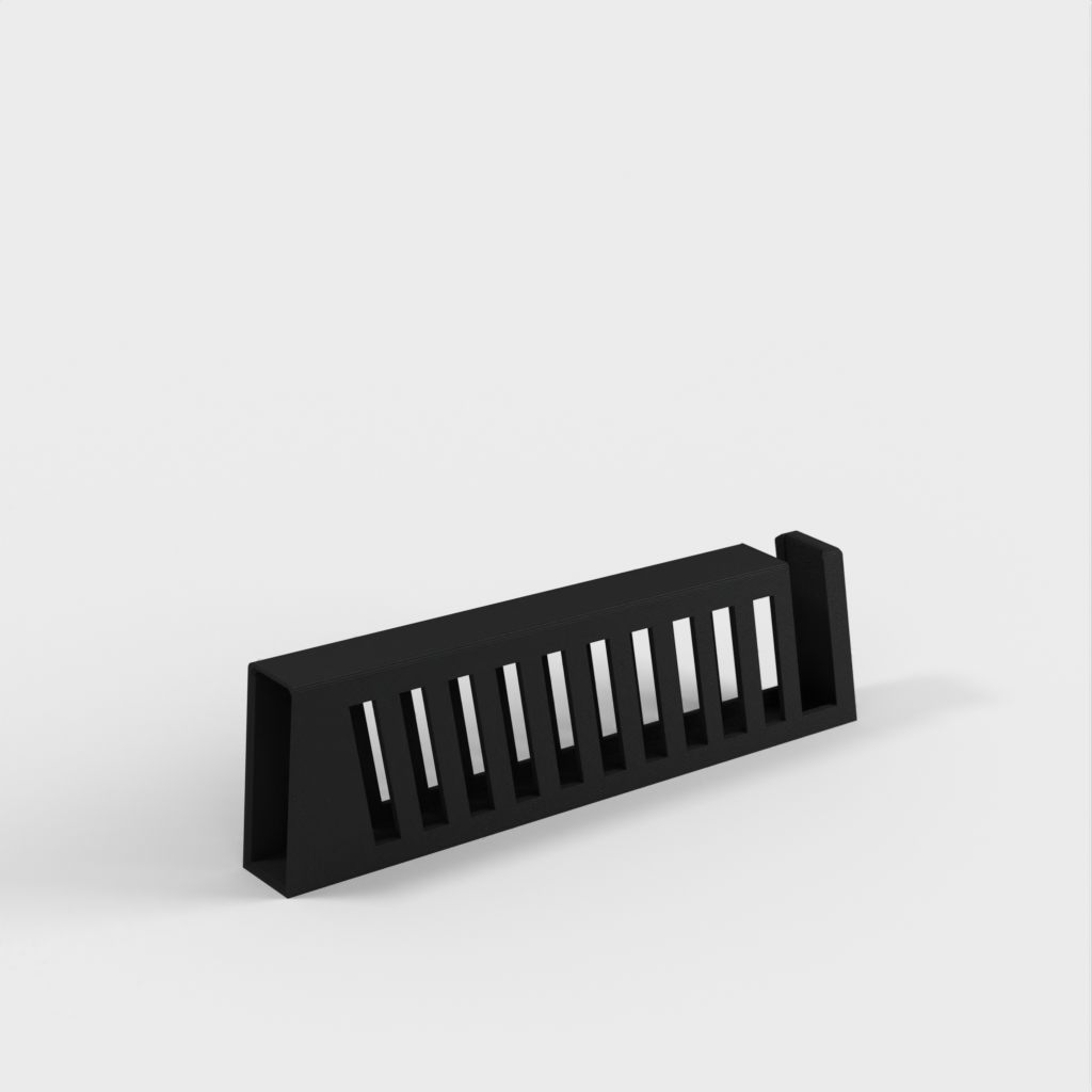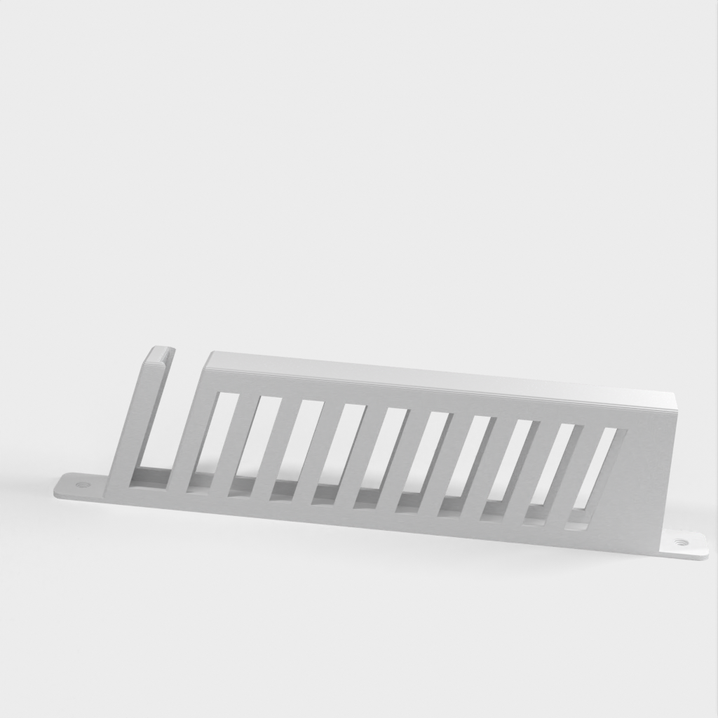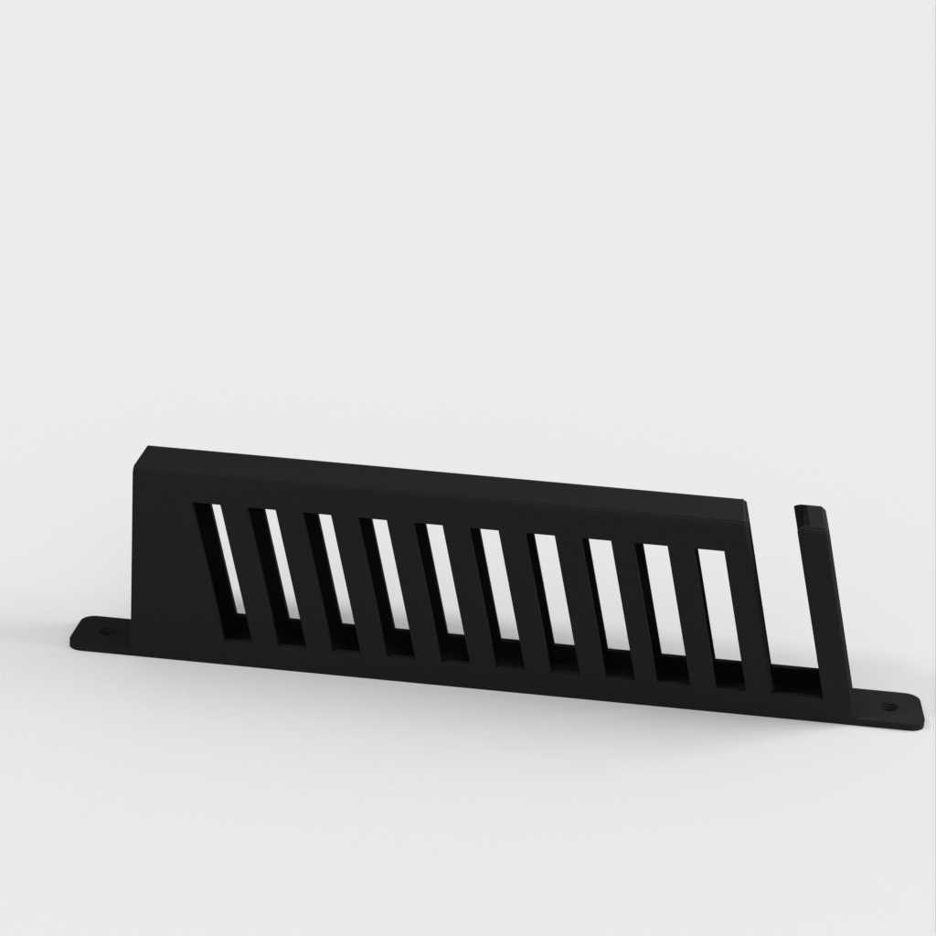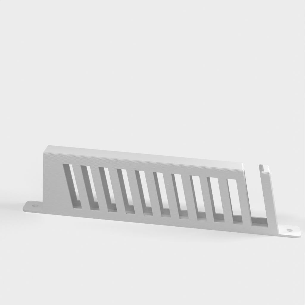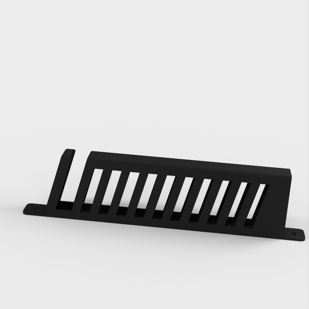El soporte para pilas AA está diseñado para asegurar tus pilas AA de forma organizada y segura. Este soporte se puede fijar a cualquier superficie con cinta adhesiva de doble cara para una fácil instalación, o también puede optar por fijarlo con tornillos para una mayor estabilidad. Este producto garantiza un fácil acceso a las pilas cuando se necesitan y las mantiene en un lugar seguro cuando no se utilizan.