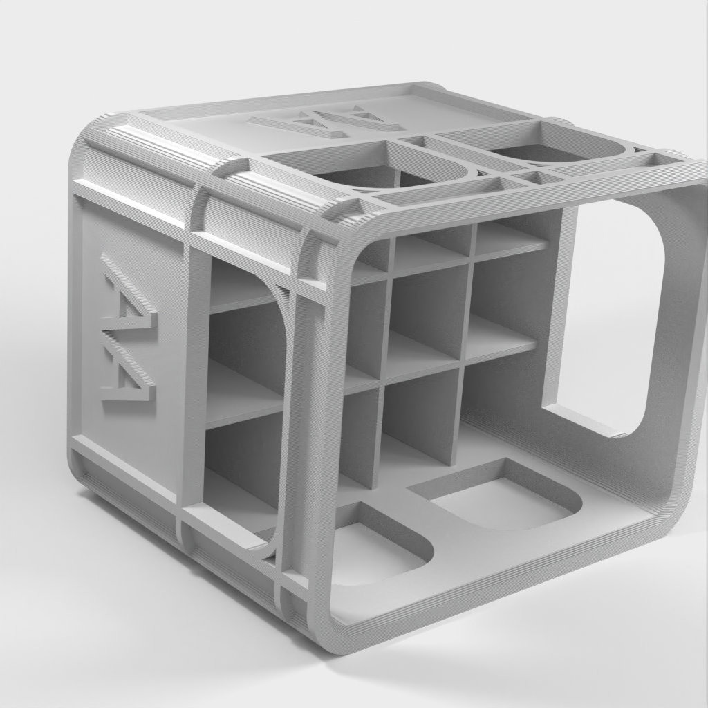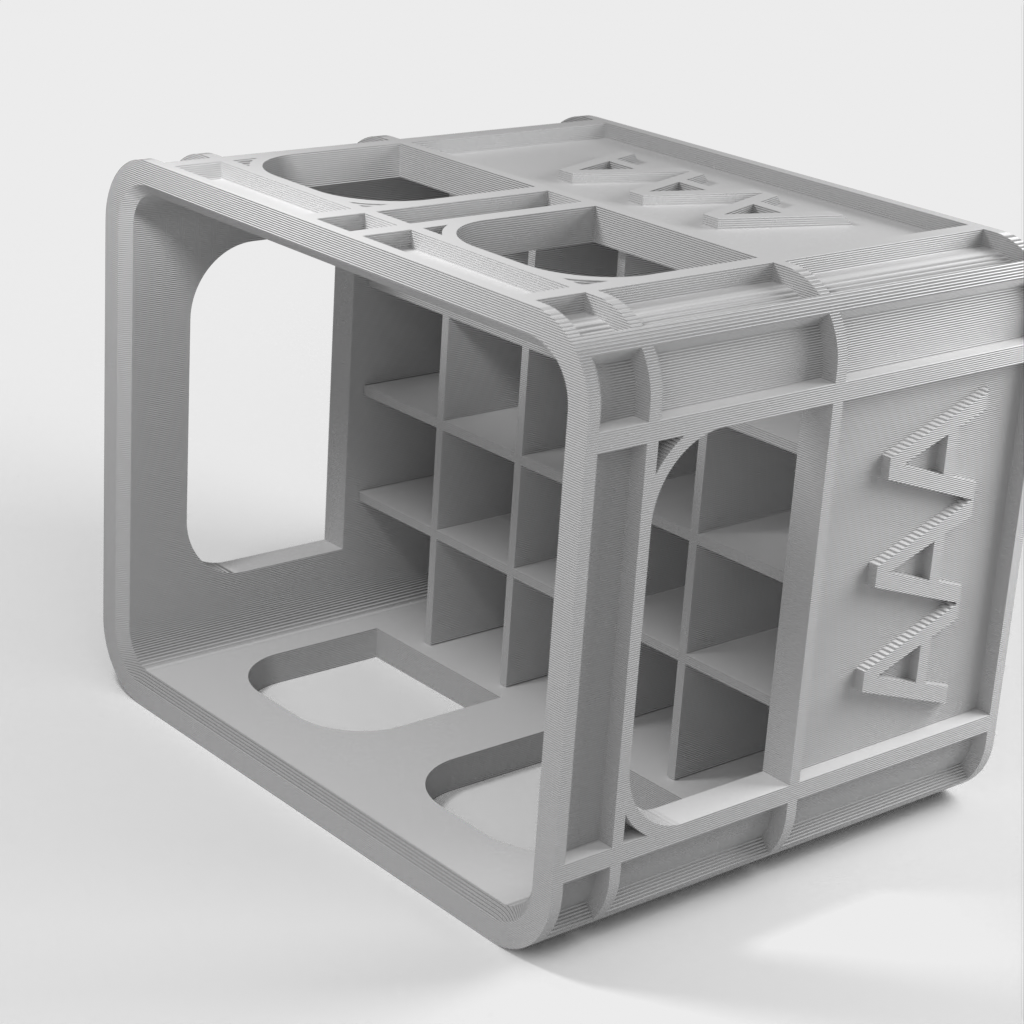 Esta es una caja para baterías apilable, diseñada específicamente para organizar sus baterías con mayor eficiencia. Su diseño único permite apilar estas cajas para baterías sin necesidad de ninguna placa base adicional. Este modelo es fácil de usar y sujeta las pilas de forma recíproca y eficaz. Cada caja para pilas está fabricada con material PLA, que es lo suficientemente resistente como para mantener sus pilas a salvo.