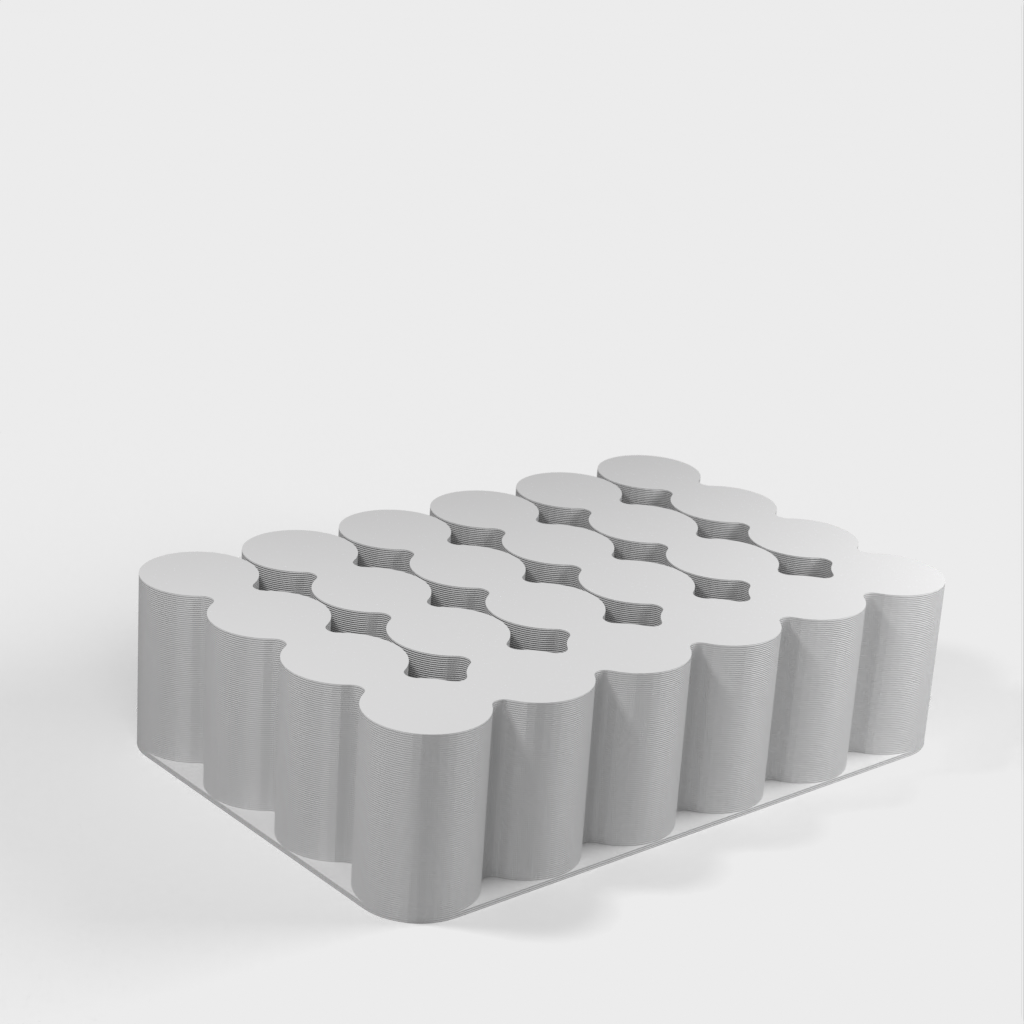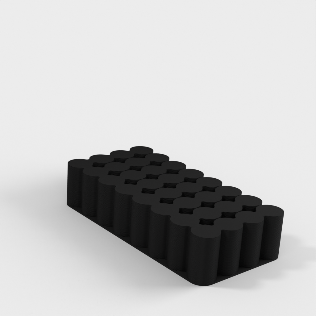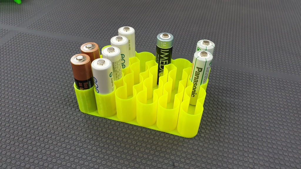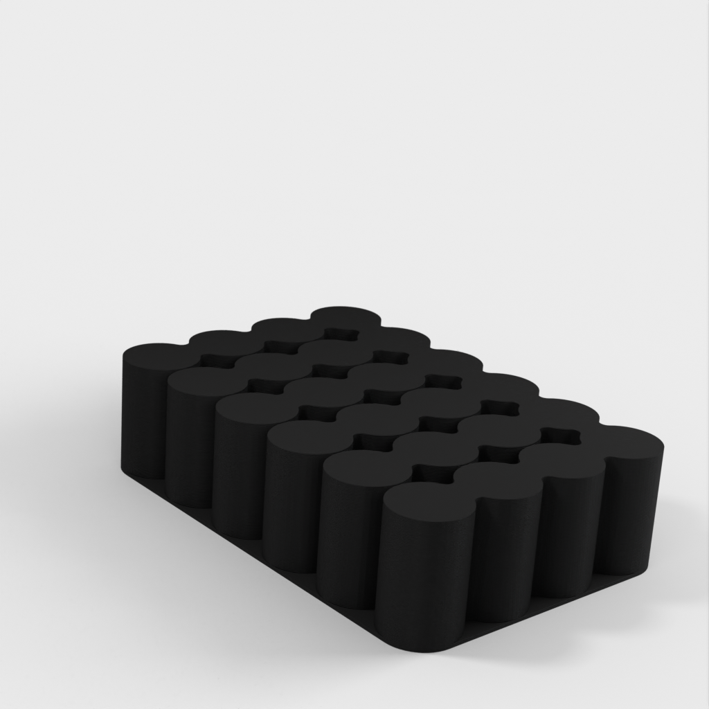 Mantén un registro de tus pilas con este portapilas para pilas AA, AAA, 18650 y 9V. En el contenedor AA caben 24 pilas, en el AAA 32, en el 18650 24 y en el 9V 10. Puedes imprimirlos en cualquier material, pero en este caso están impresos en PLA. En caso de necesitar un soporte para pilas de diferente tamaño o con múltiples ranuras, deja un comentario y se subirá una nueva versión.
